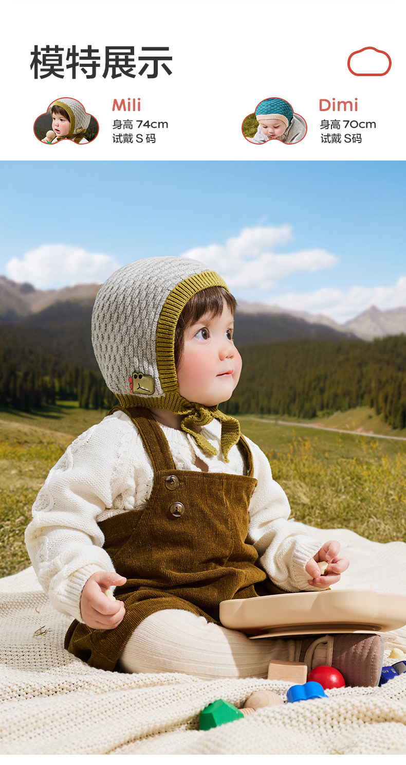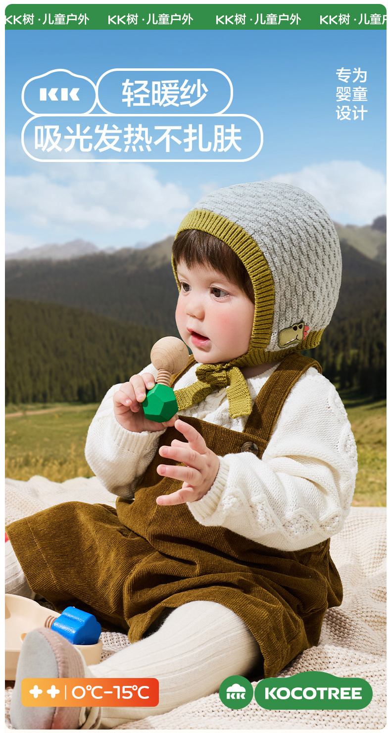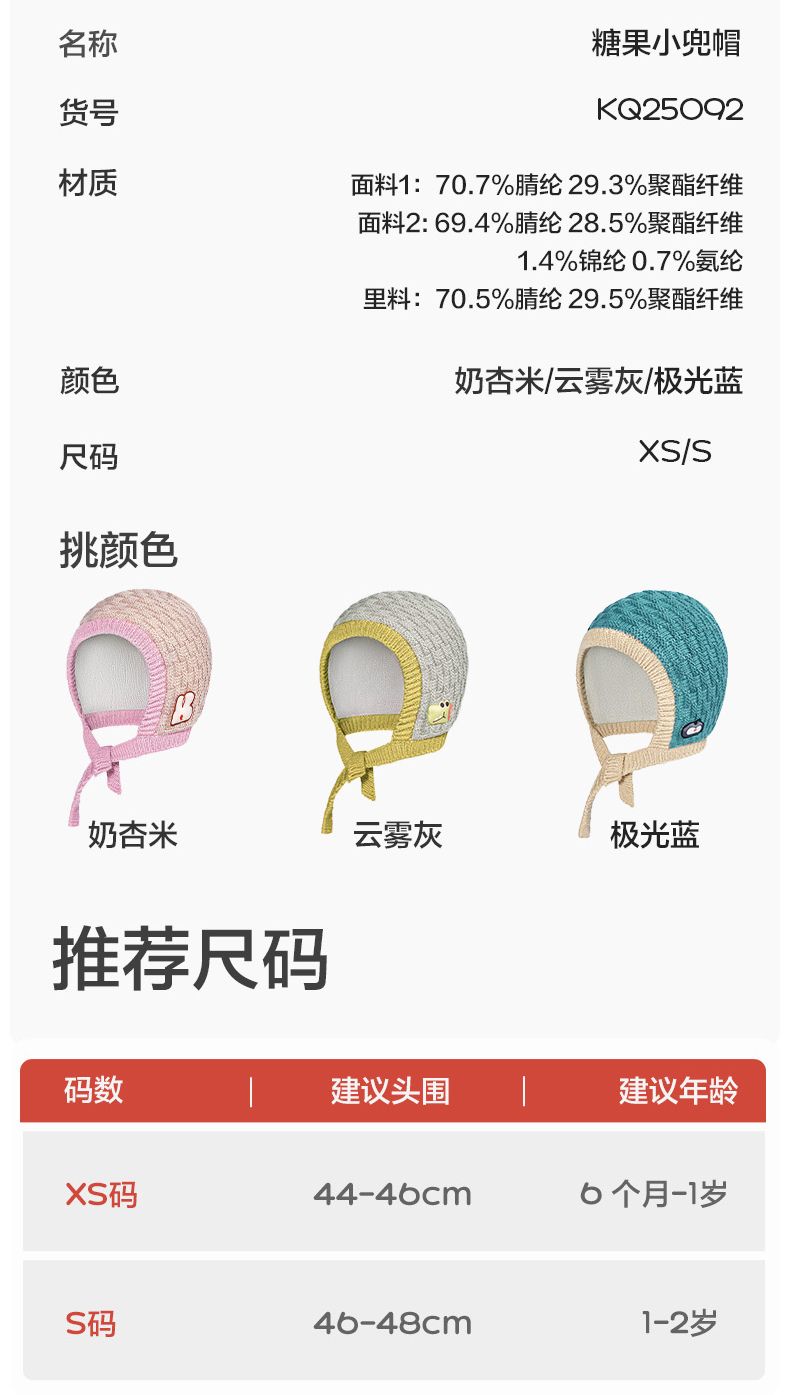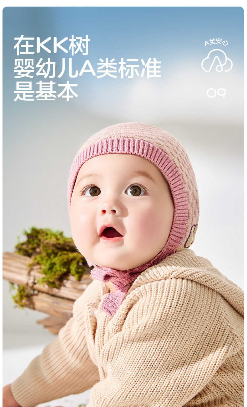 KK树宝宝帽子秋冬婴幼儿A类护耳针织帽男童女孩保暖抗静电儿童帽糖果小兜帽