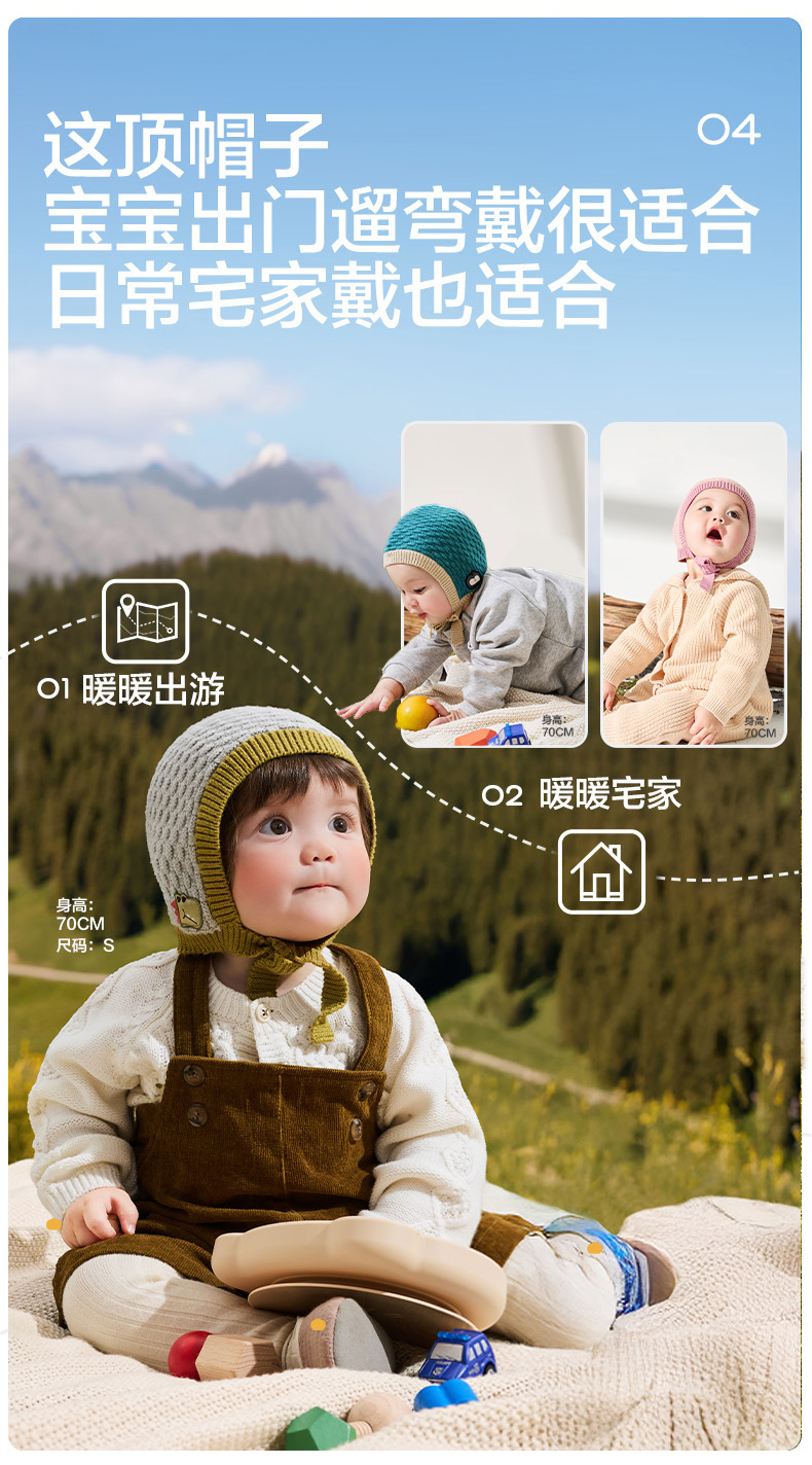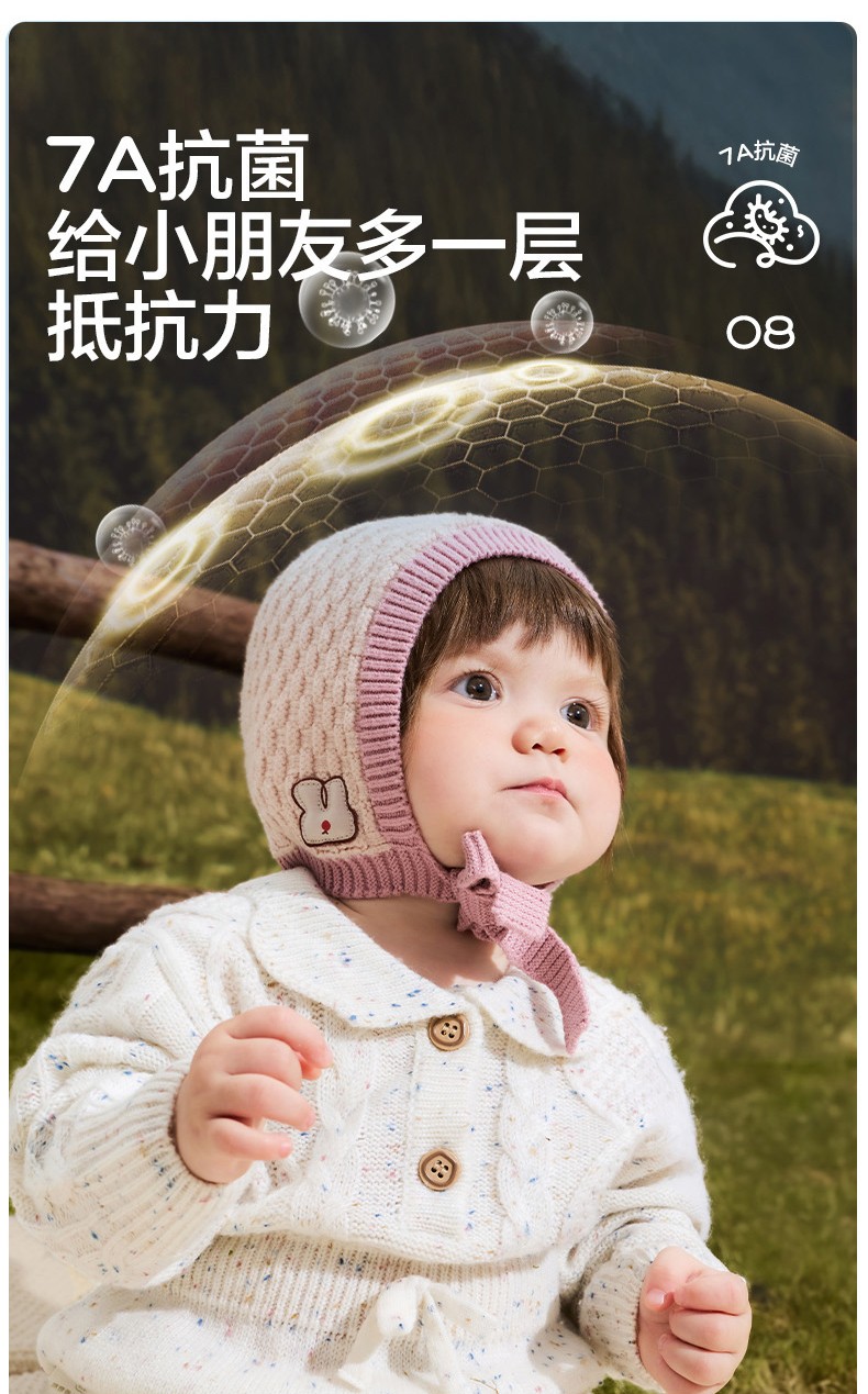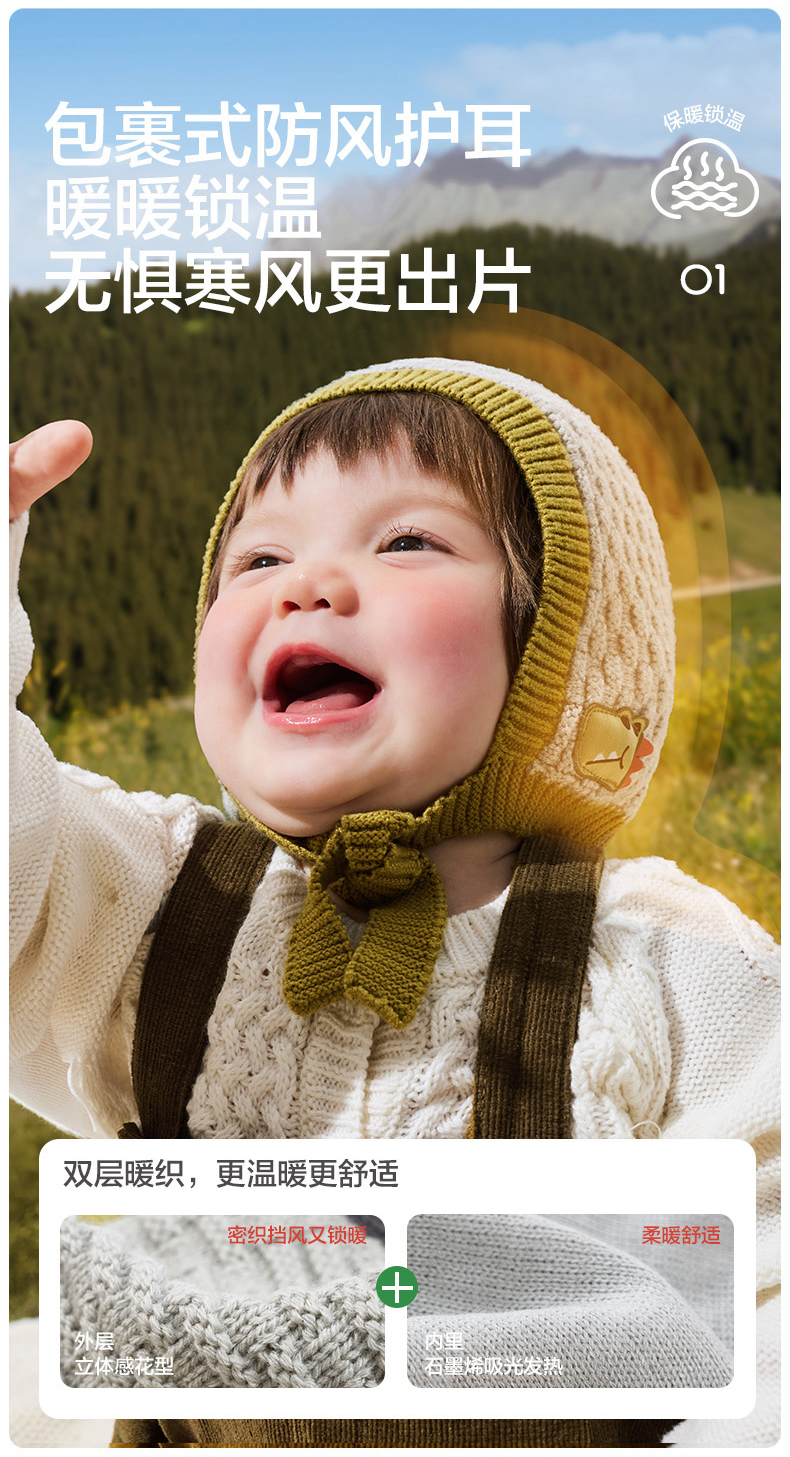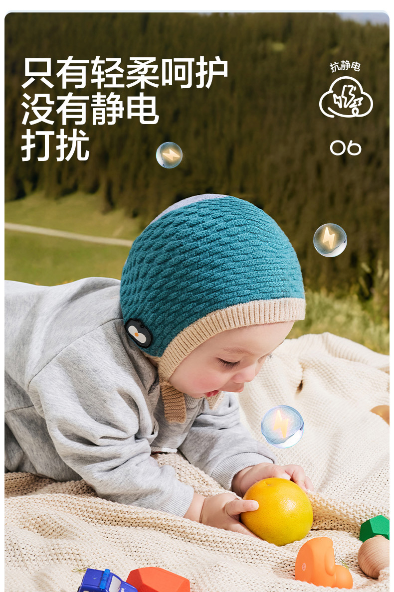 KK树宝宝帽子秋冬婴幼儿A类护耳针织帽男童女孩保暖抗静电儿童帽糖果小兜帽