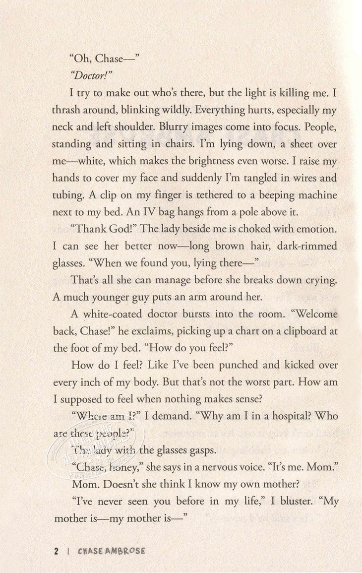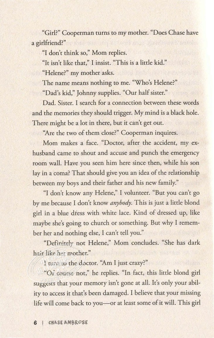 Chase doesn't remember falling off the roof. He doesn't remember hitting his head. He doesn't, in fact, remember anything. He wakes up in a hospital room and suddenly has to learn his whole life all over again . . . starting with his own name.