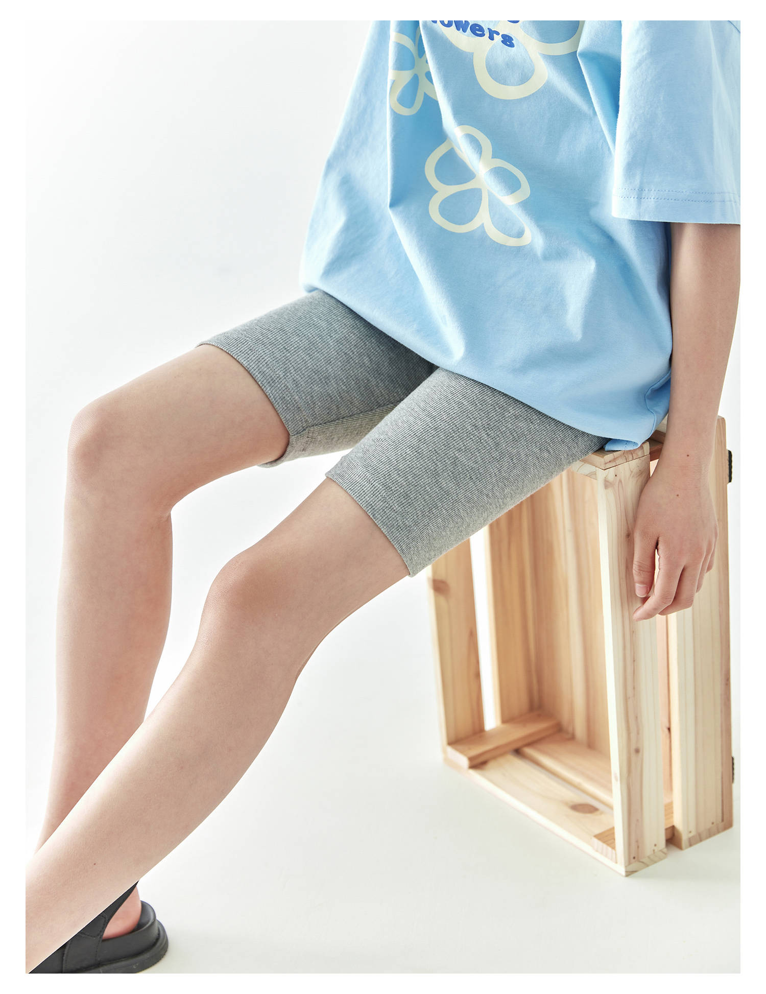 【代发】针织打底短裤 棵初弹力短裤打底裤女童柔软舒爽防走光安全裤白色/粉色/花灰