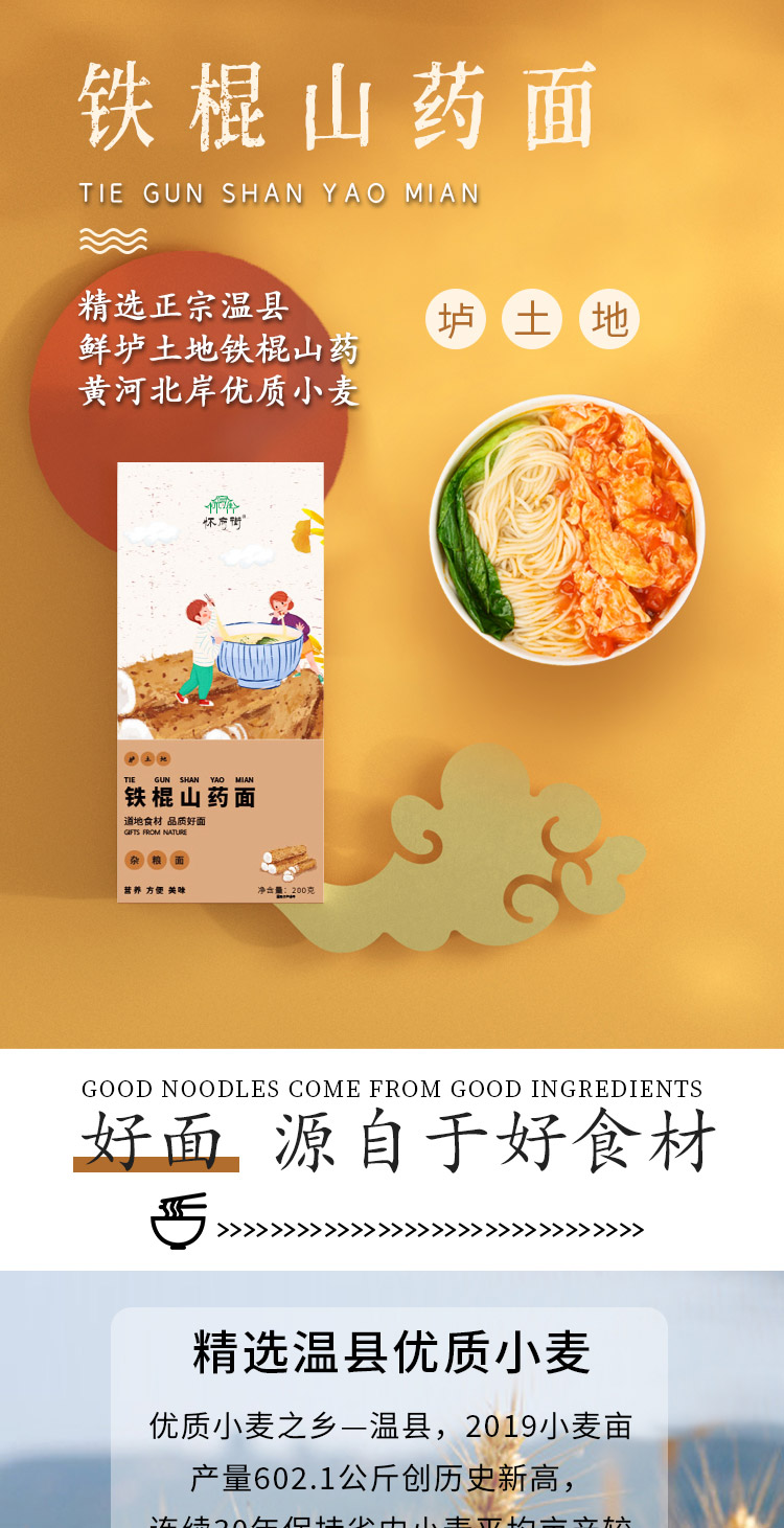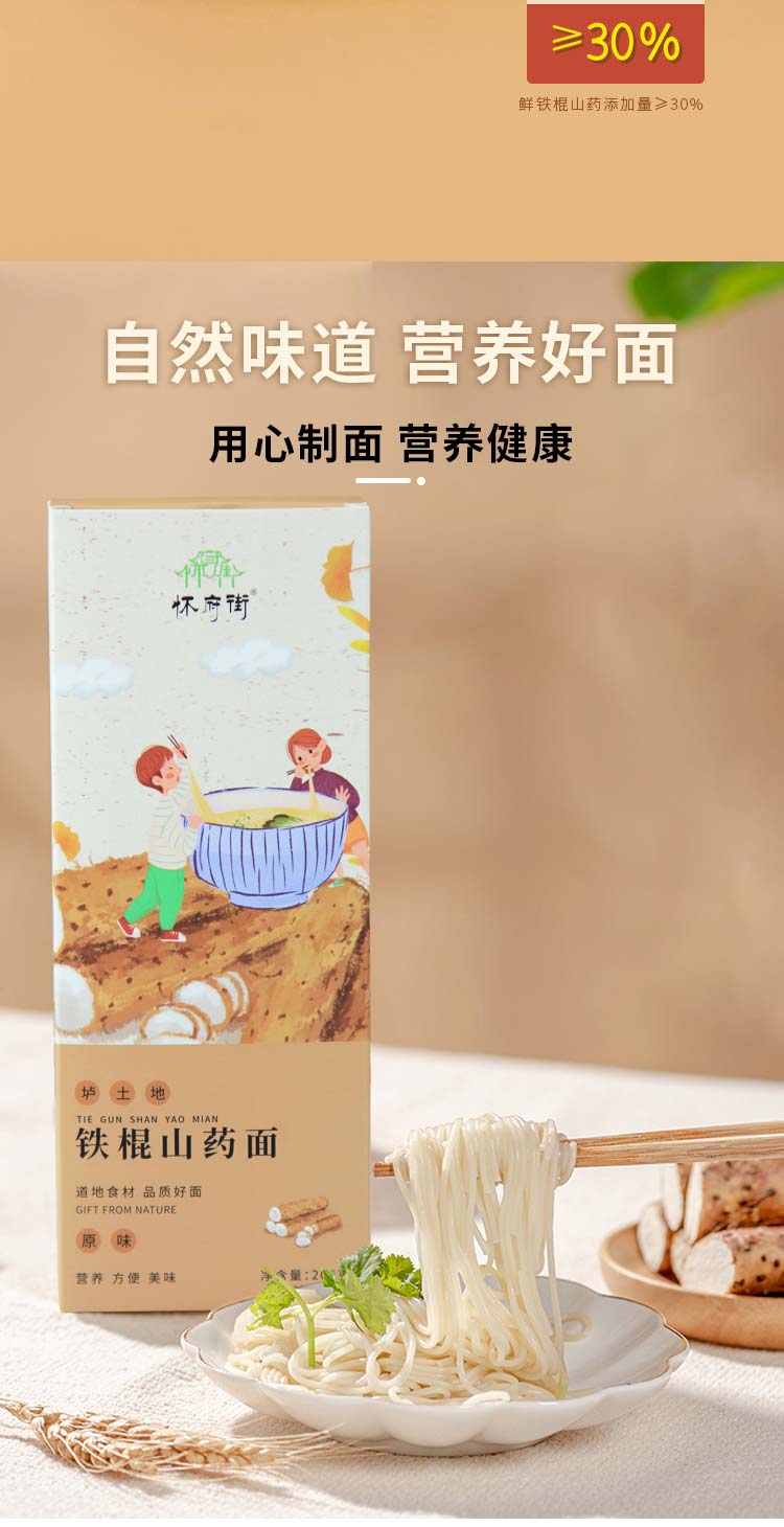 添加30%垆土铁棍山药和小麦精制而成的铁棍山药面 200g/盒