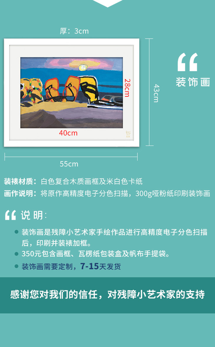 装饰画《一起去度假》 金羽翼残障小艺术家手绘作品 复制画/原画