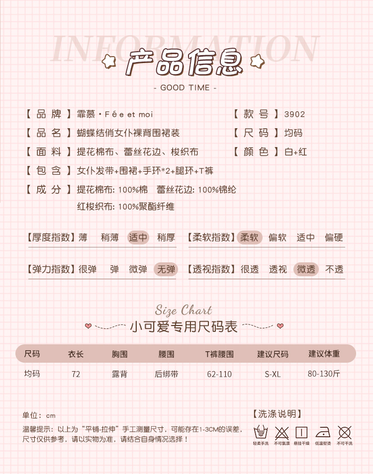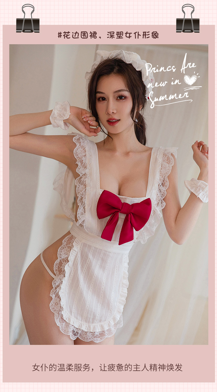 霏慕 蝴蝶结俏女仆裸背围裙装女主播网红性感情趣内衣夫妻刺激制服性感睡衣浴睡袍3902 均码