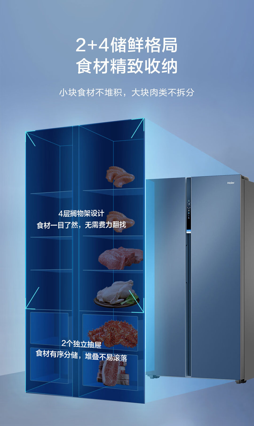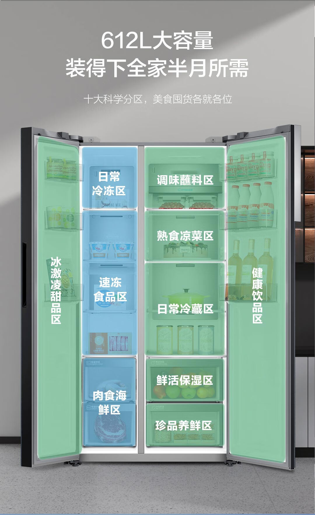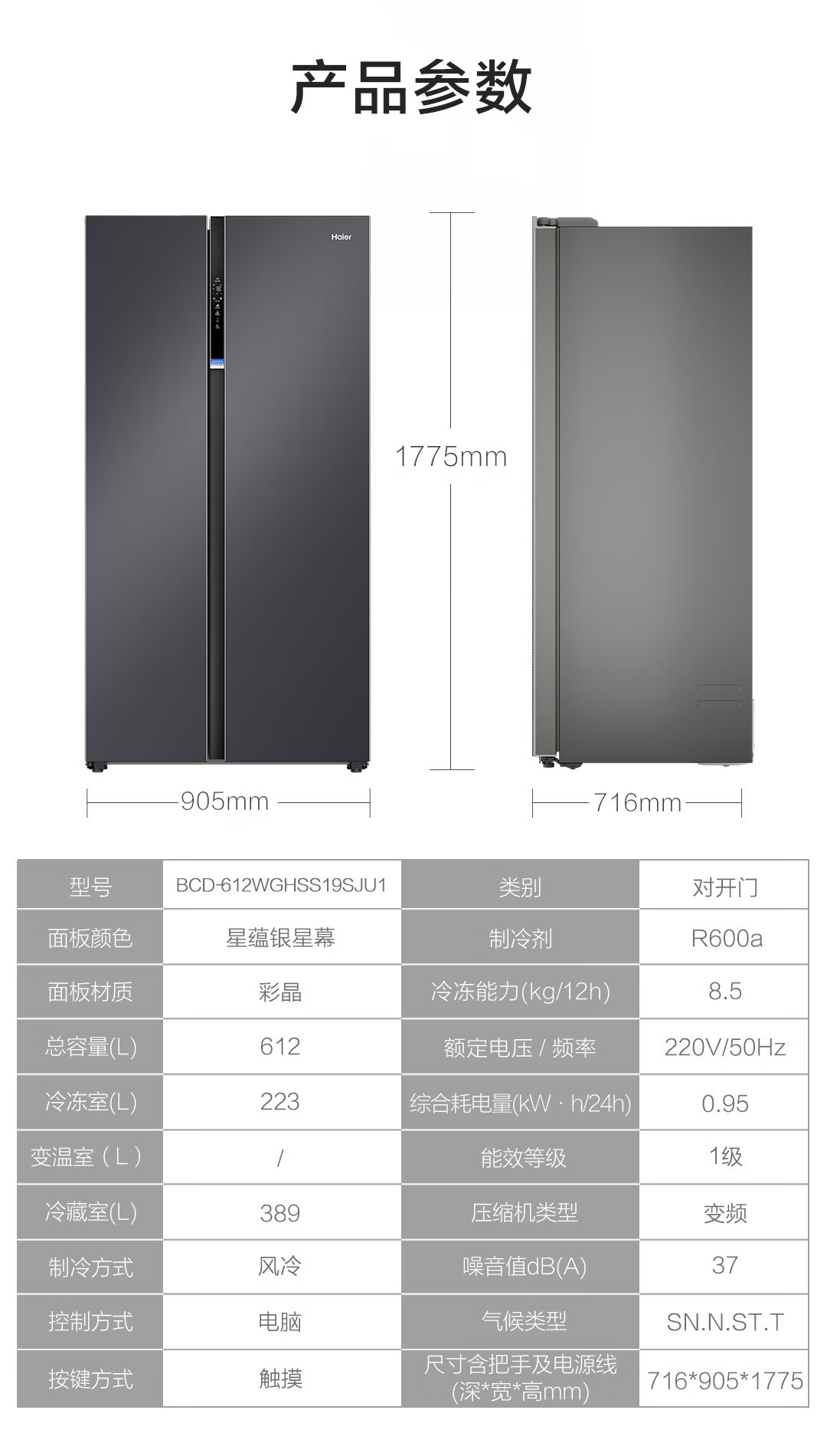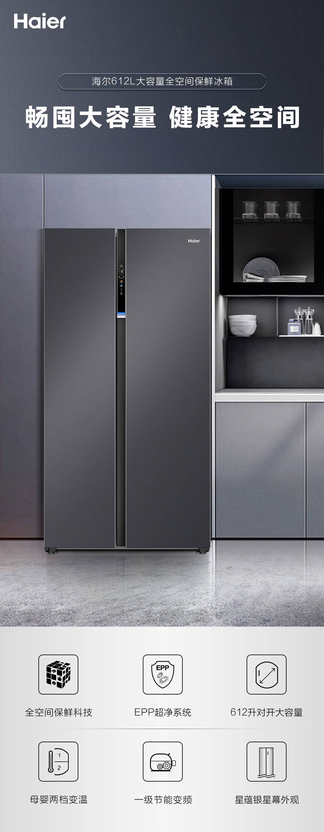 【星珀系列】海尔冰箱双开对开门612升风冷无霜大冷冻室超大容量双变频新一级能效超薄嵌入式家用冰箱 612升 全空间保鲜/钢化玻璃哑光面板