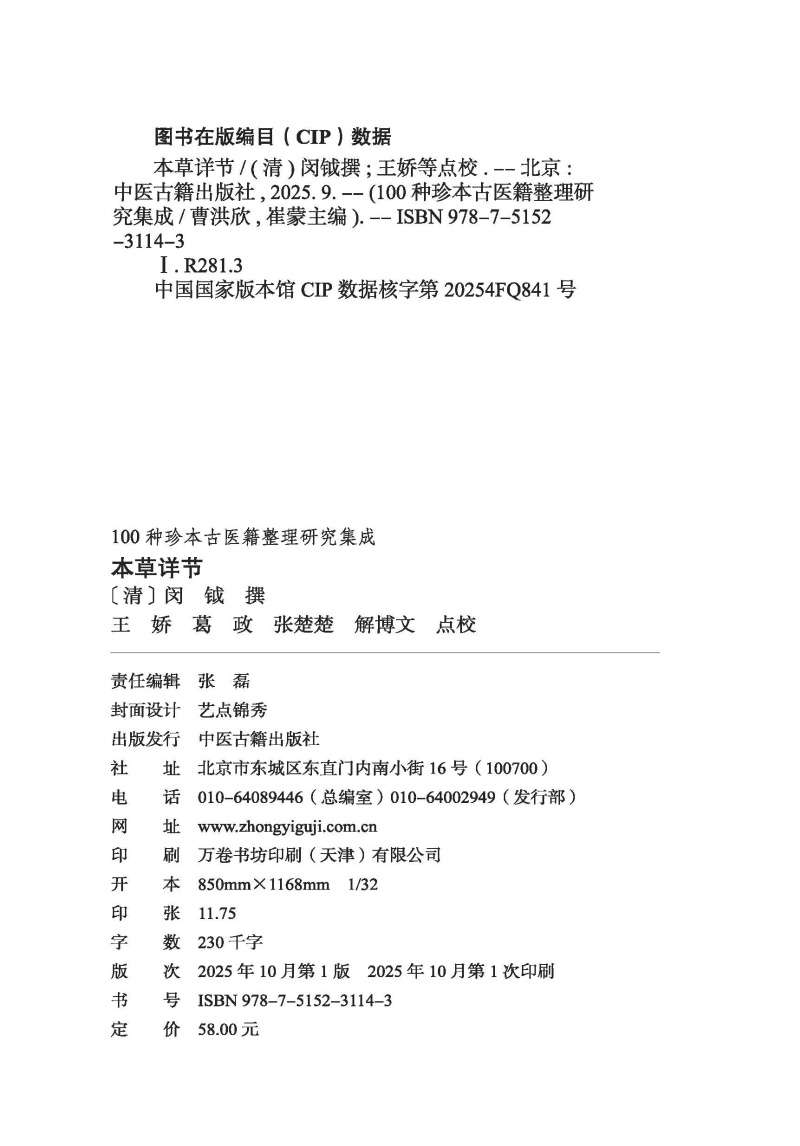 本草详节 100种珍本古医籍整理研究集成 清 闵钺 撰 王娇 葛政 张楚楚 解博文 点校 临床医学 古籍 9787515231143中医古籍出版社