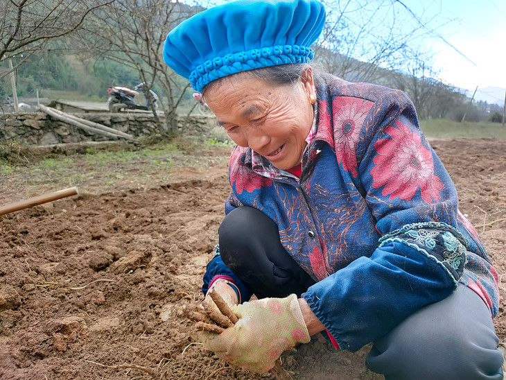 正在挖当归的杨奶奶告诉我们,这种甜当归根须较少,口味也不同于常见的药当归,不会有浓重的苦味,反而带着甜。