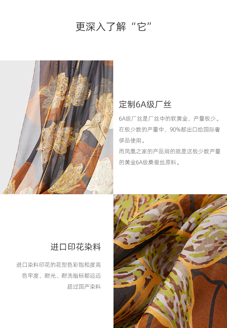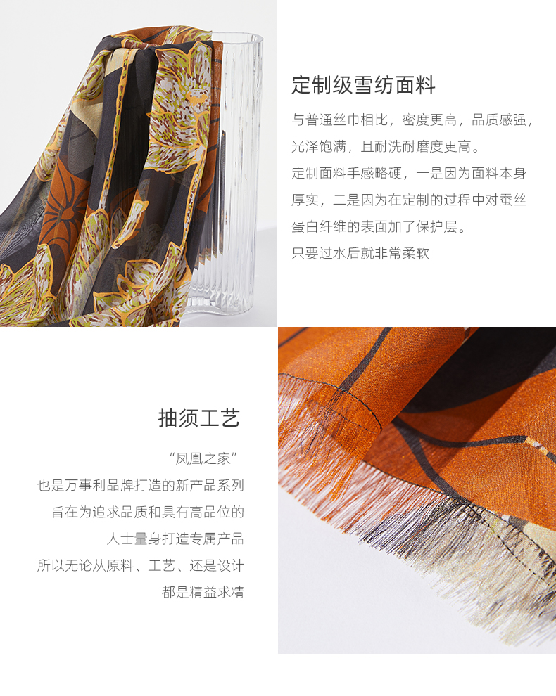 凤凰之家“凤兮”63厘米双面印花中方巾