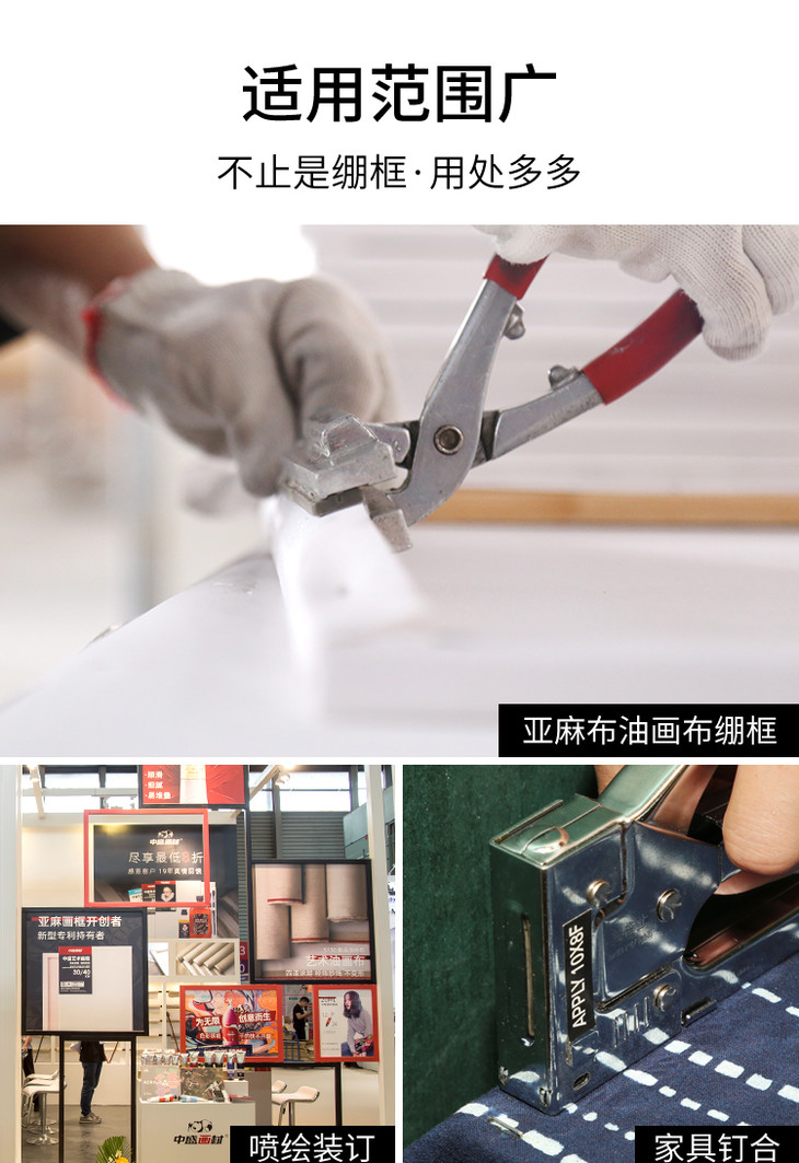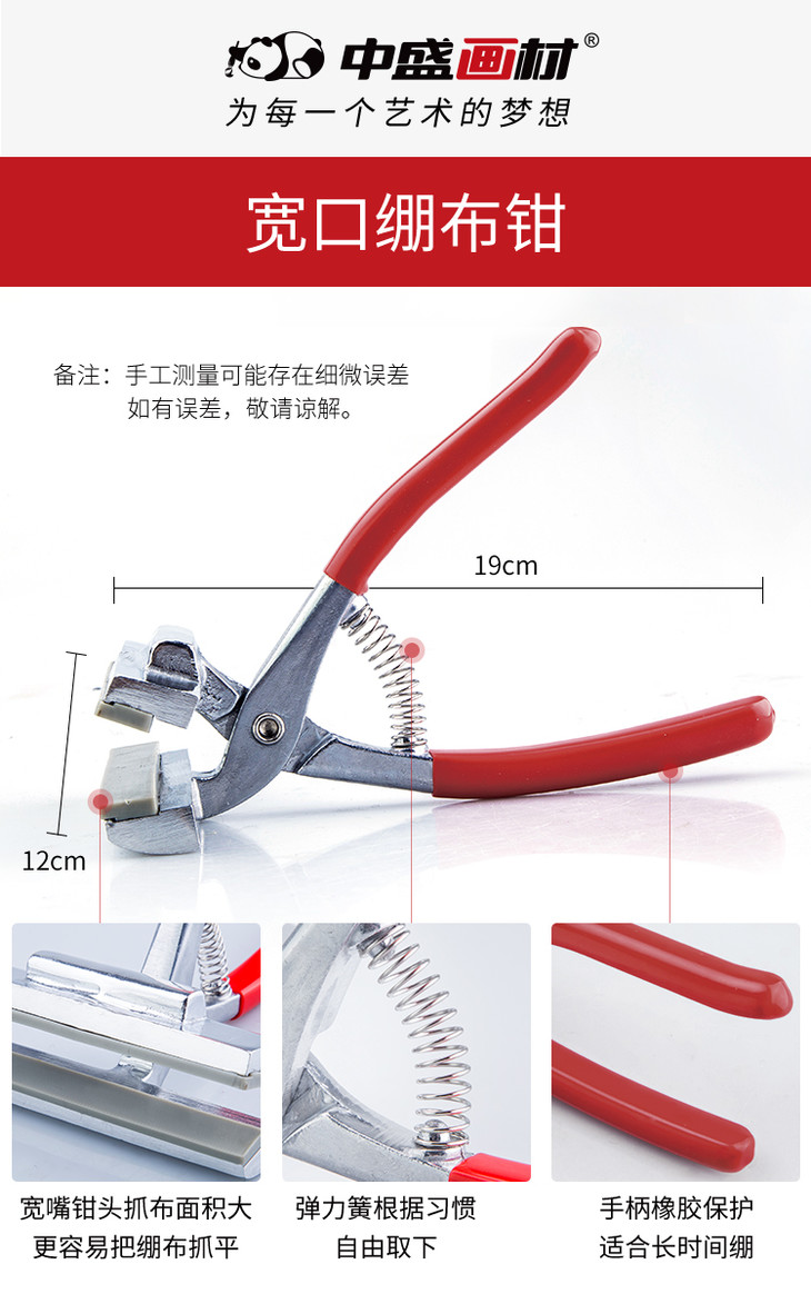 中盛画材 绷布工具3件套12cm宽嘴绷布钳/钉枪/u型钉画框工具装订机油画工具油画材料美普士钉枪