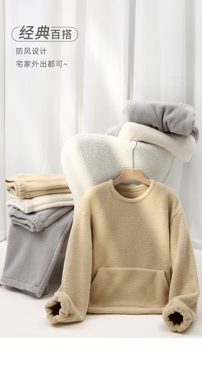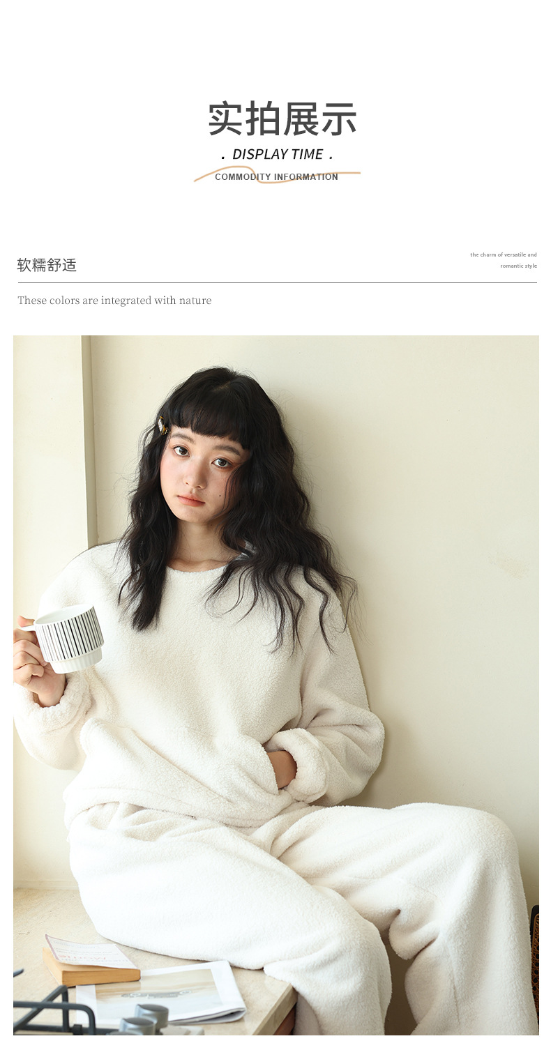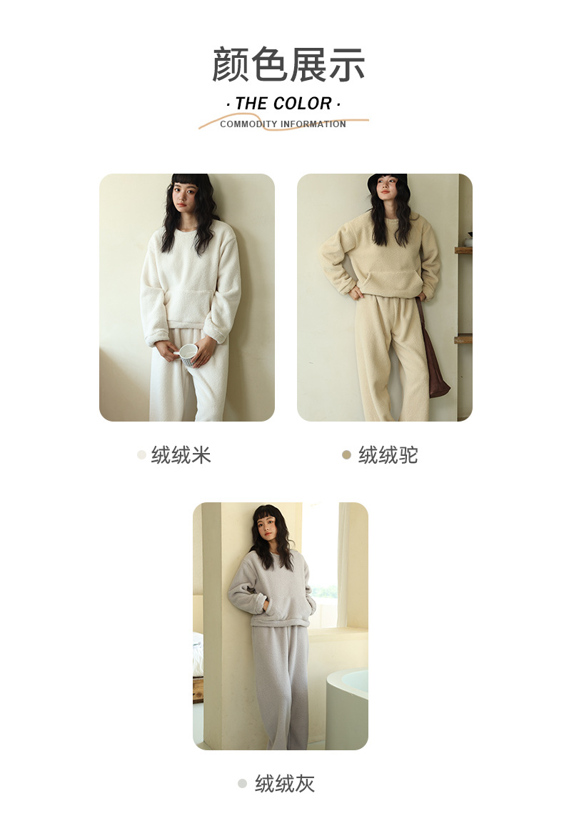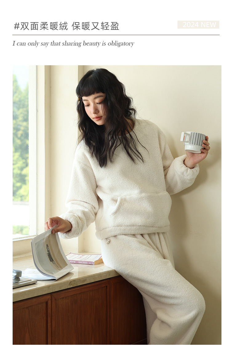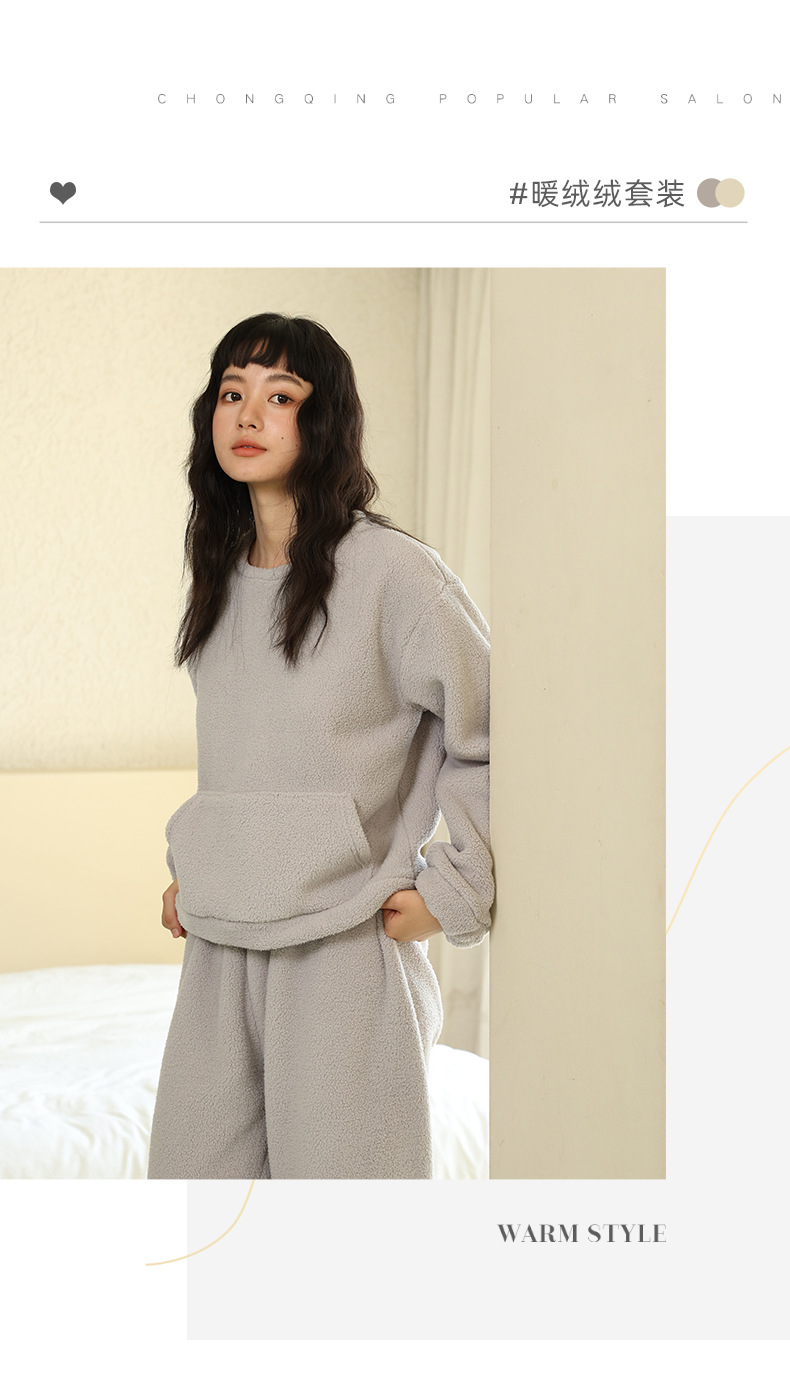 【暖绒绒加厚睡衣】秋冬简约套头家居服 可外穿双面绒休闲保暖睡衣套装