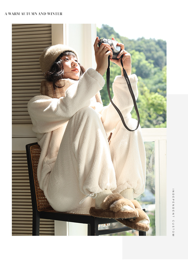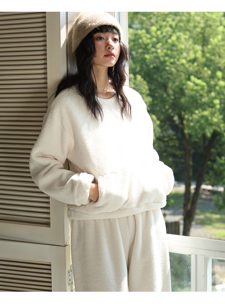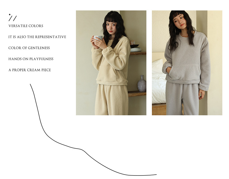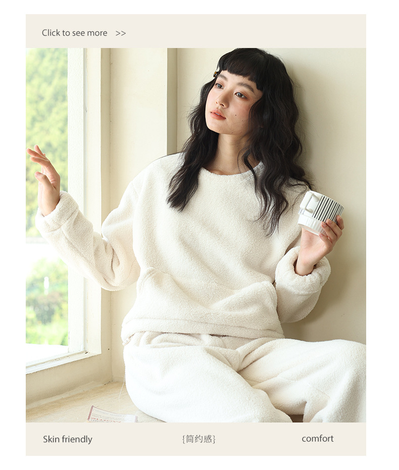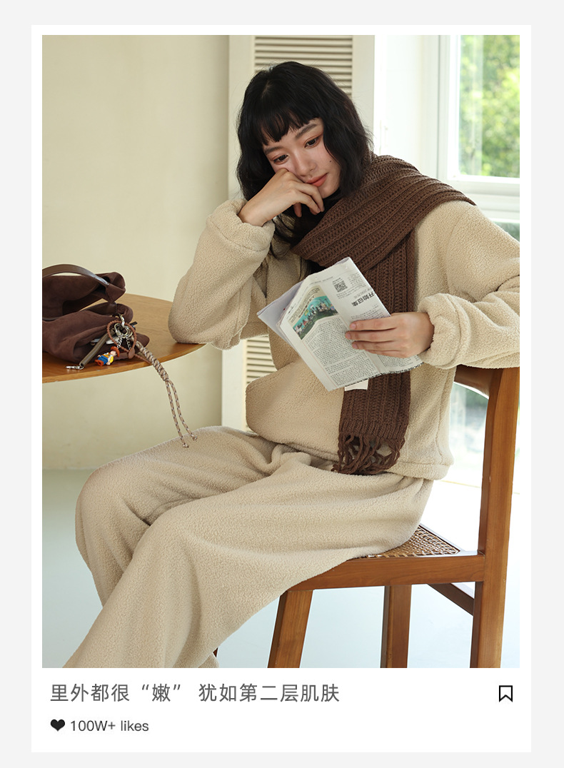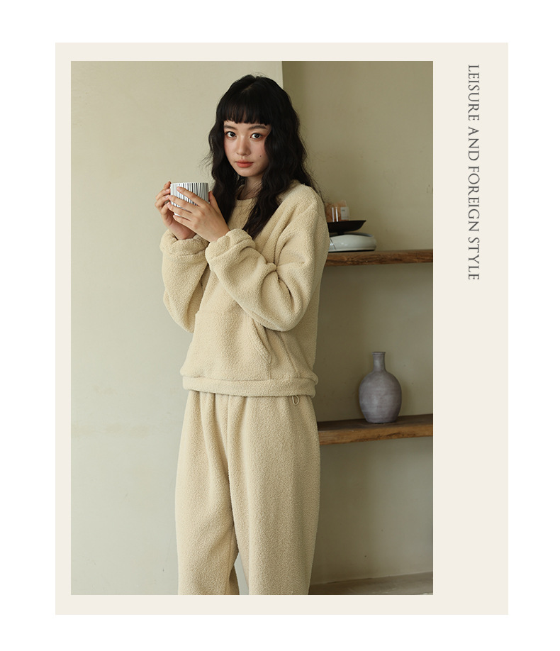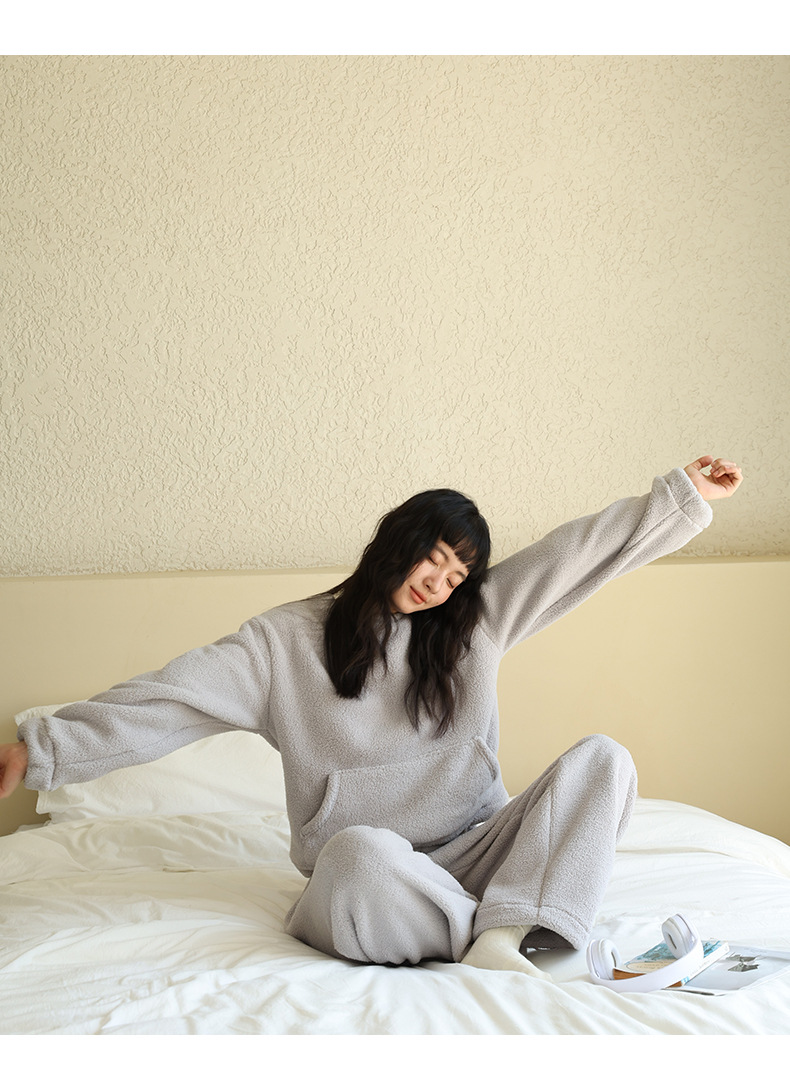【暖绒绒加厚睡衣】秋冬简约套头家居服 可外穿双面绒休闲保暖睡衣套装