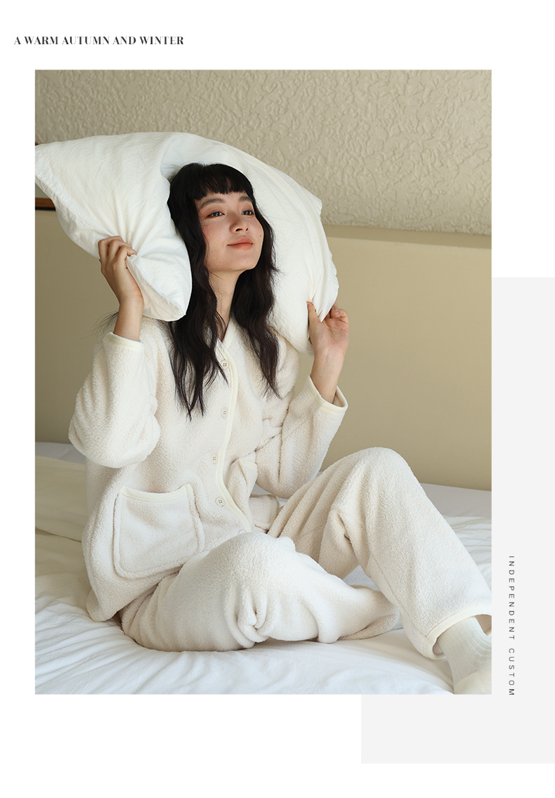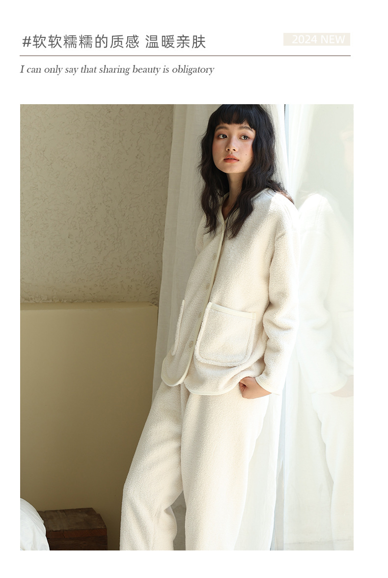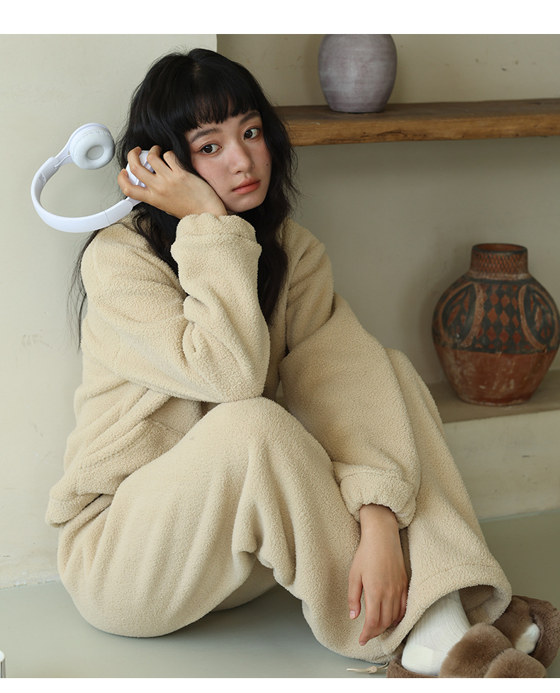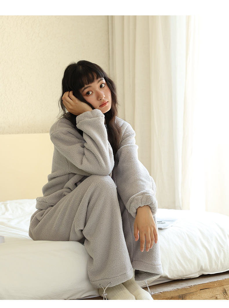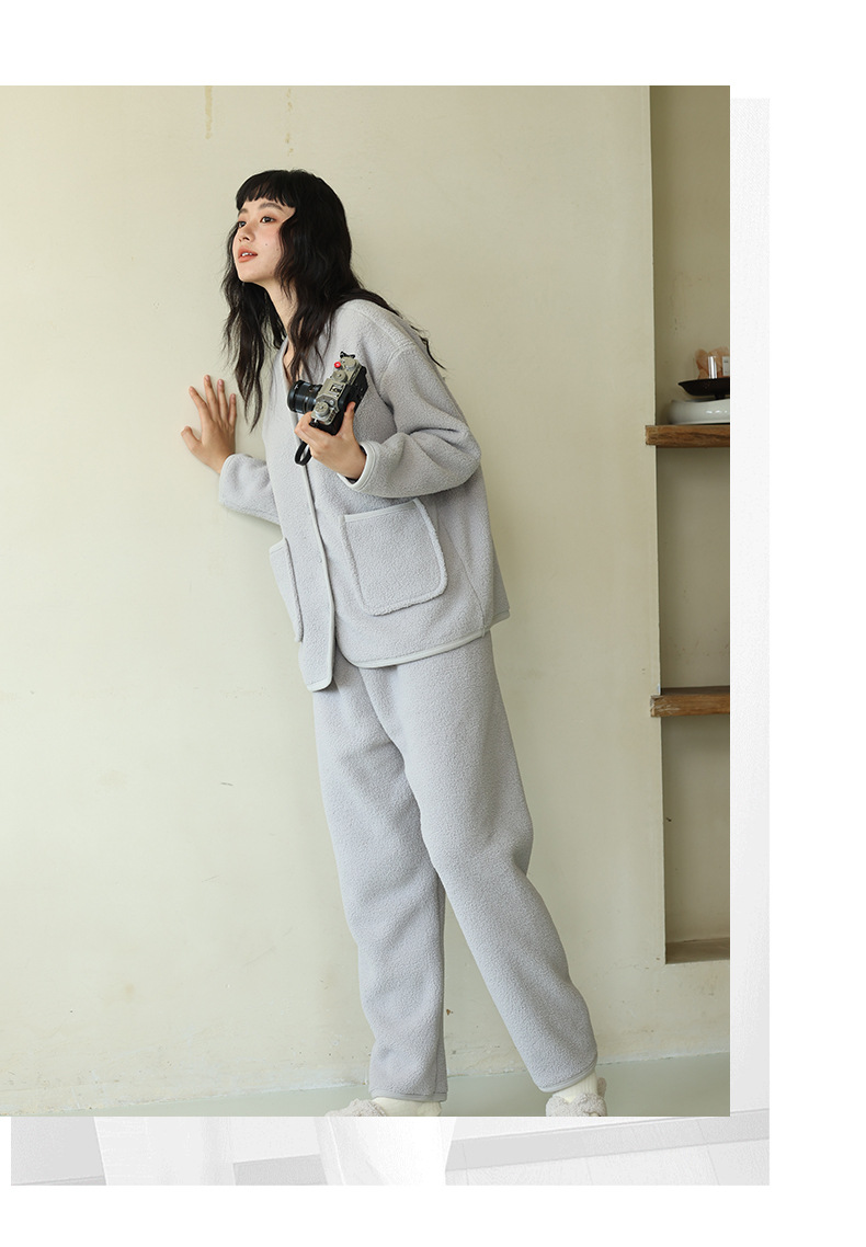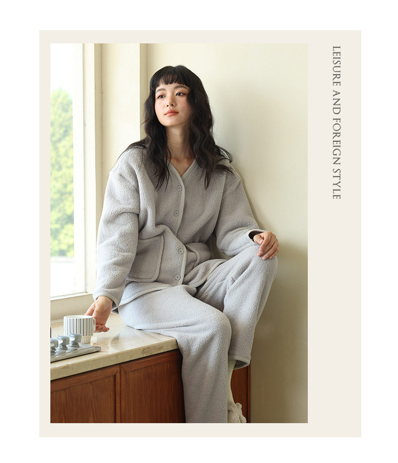 【暖绒绒加厚睡衣】秋冬简约套头家居服 可外穿双面绒休闲保暖睡衣套装