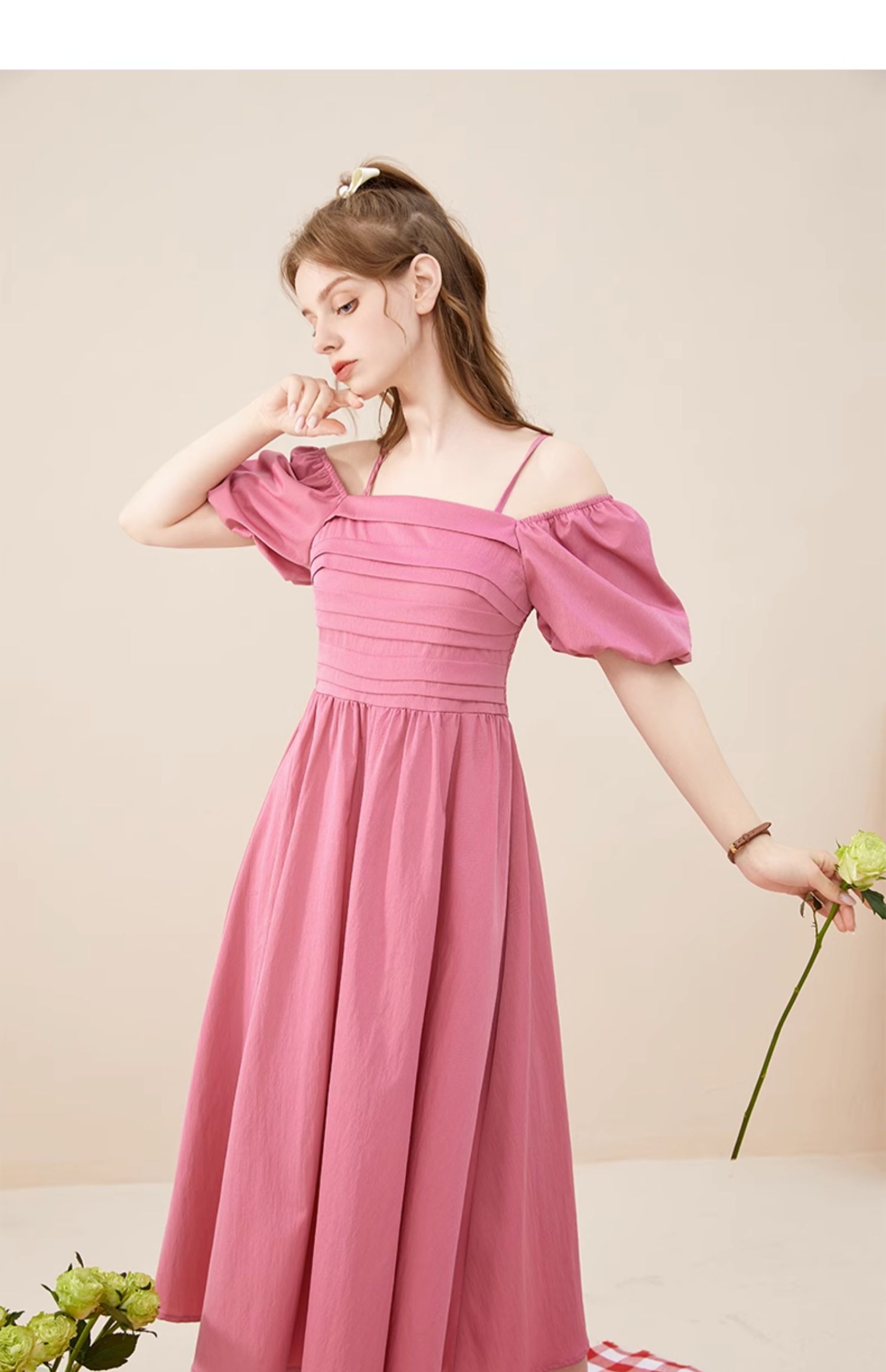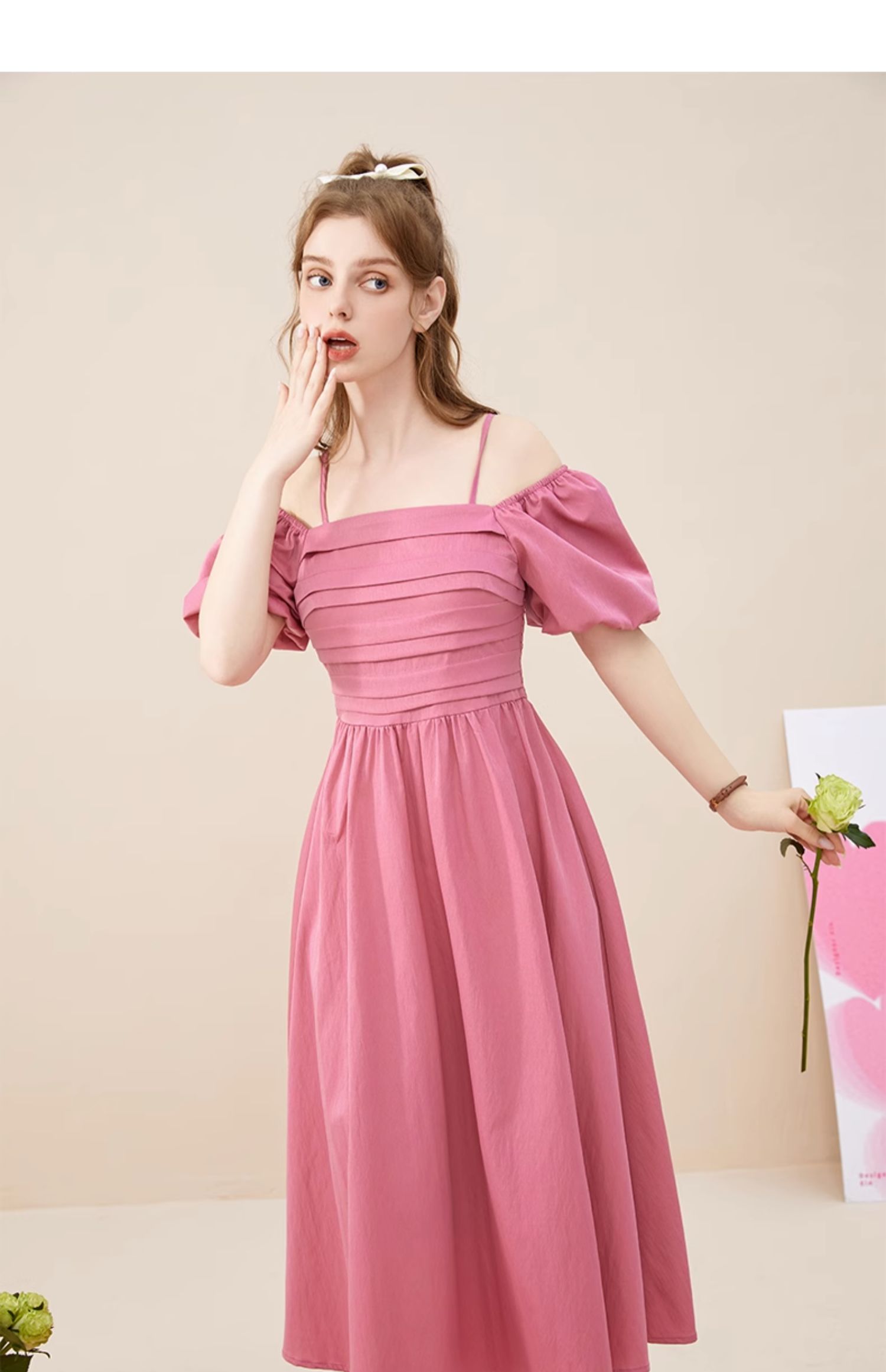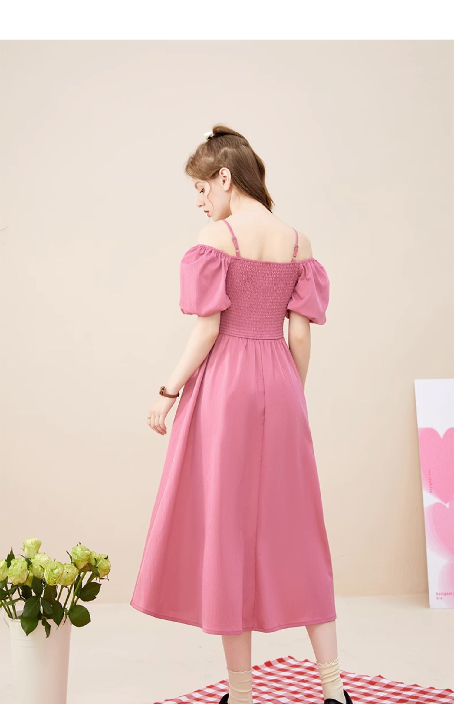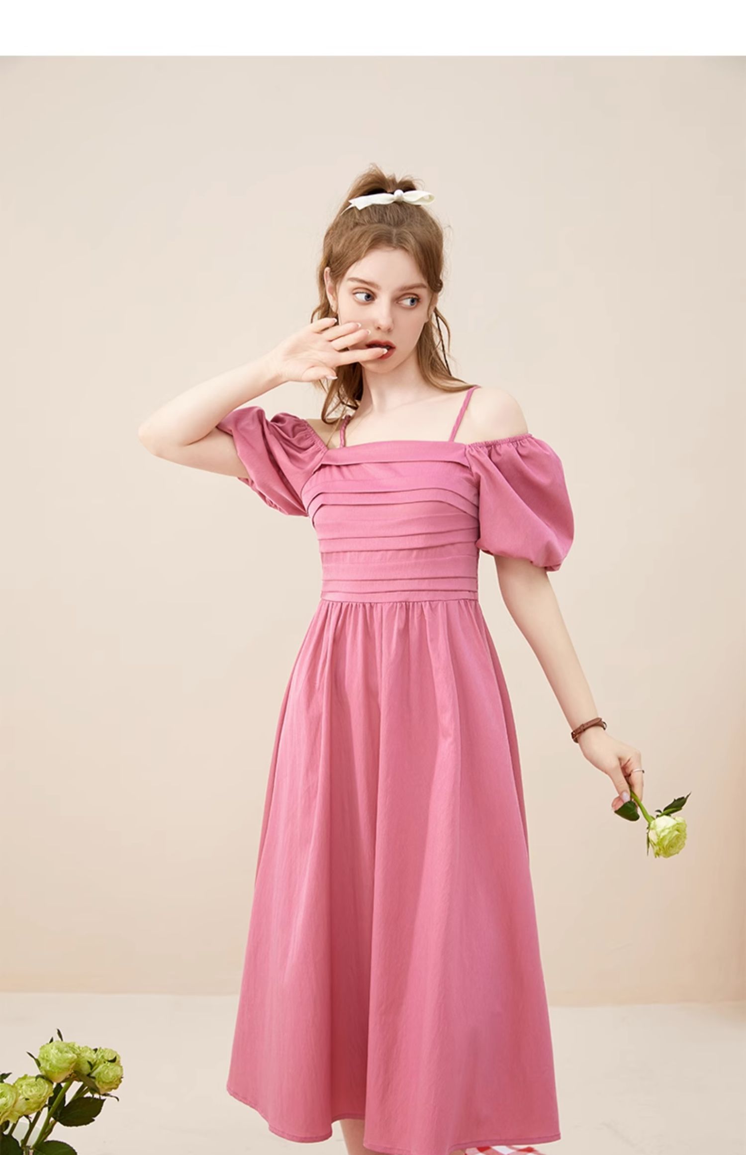 女装一字领收腰A摆净色连衣裙-97075Q3223003