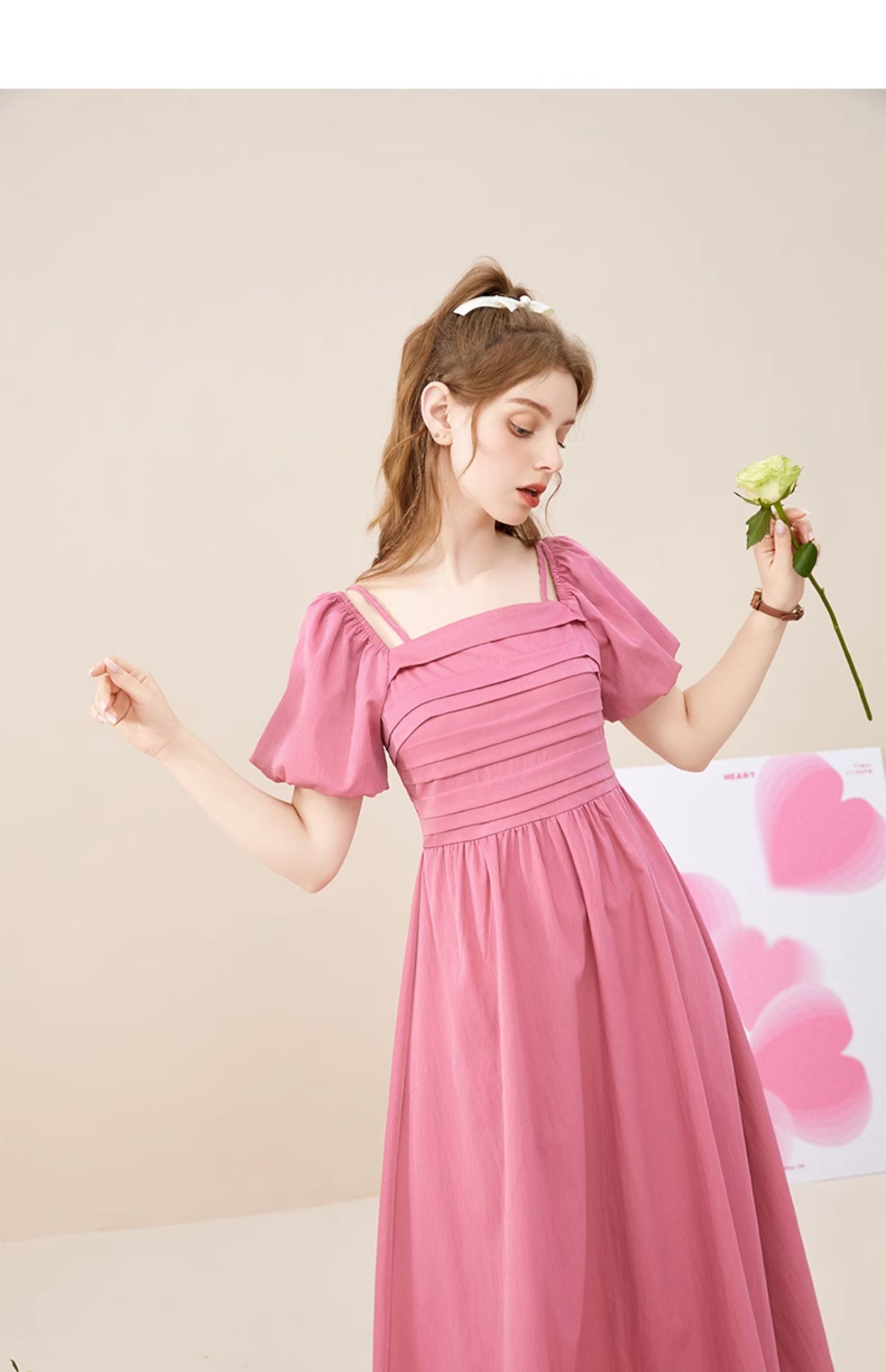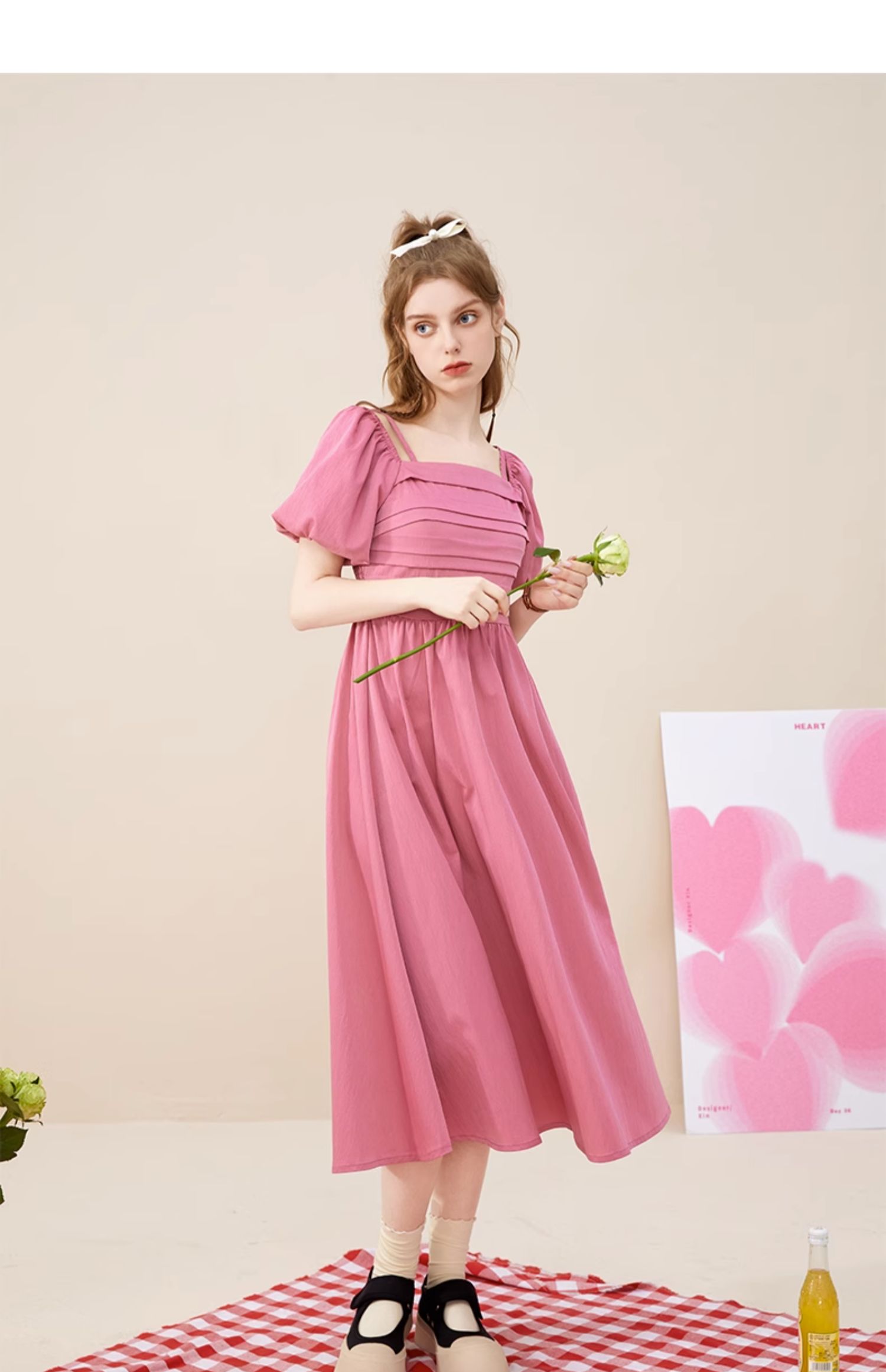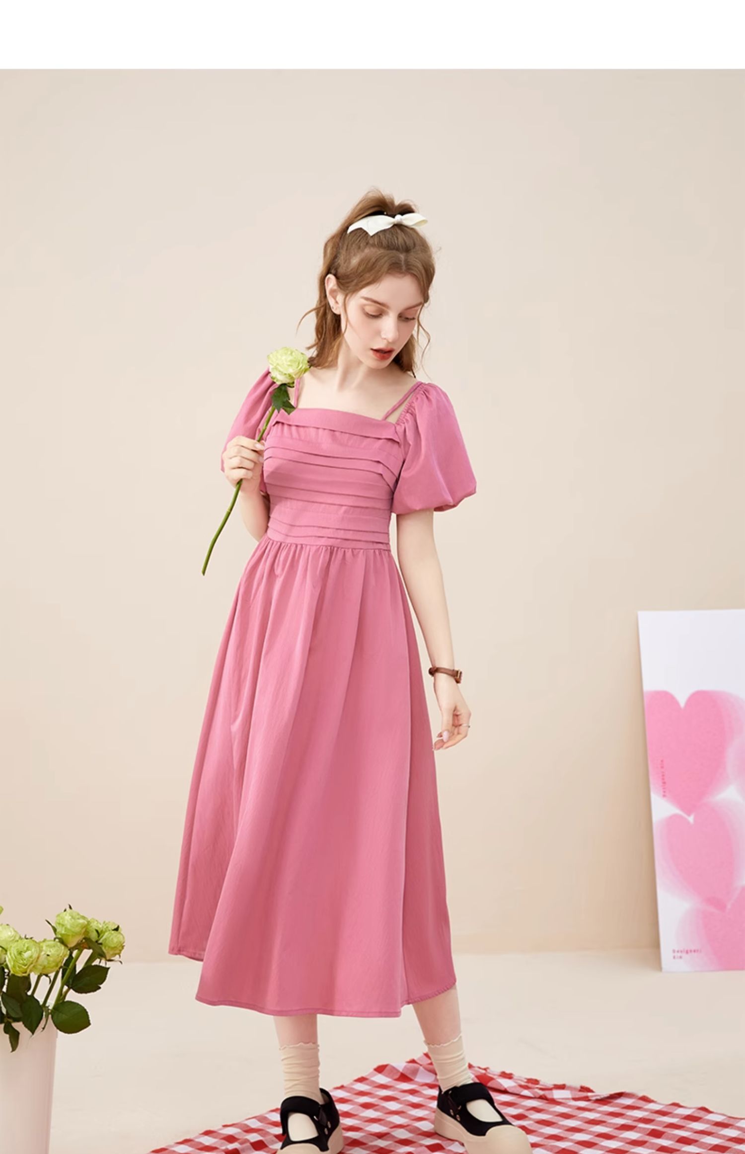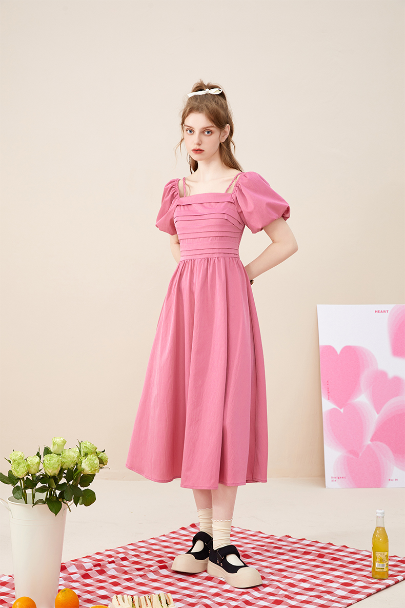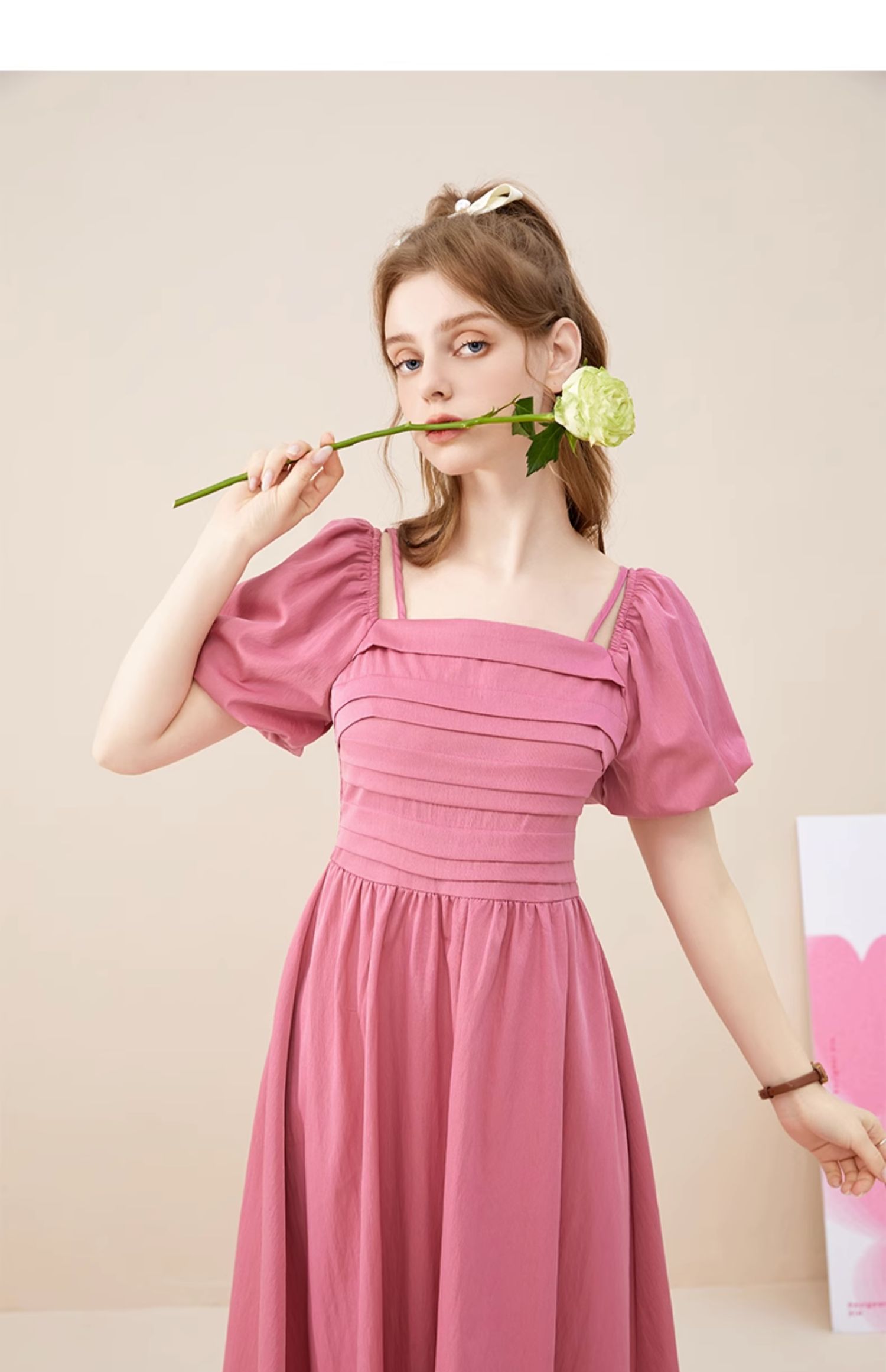 女装一字领收腰A摆净色连衣裙-97075Q3223003