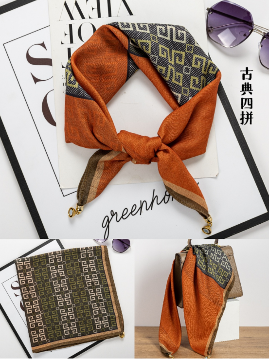🌸【品牌直发】😎HLUOS复古轻奢吸盘扣方巾:双十一活动,🥰平常开团39.9💰一条,🌈今天19.9💰 ✅双面磁扣围巾,让你时尚又暖心☺️