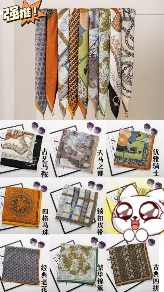 法式风情丝巾搭配|氛围感神器Get 一条优雅的丝巾提升整体的LOOK搭配优雅又简单的图案 大牌丝巾的特点都是有一些马、马具、马鞍等等元素搭配亮丽的橘色 “四格拼接马”围巾款式增加了围巾的艺术感 具有浓郁的复古风格,不仅适合搭配休闲装, 也适合搭配正装,展现出独特的品味和气质。 无论是系在头上 还是点缀在颈脖 都是满满的高级感 春日穿搭小Tips