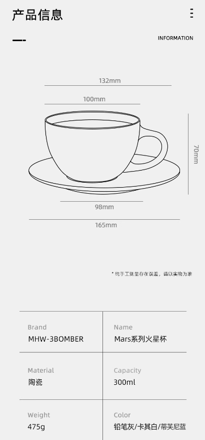 陶瓷咖啡杯 拉花杯 MHW-3BOMBER轰炸机 Mars火星杯