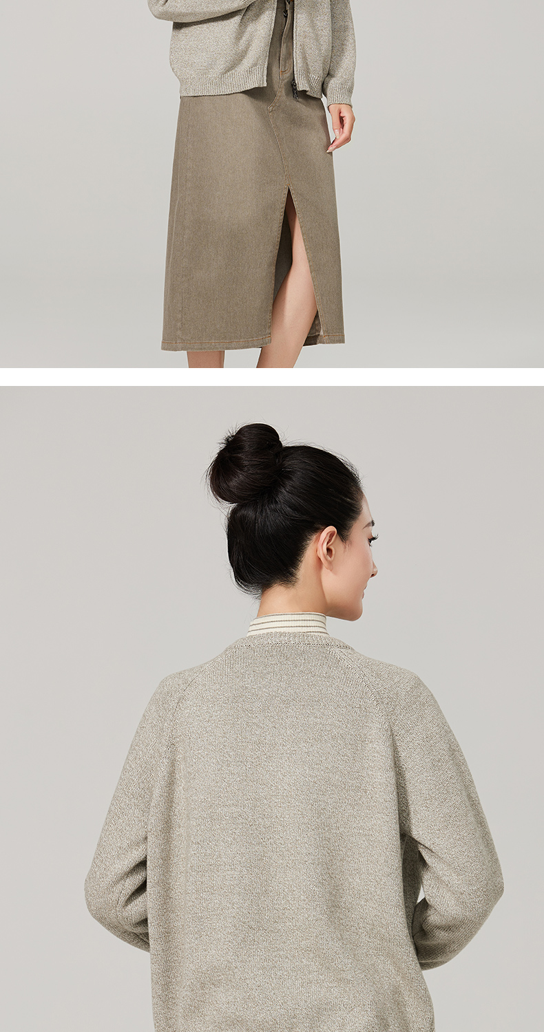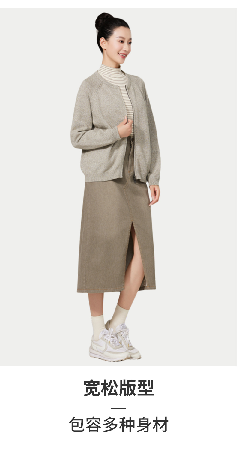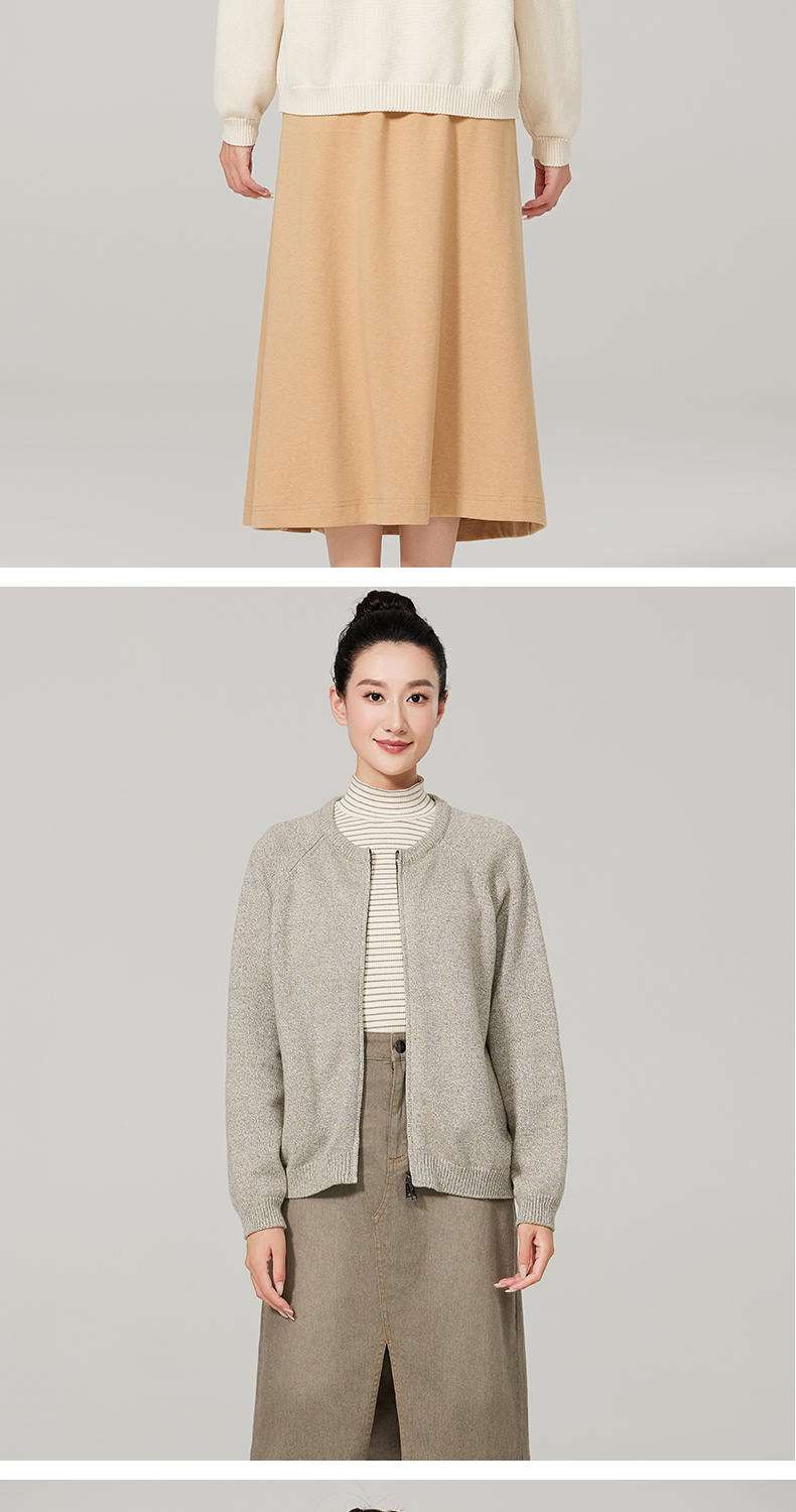 素道有机彩棉纯棉针织拉链衫女士白色秋冬开衫上衣简约灰色保暖衫