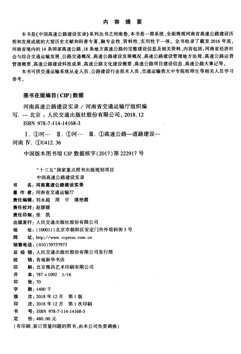 河南高速公路建设实录ISBN 978-7-114-14168-3