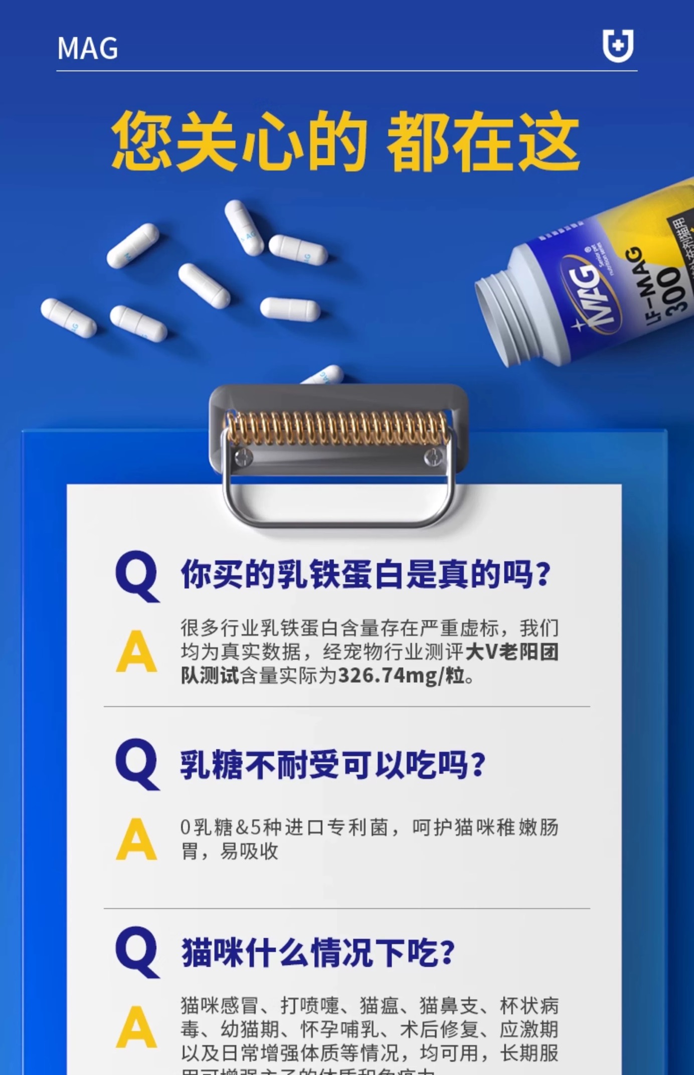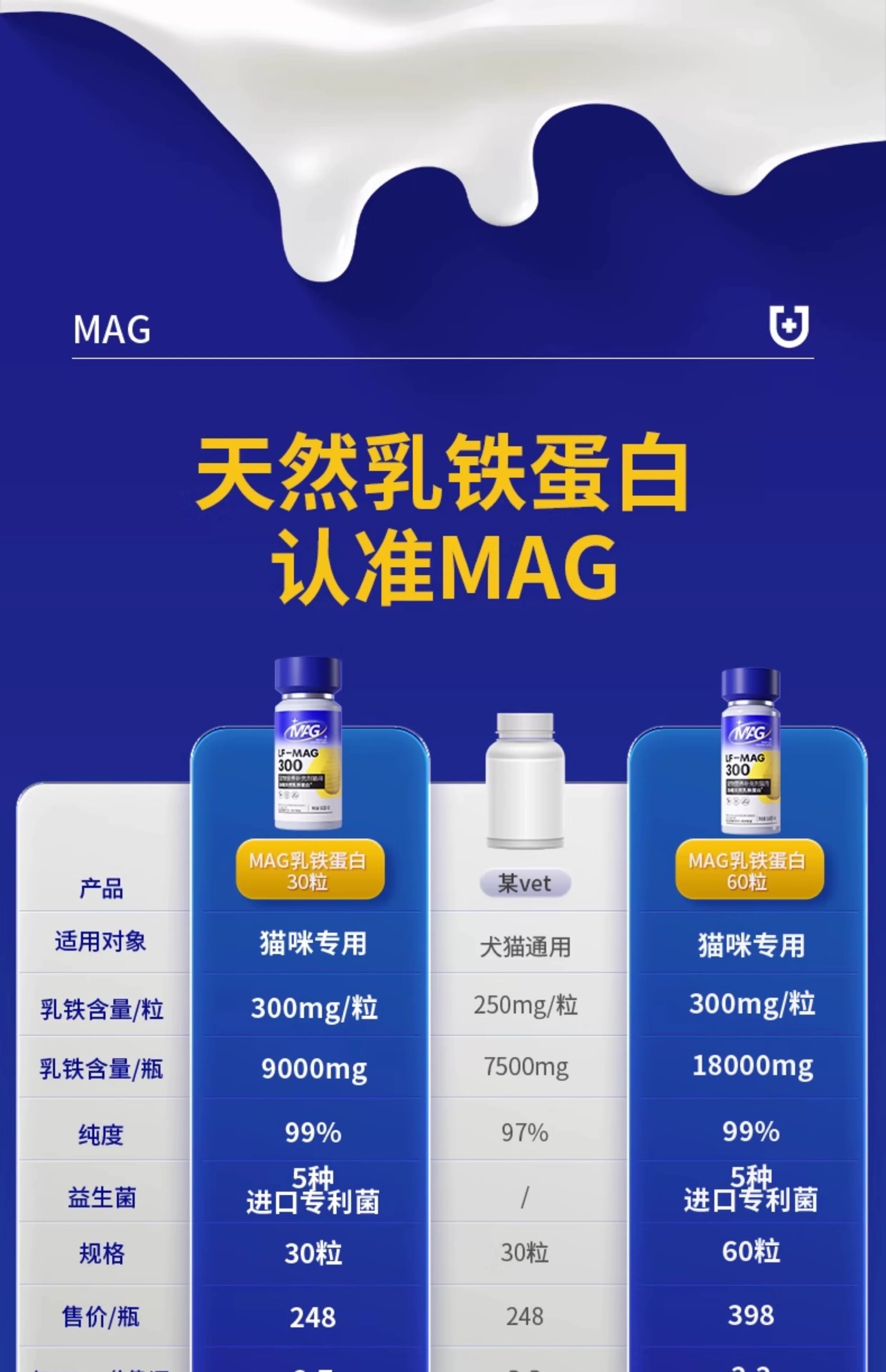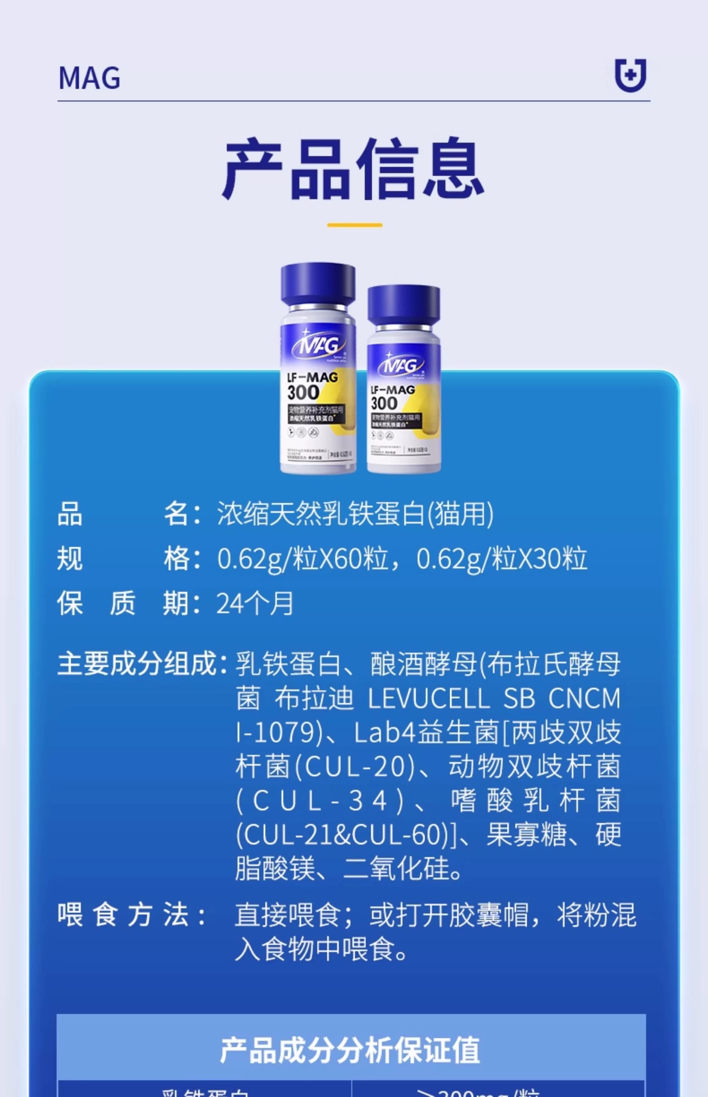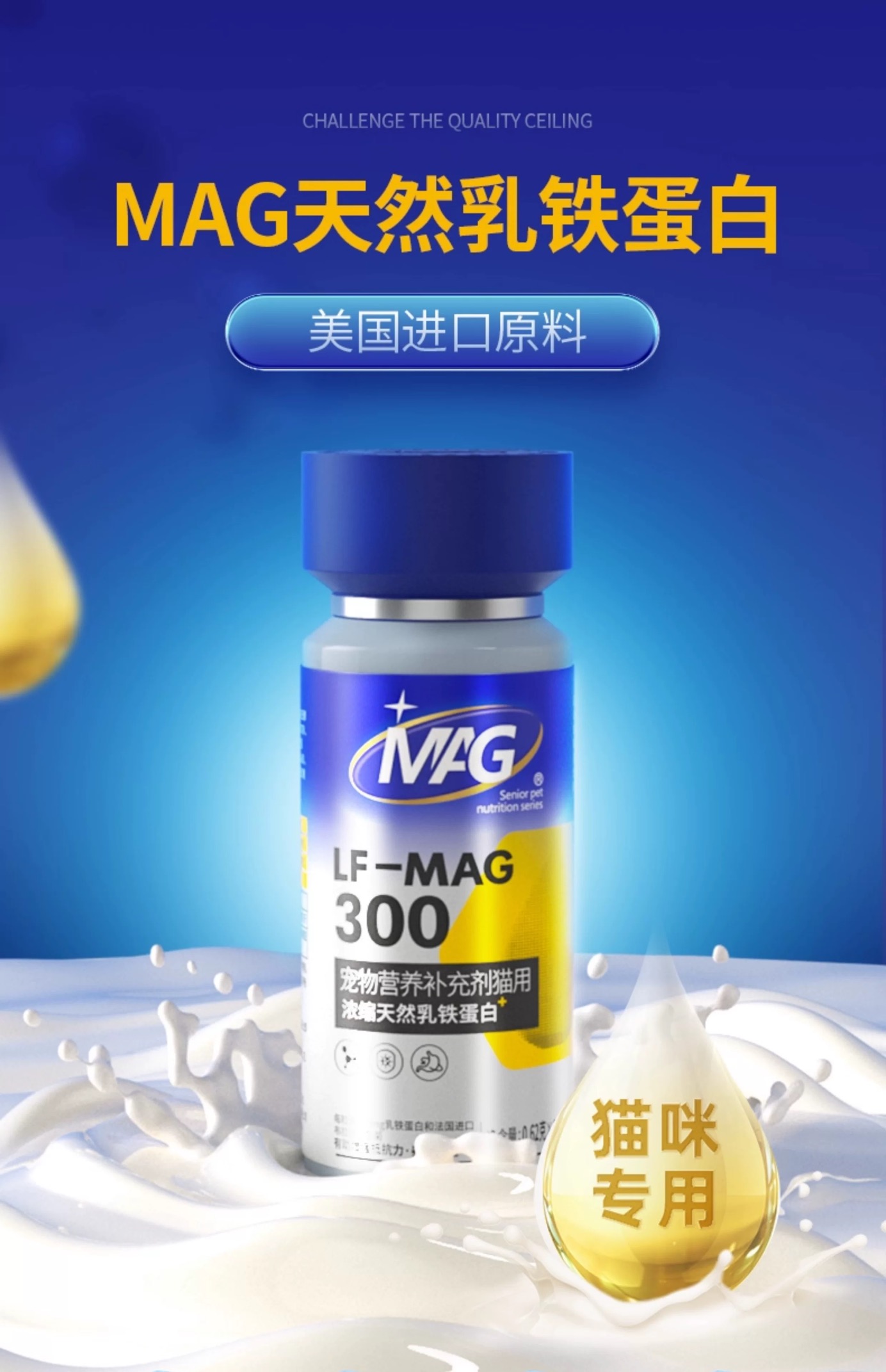 MAG浓缩天然乳铁蛋白 猫用 0乳糖 增强抵抗力 60粒/瓶