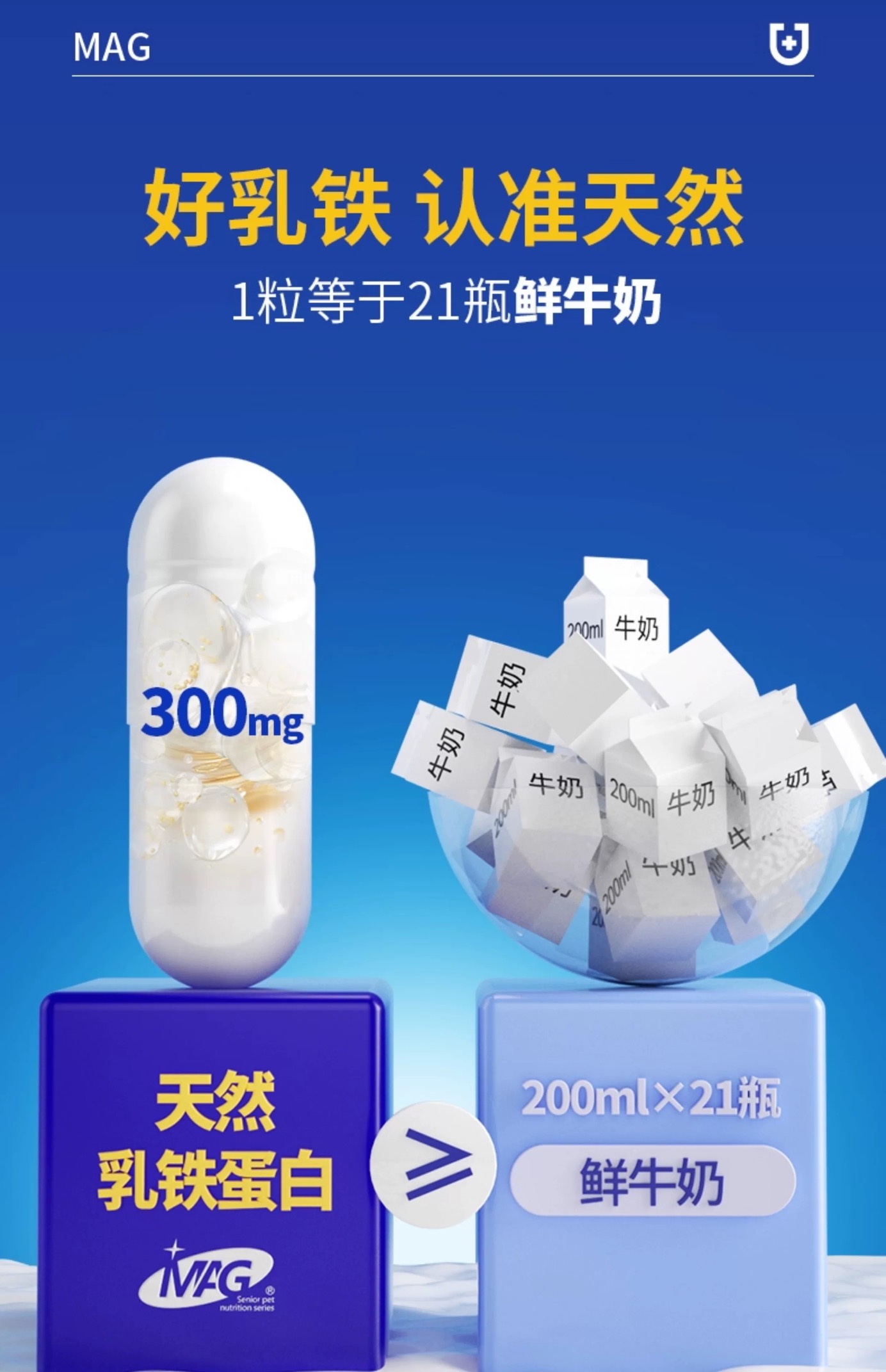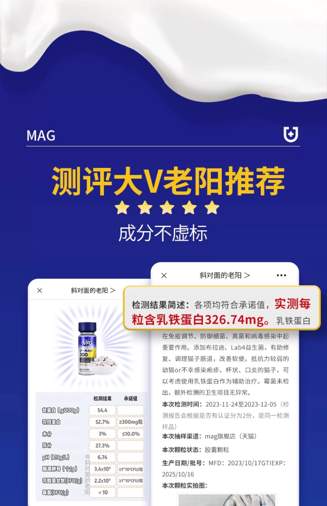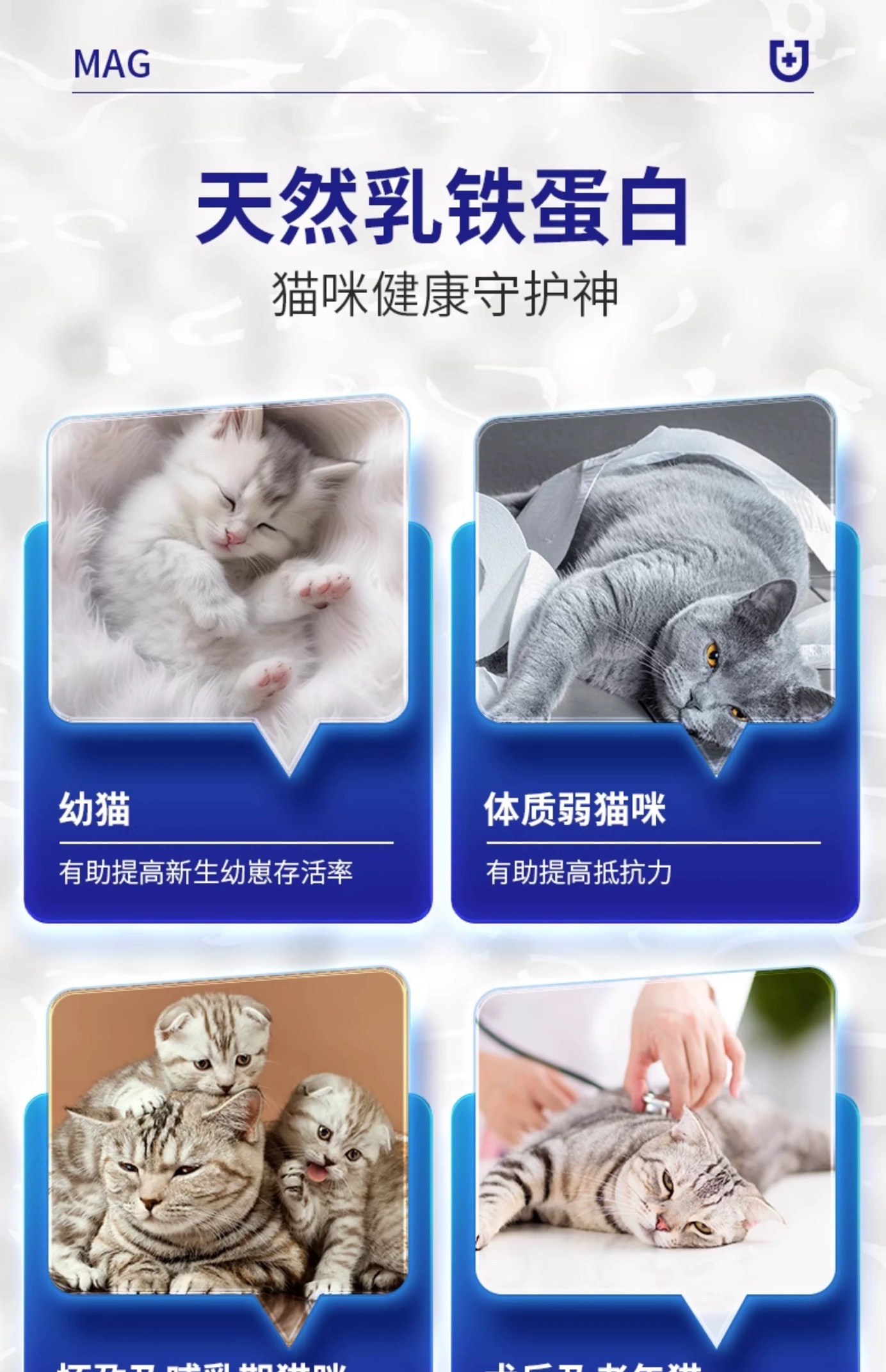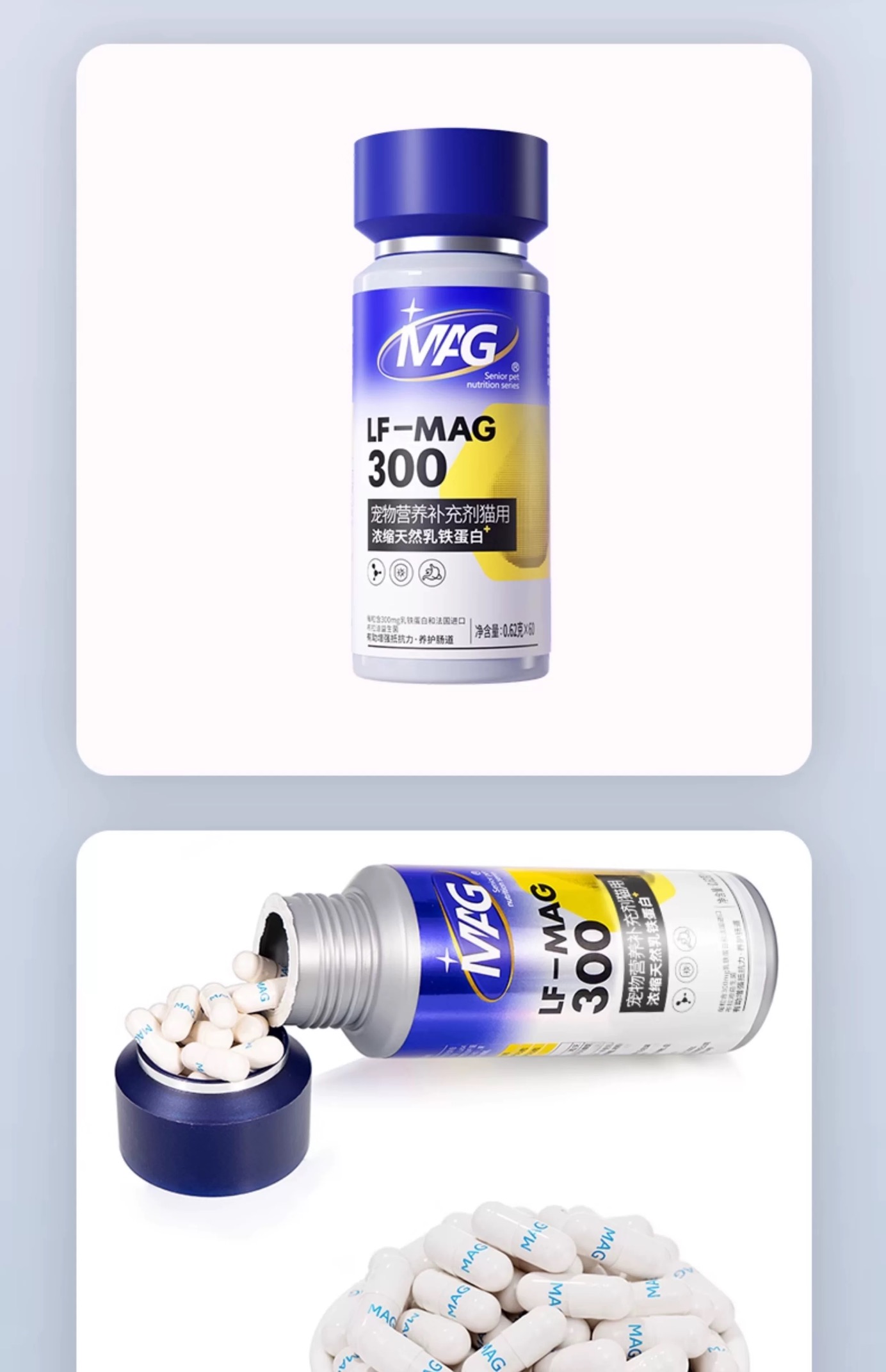 MAG浓缩天然乳铁蛋白 猫用 0乳糖 增强抵抗力 60粒/瓶