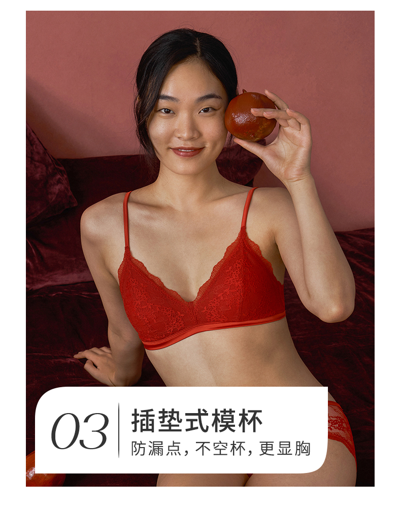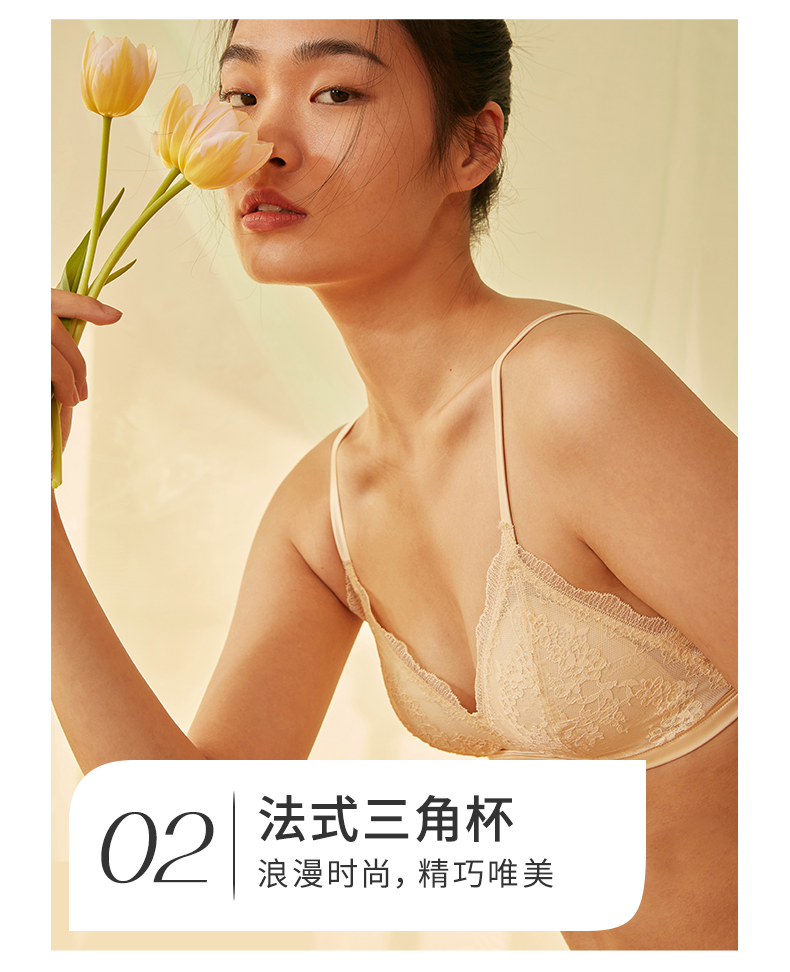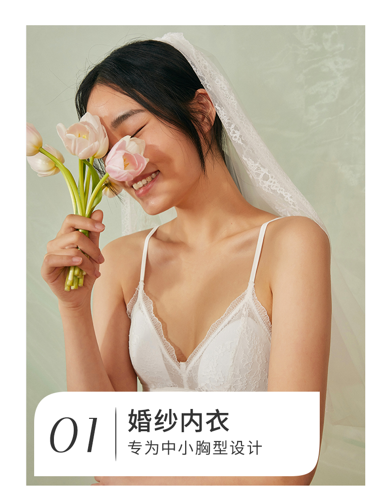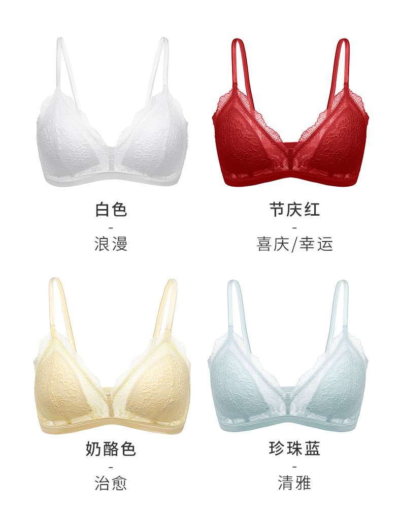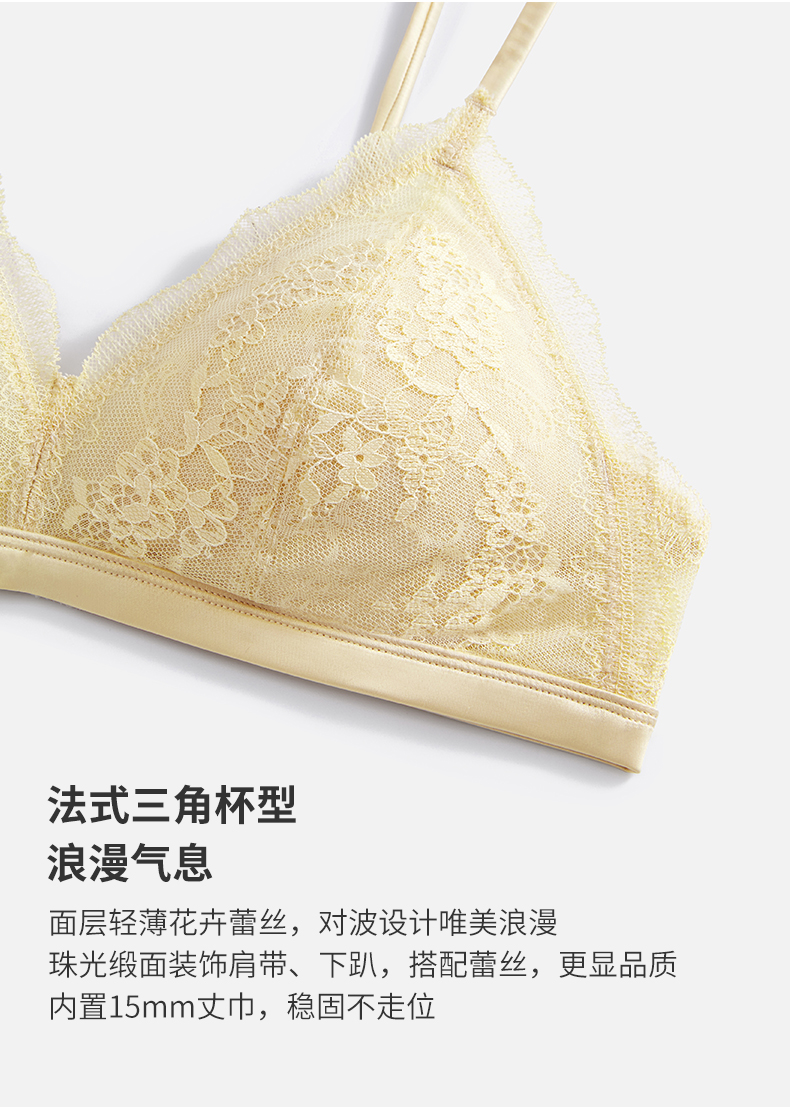HSIA遐 法式蕾丝内衣女中小胸三角杯bra结婚婚纱款无钢圈性感文胸