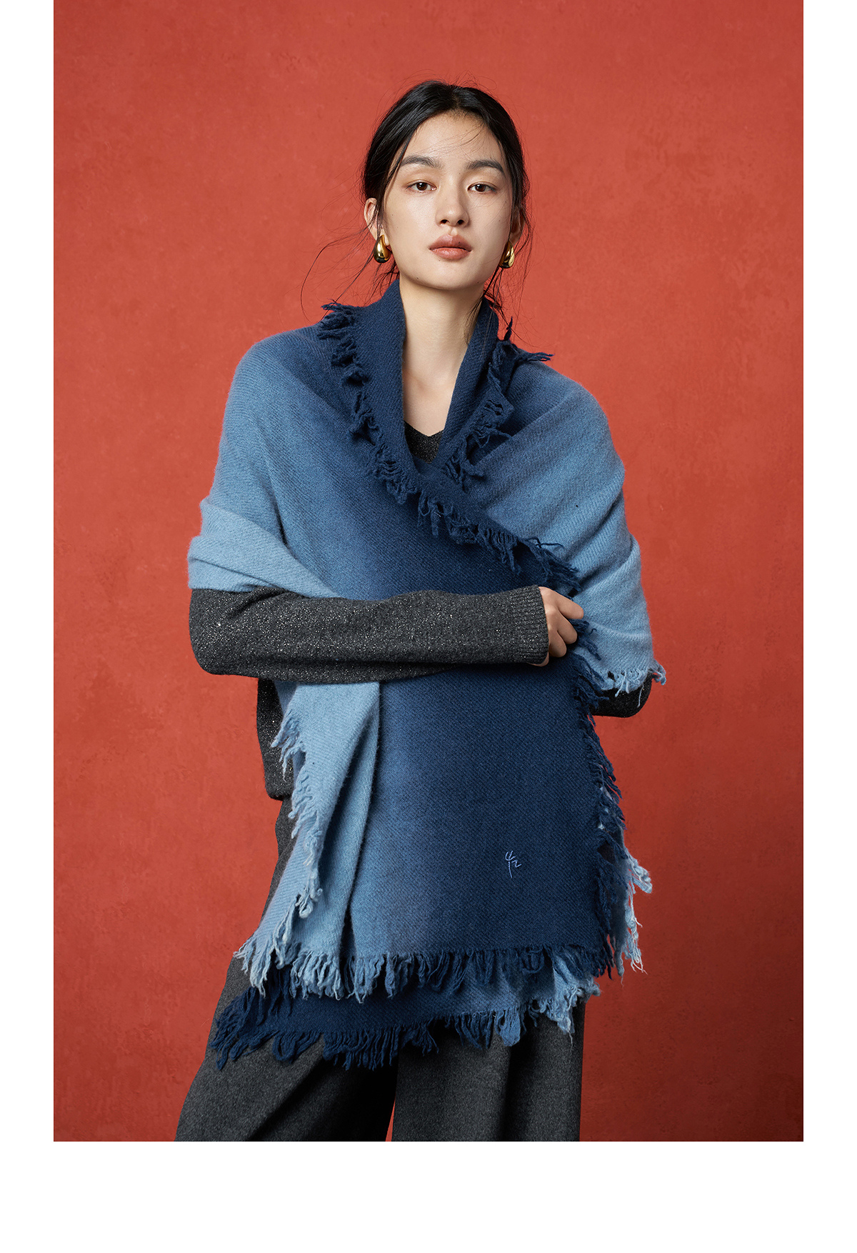 【林栖设计小店】植物染色|羊毛渐变披肩非遗手工2025秋冬新品流苏围巾女2954273
