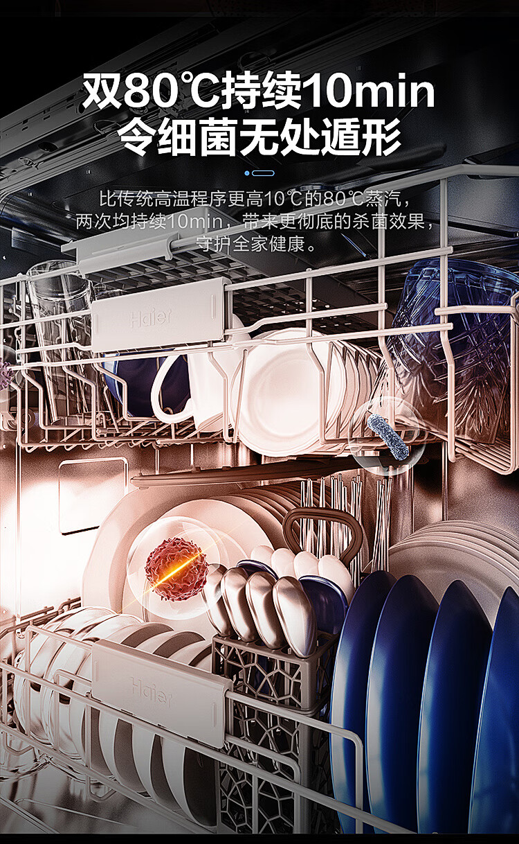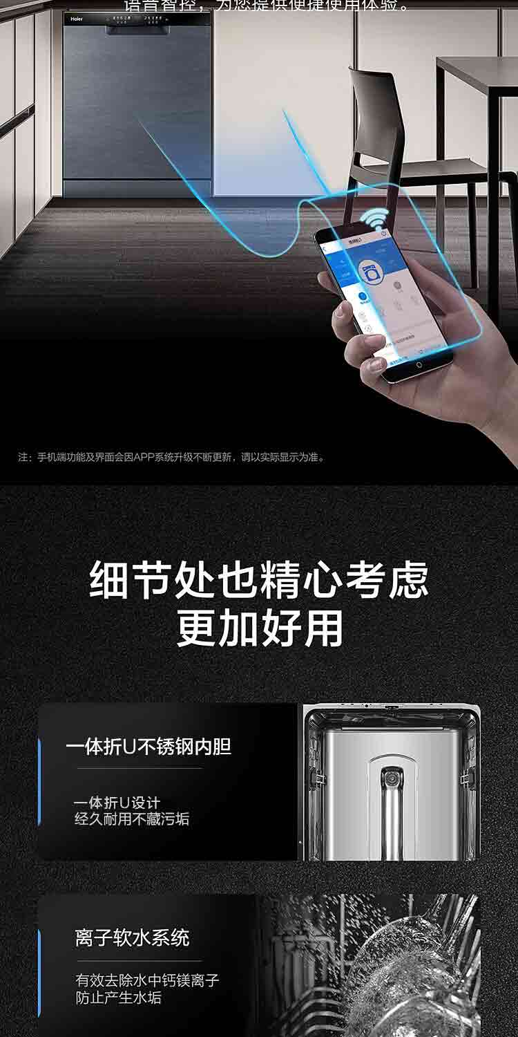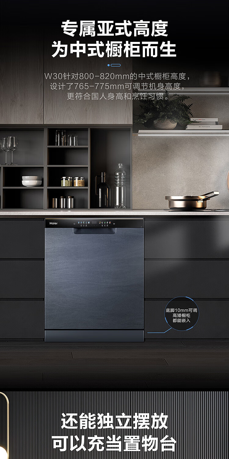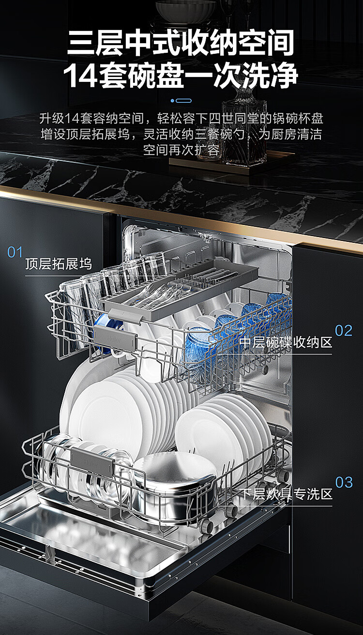 海尔(Haier)【朗境系列】14套嵌入式洗碗机W30 变频一级水效 升降碗篮 分区洗 智能开门速干 EYBW142286GGU1