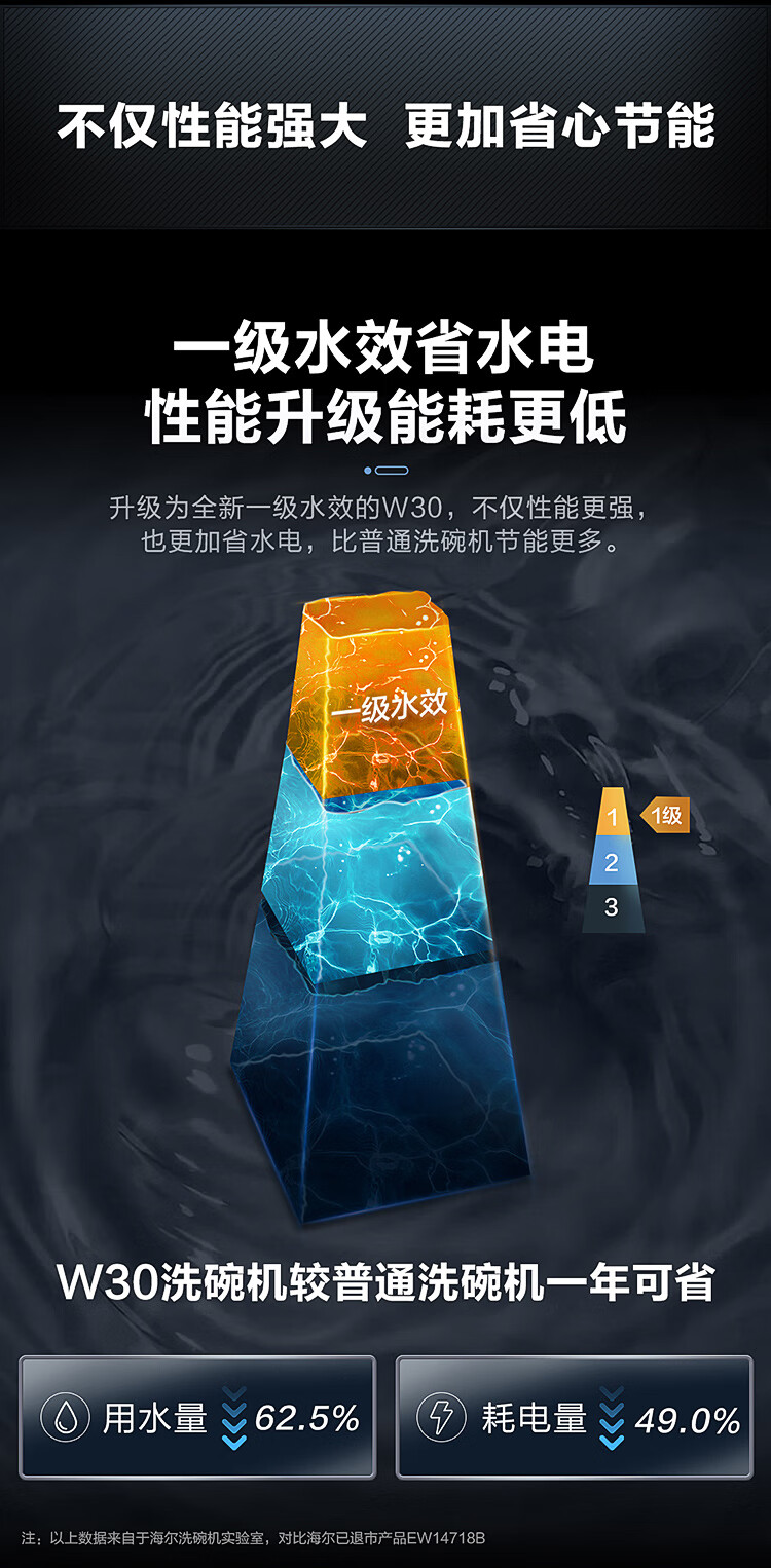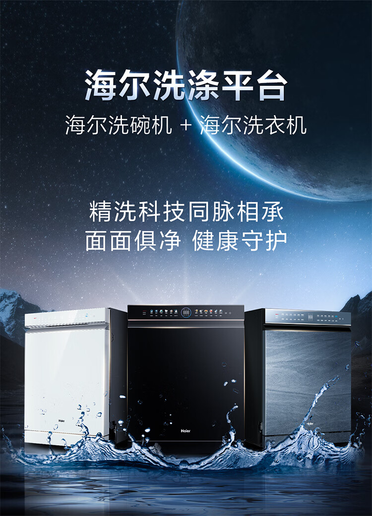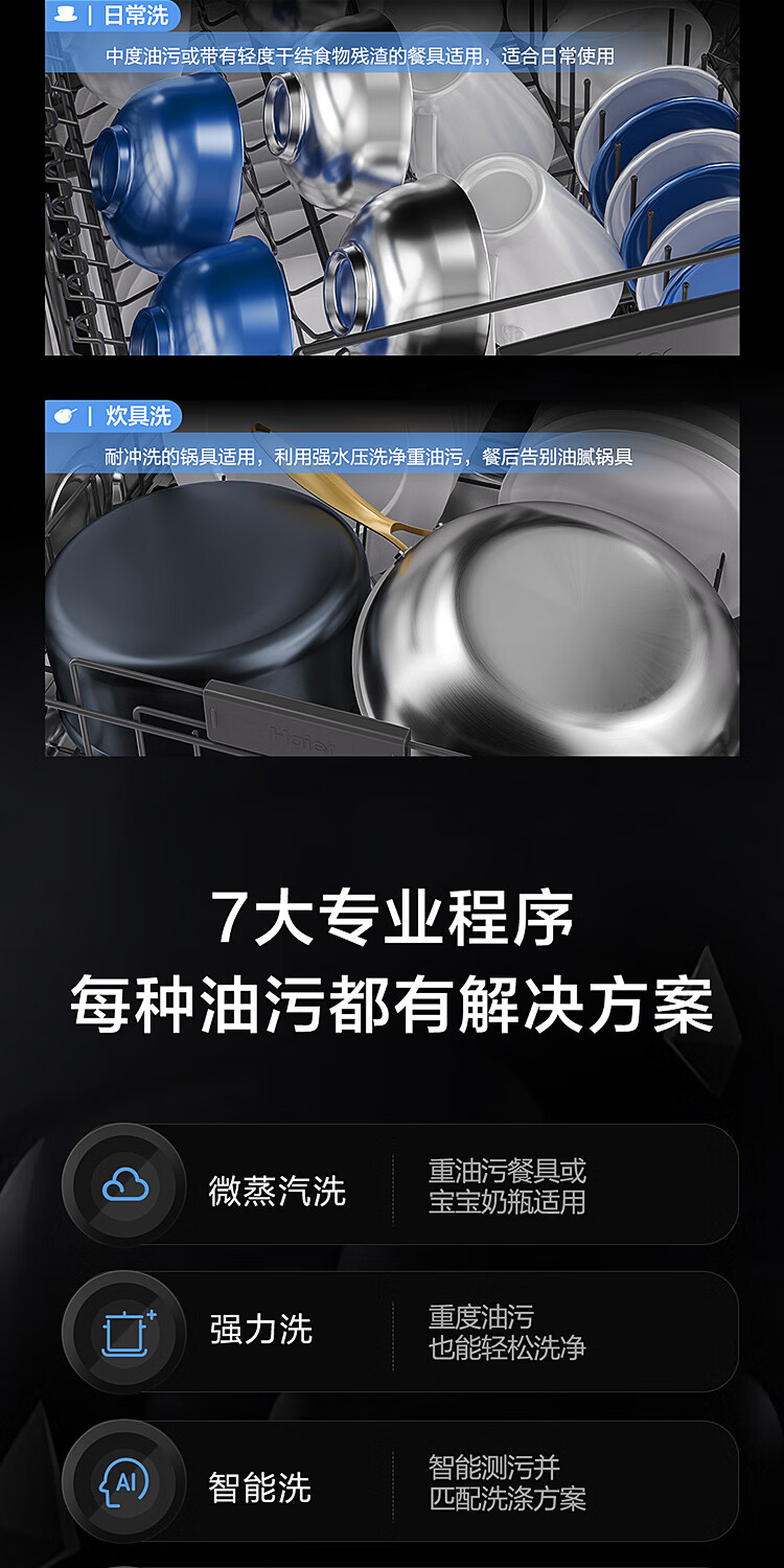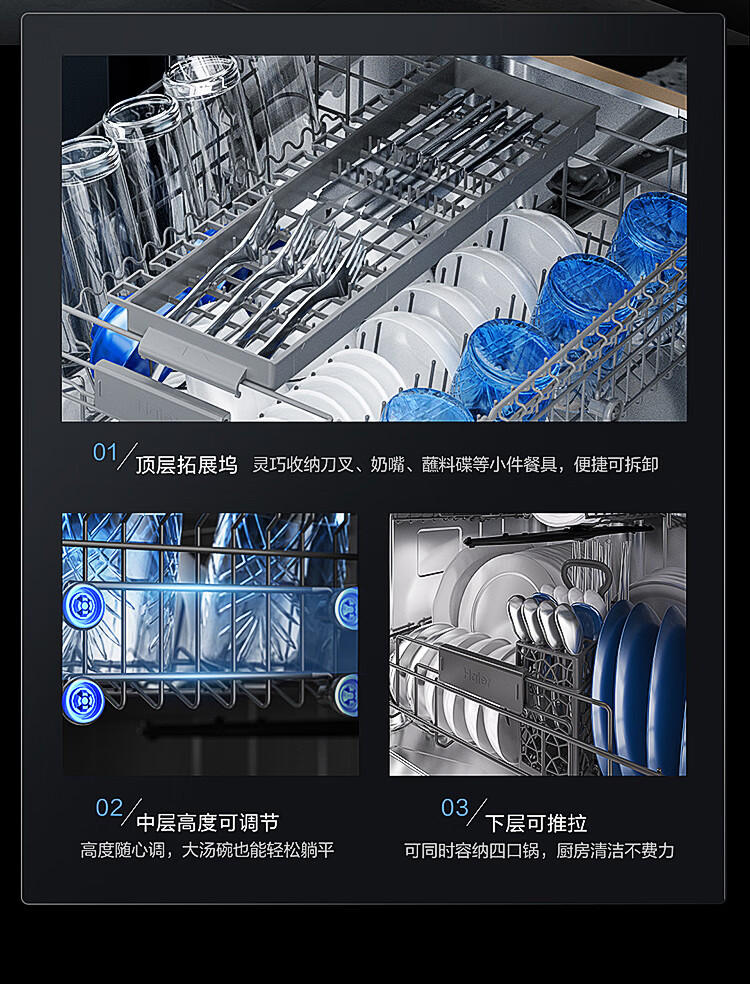 海尔(Haier)【朗境系列】14套嵌入式洗碗机W30 变频一级水效 升降碗篮 分区洗 智能开门速干 EYBW142286GGU1