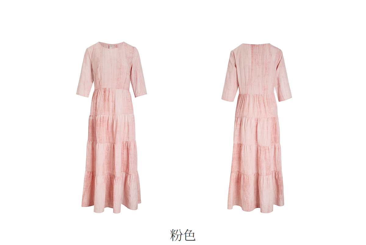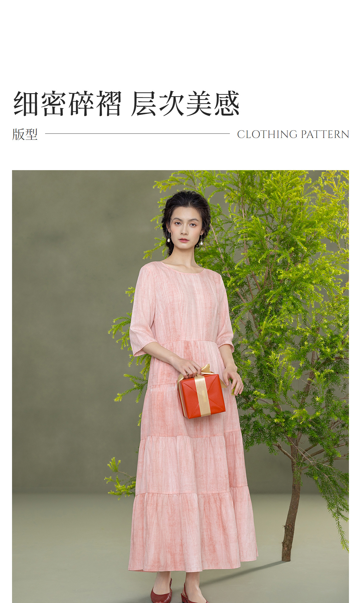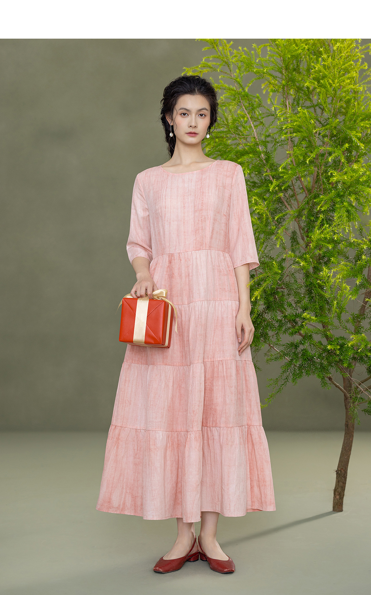 [【林栖设计小店】粉海云霓|粉色印花宽松显瘦层次感2026早春新品连衣裙1961253