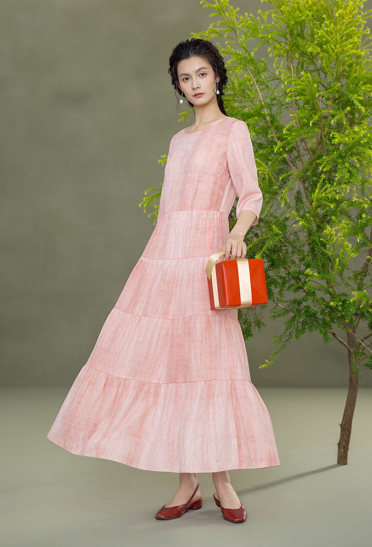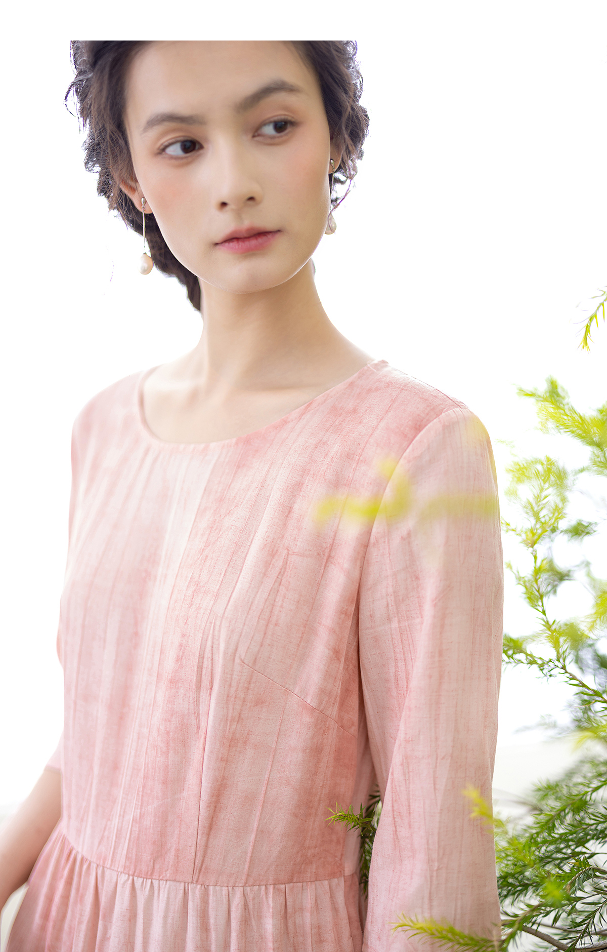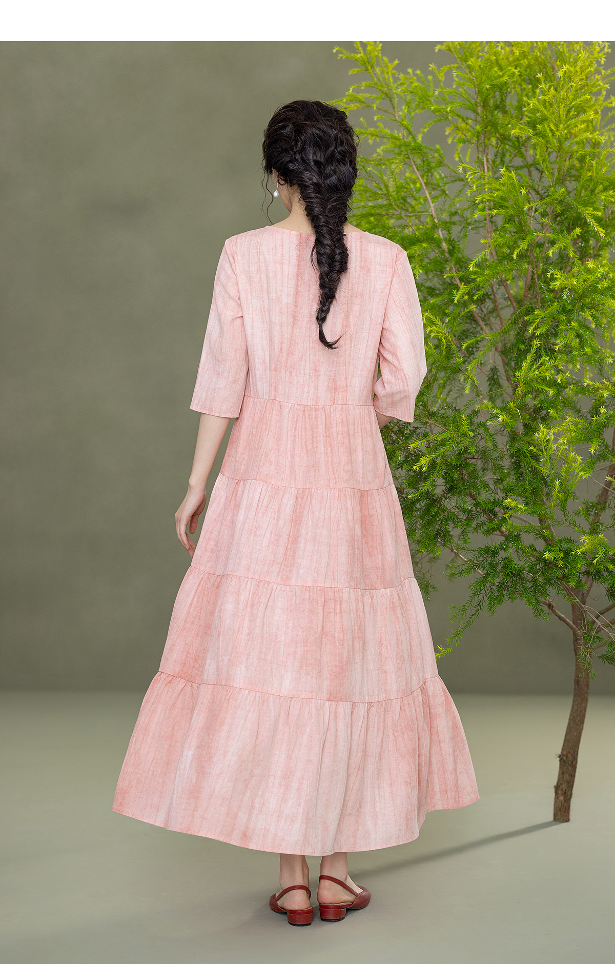 [【林栖设计小店】粉海云霓|粉色印花宽松显瘦层次感2026早春新品连衣裙1961253