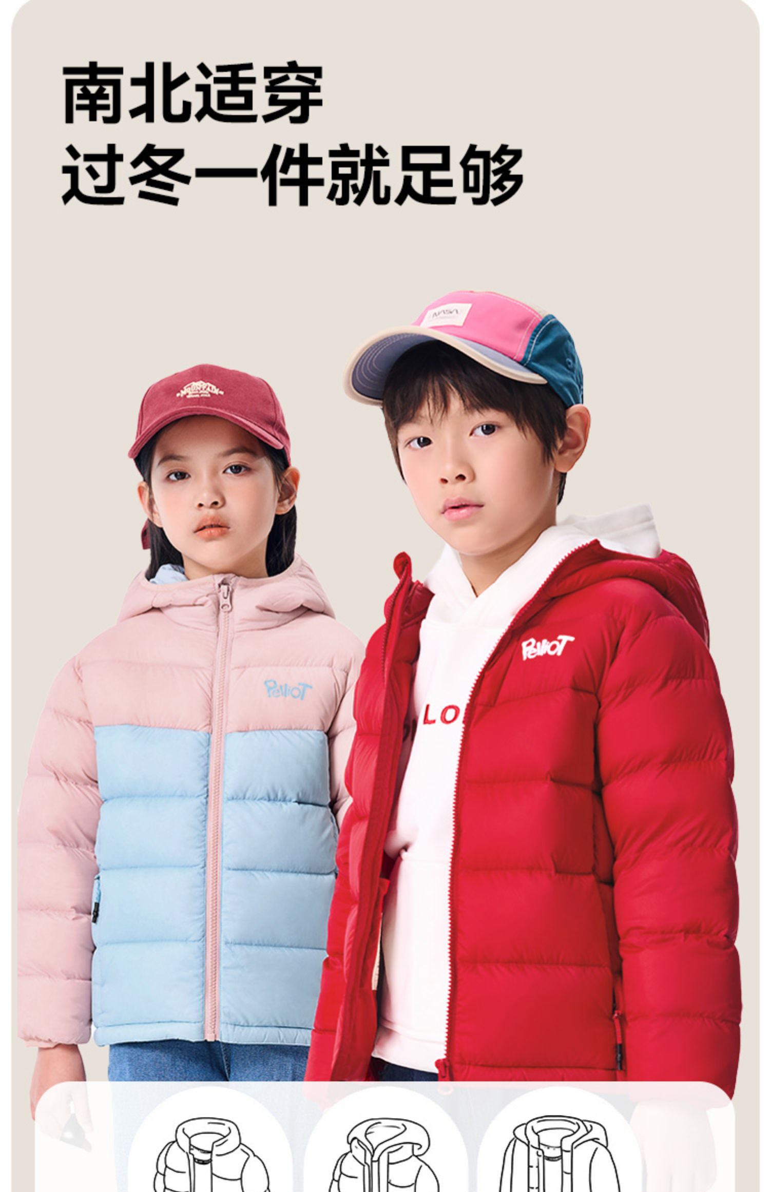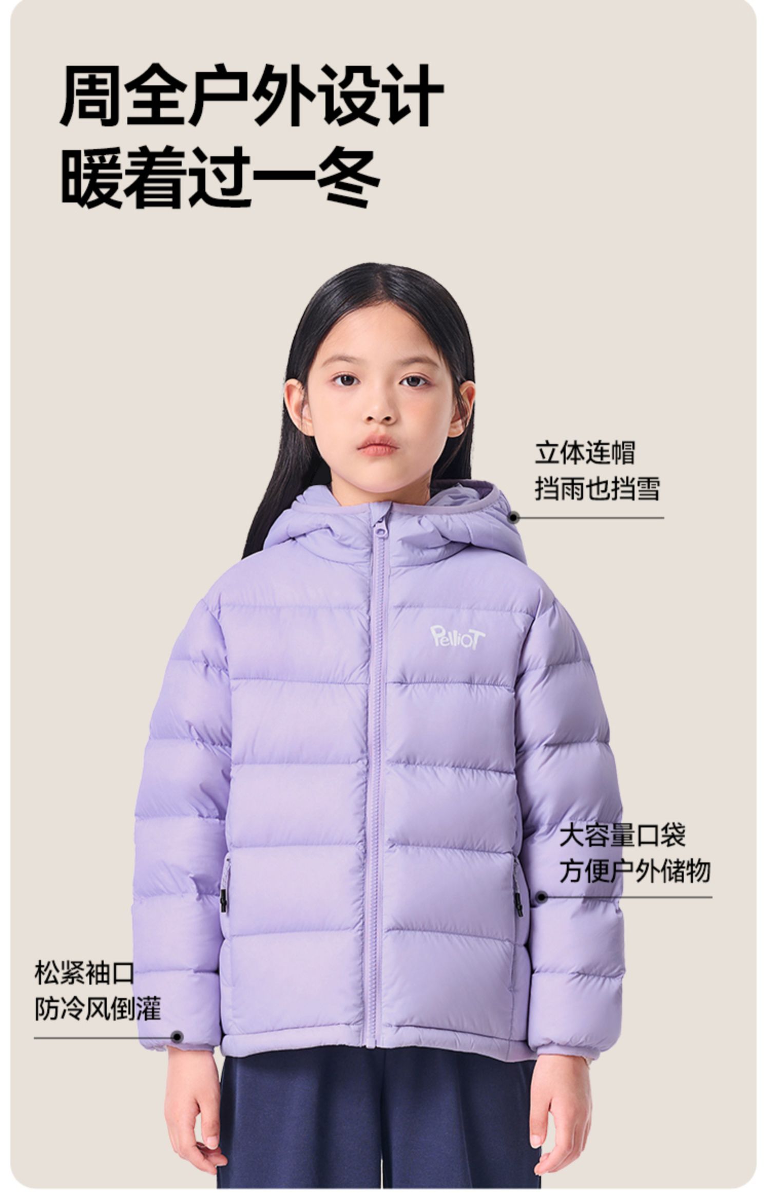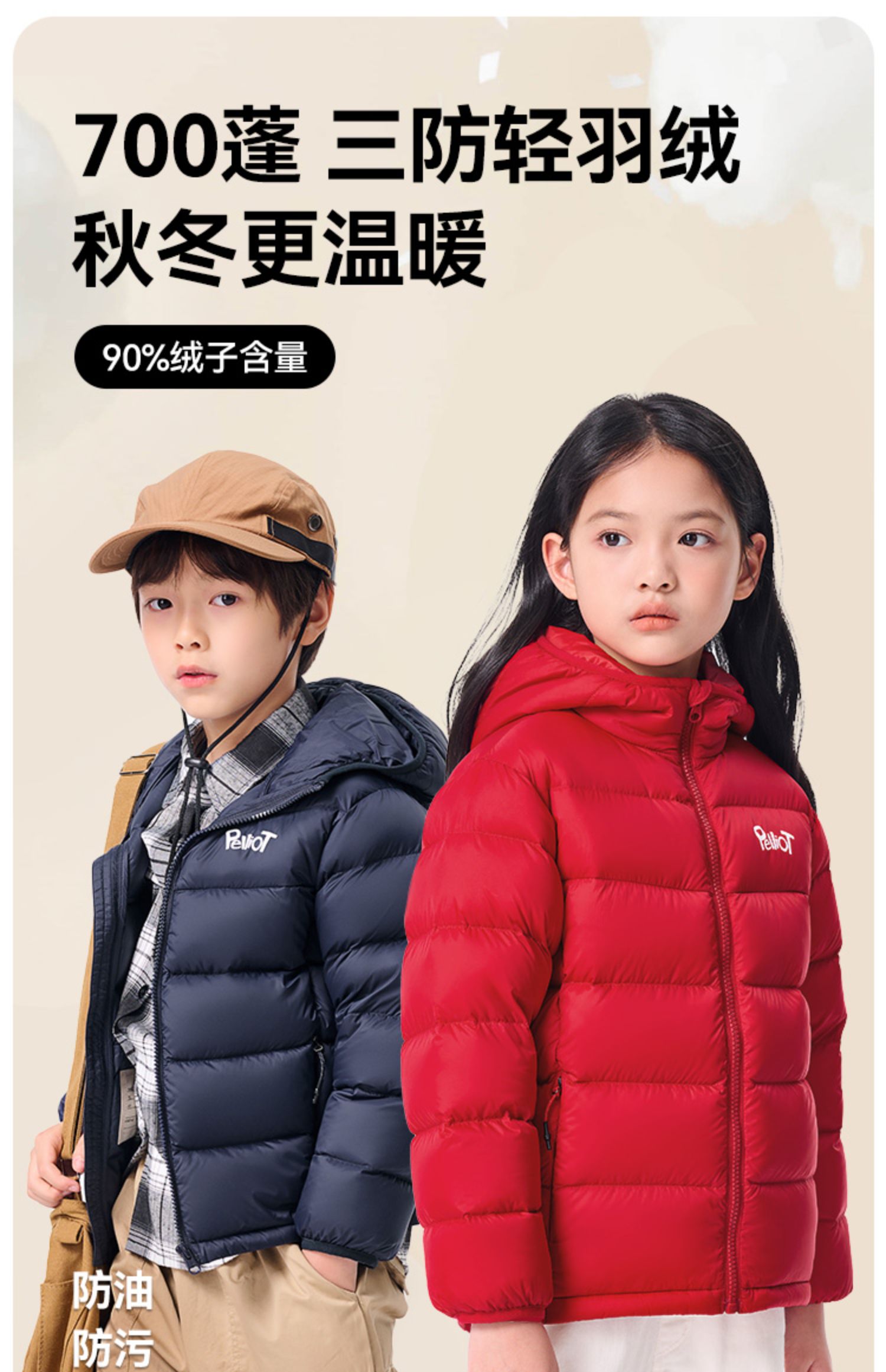 伯希和儿童羽绒服2023秋冬新男童户外防水羽绒衣女童保暖连帽外套113340840
