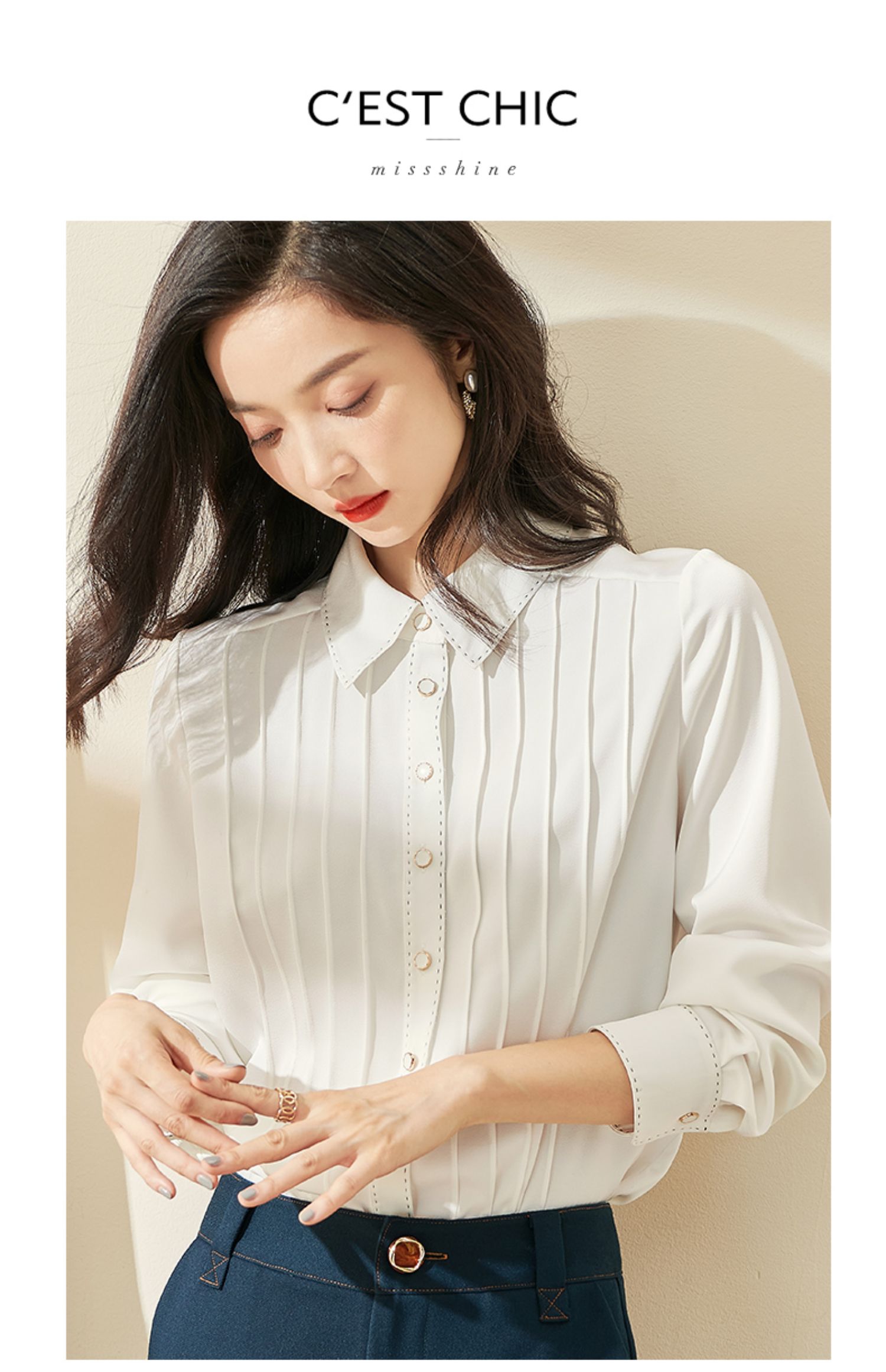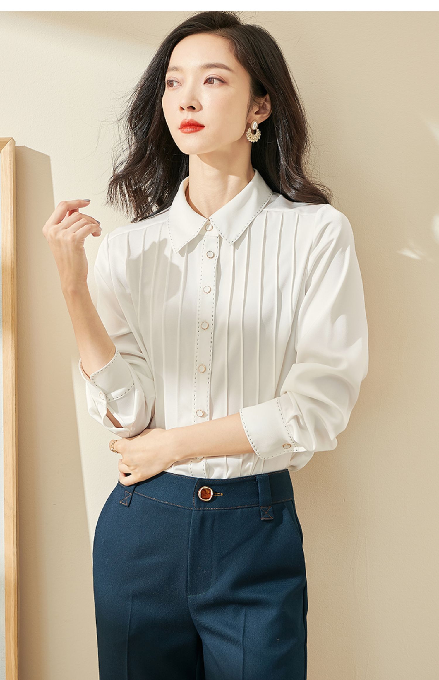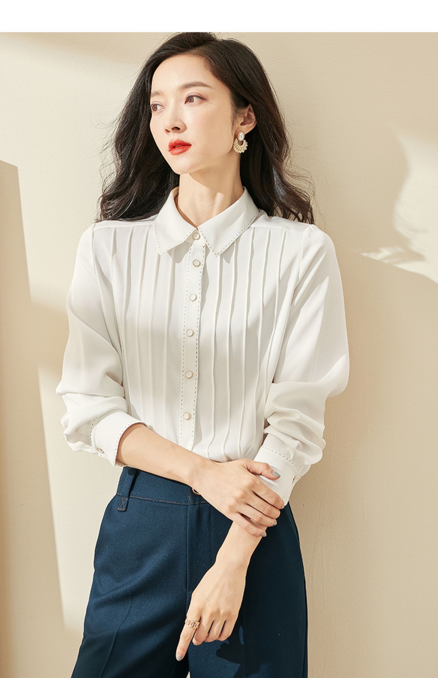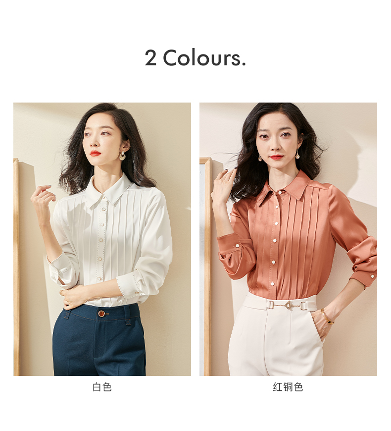 剩XL 米思阳2024秋季新款优雅气质宽松通勤衬衫牙签褶撞色珠边上衣0058