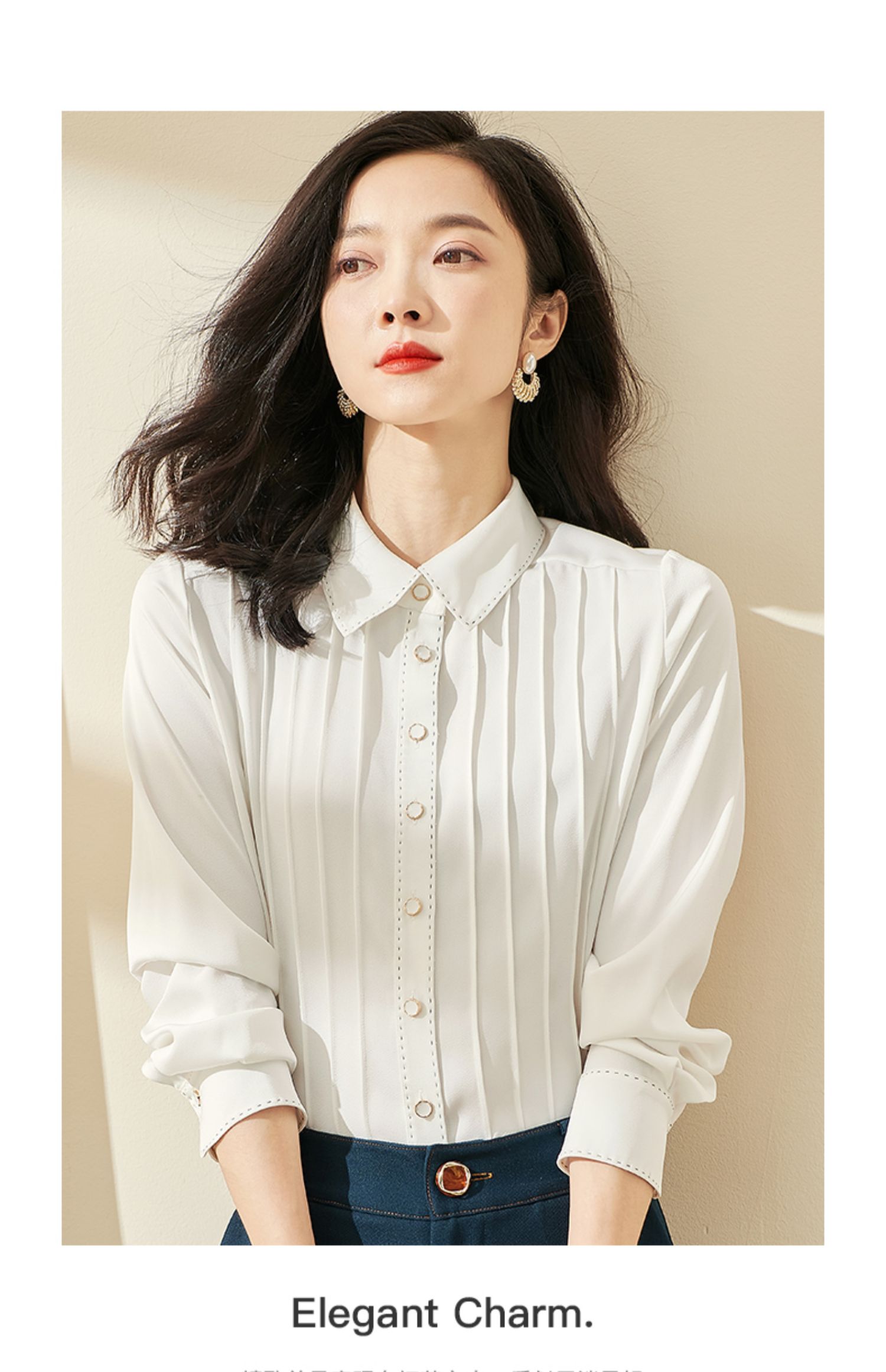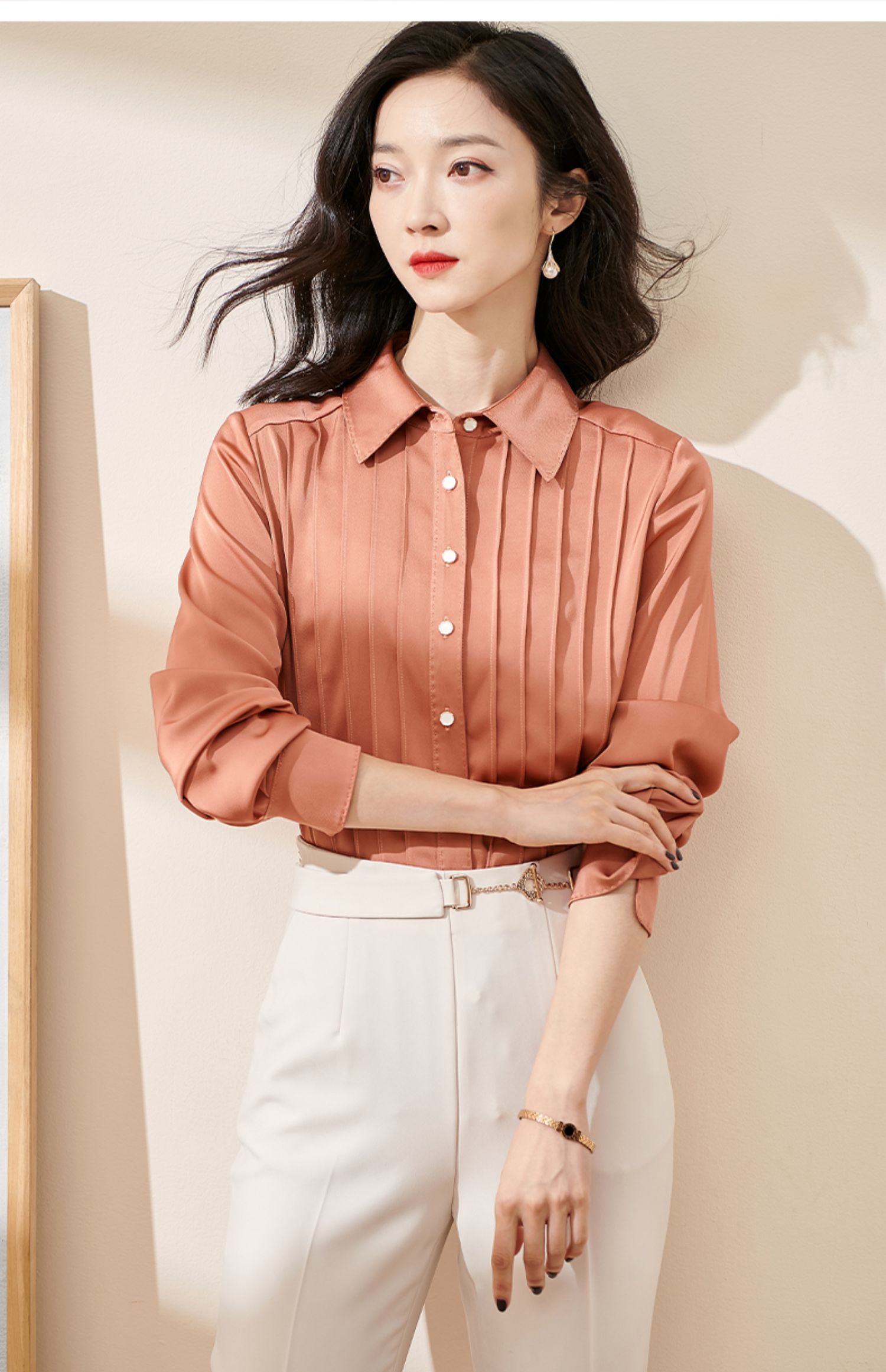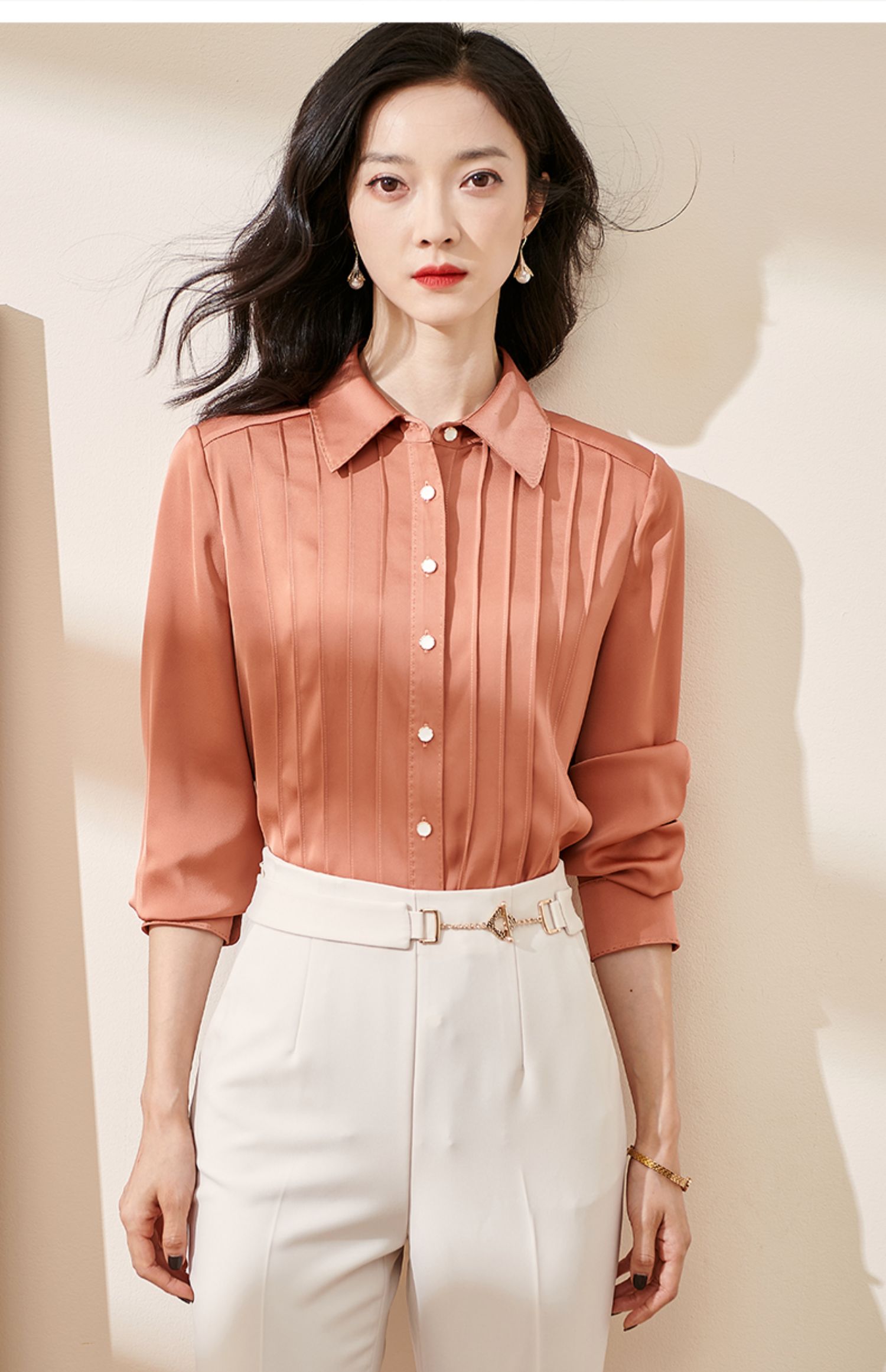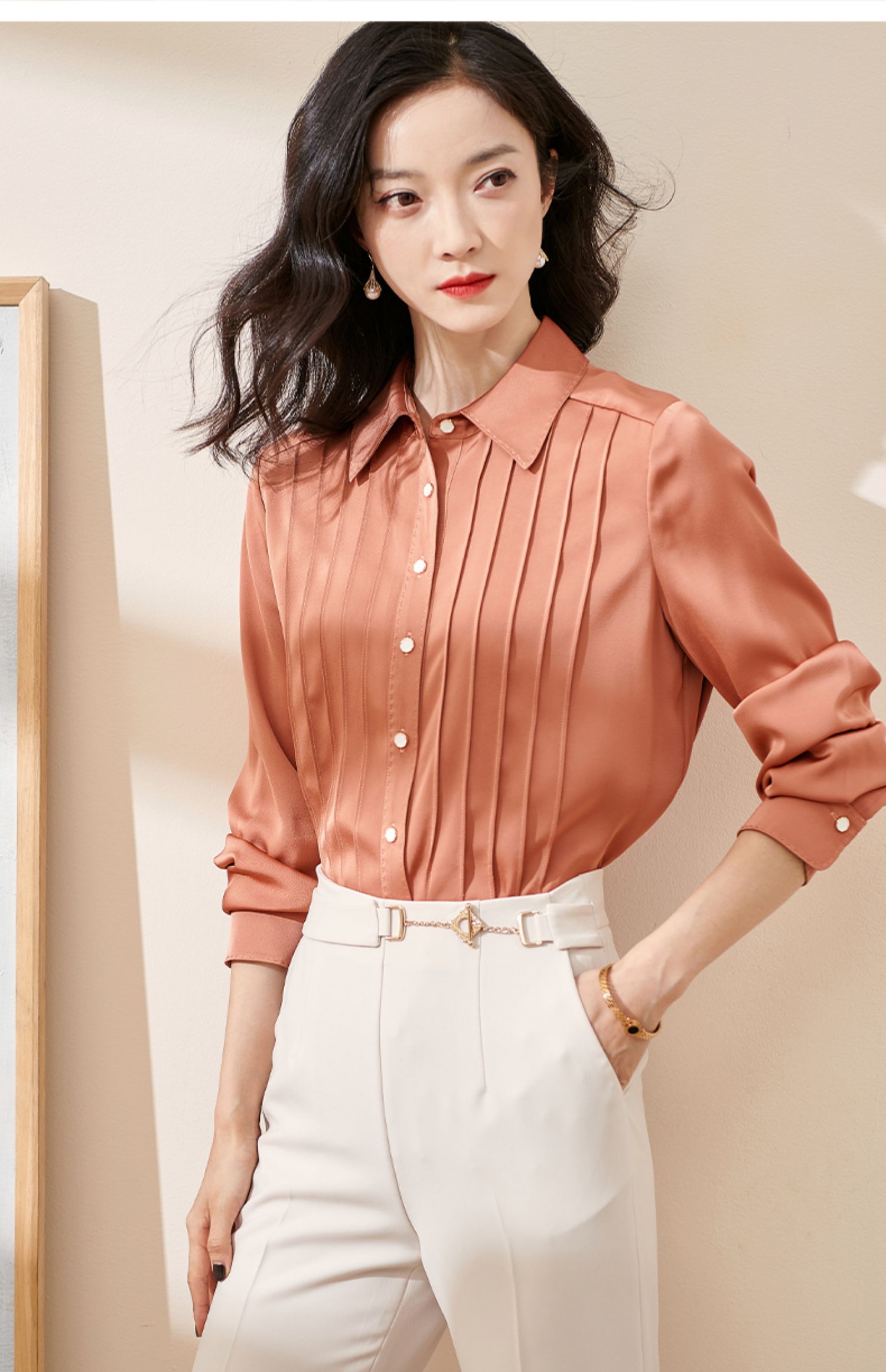 剩XL 米思阳2024秋季新款优雅气质宽松通勤衬衫牙签褶撞色珠边上衣0058
