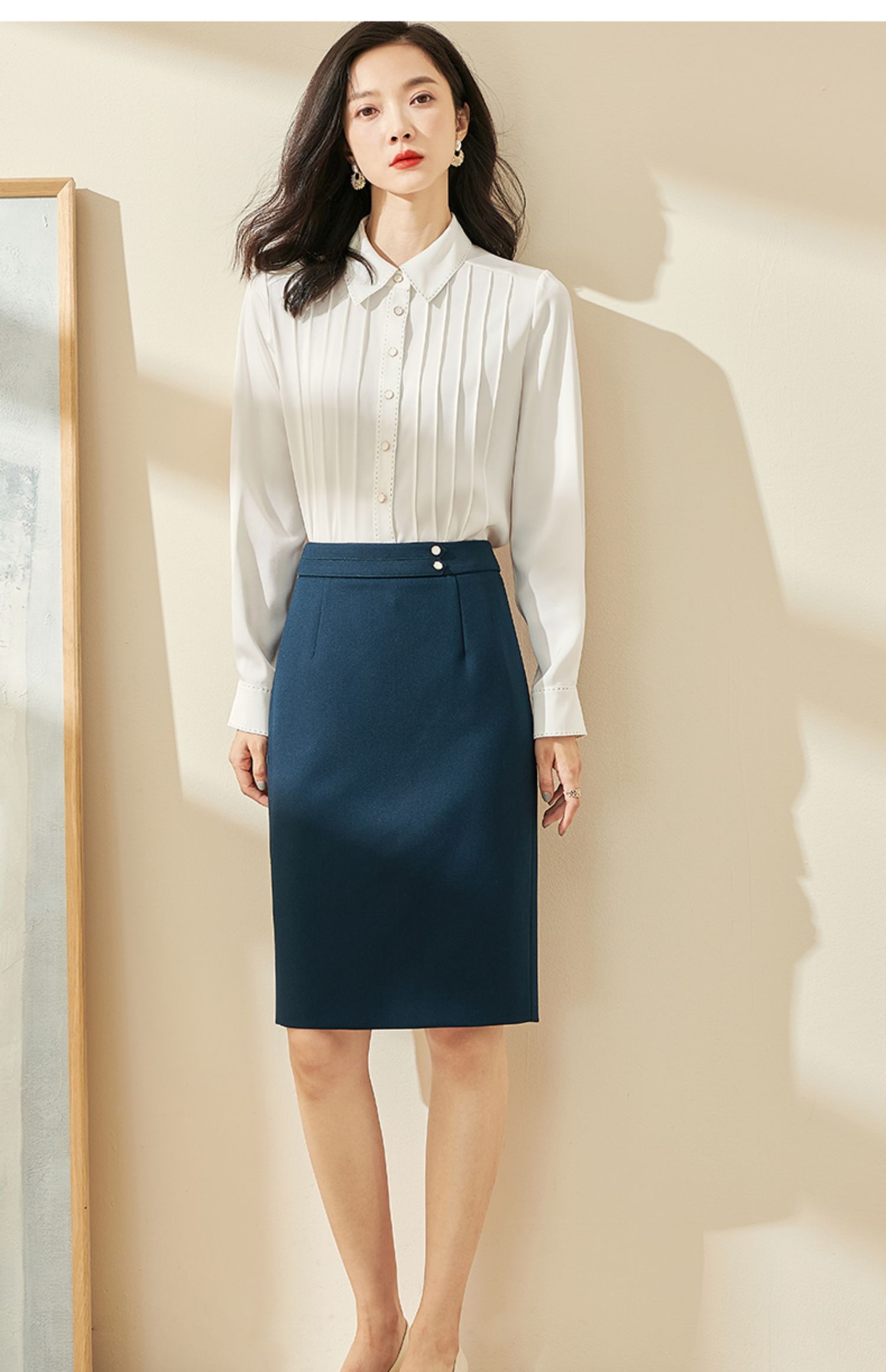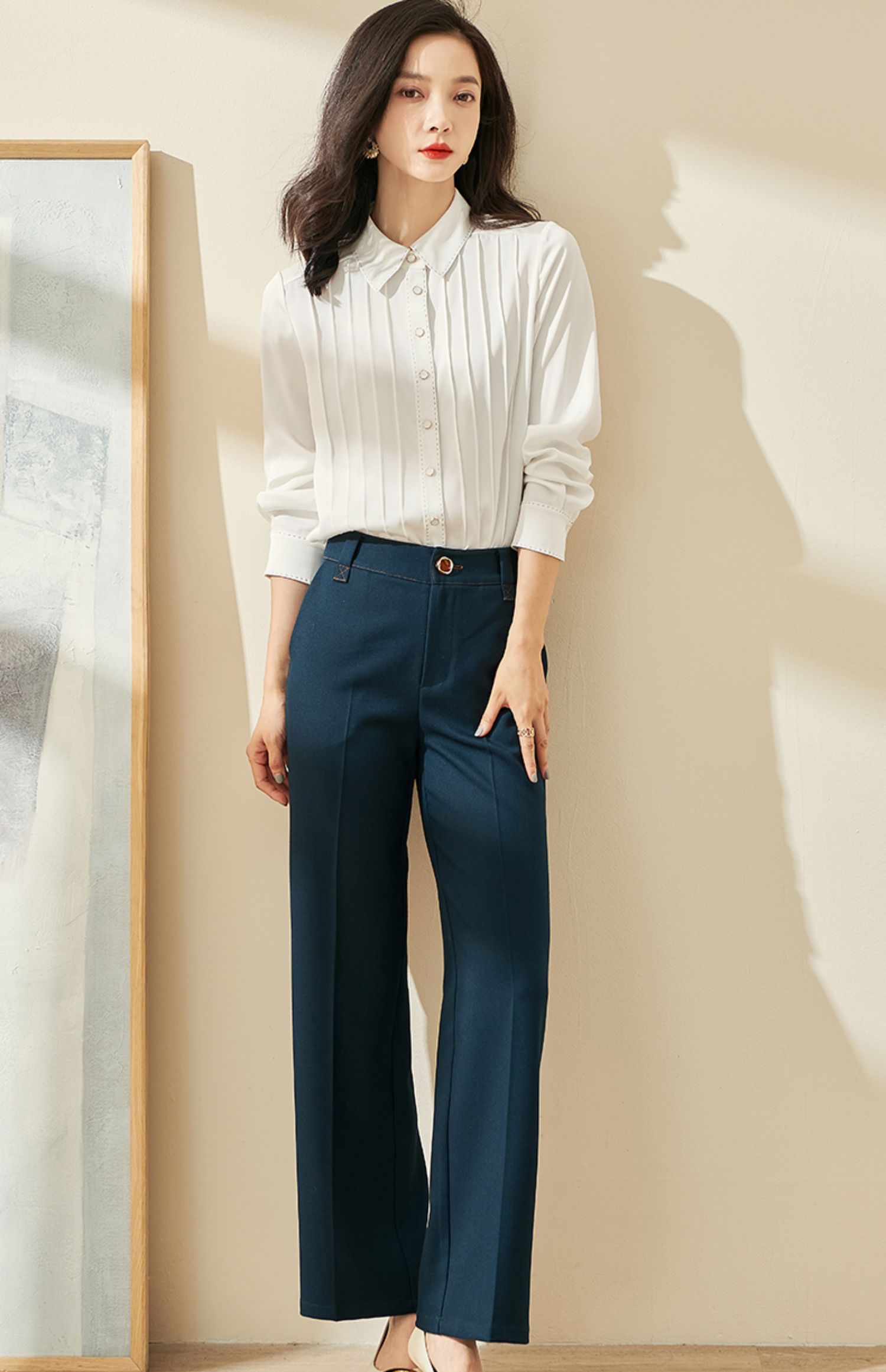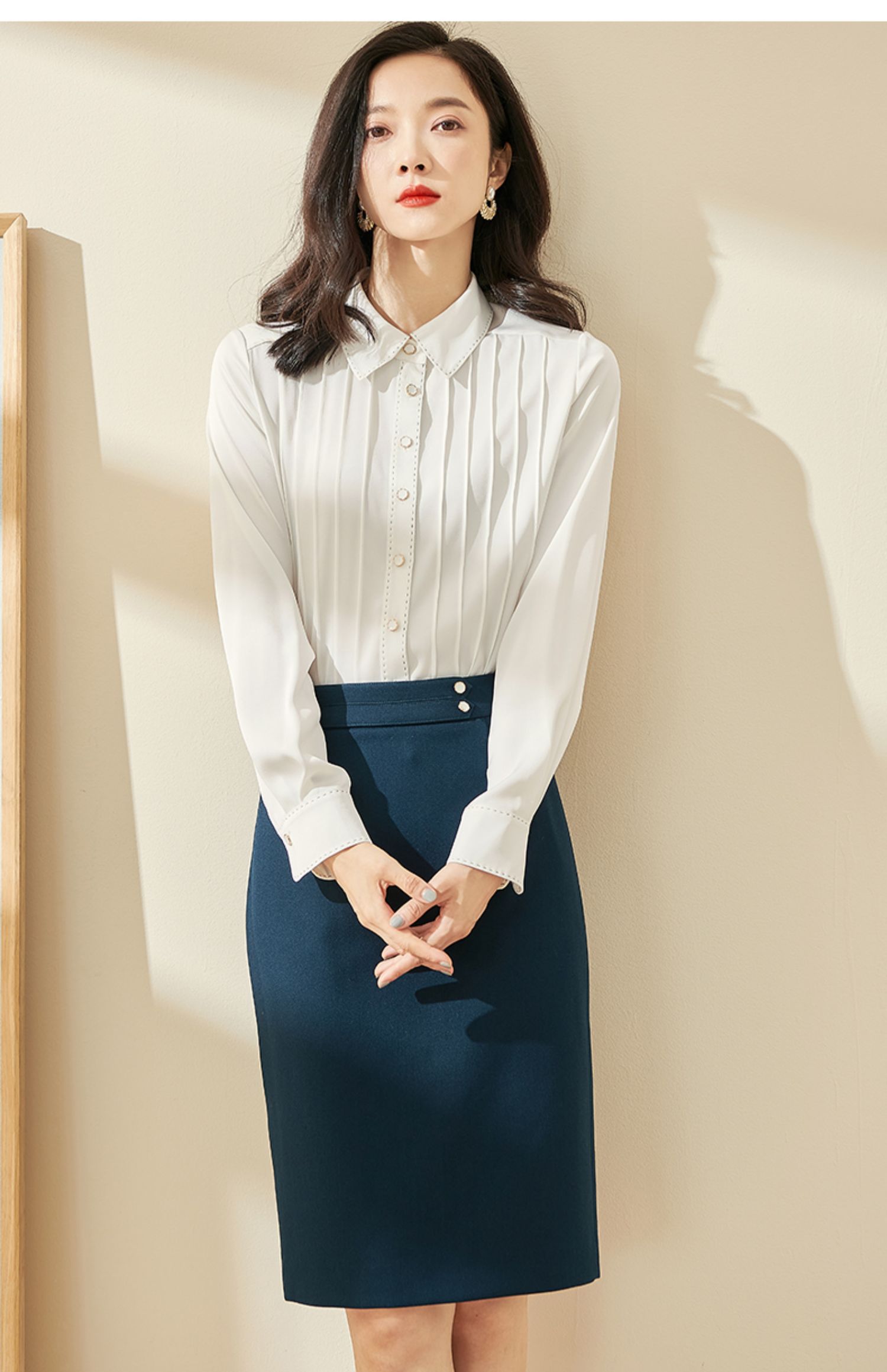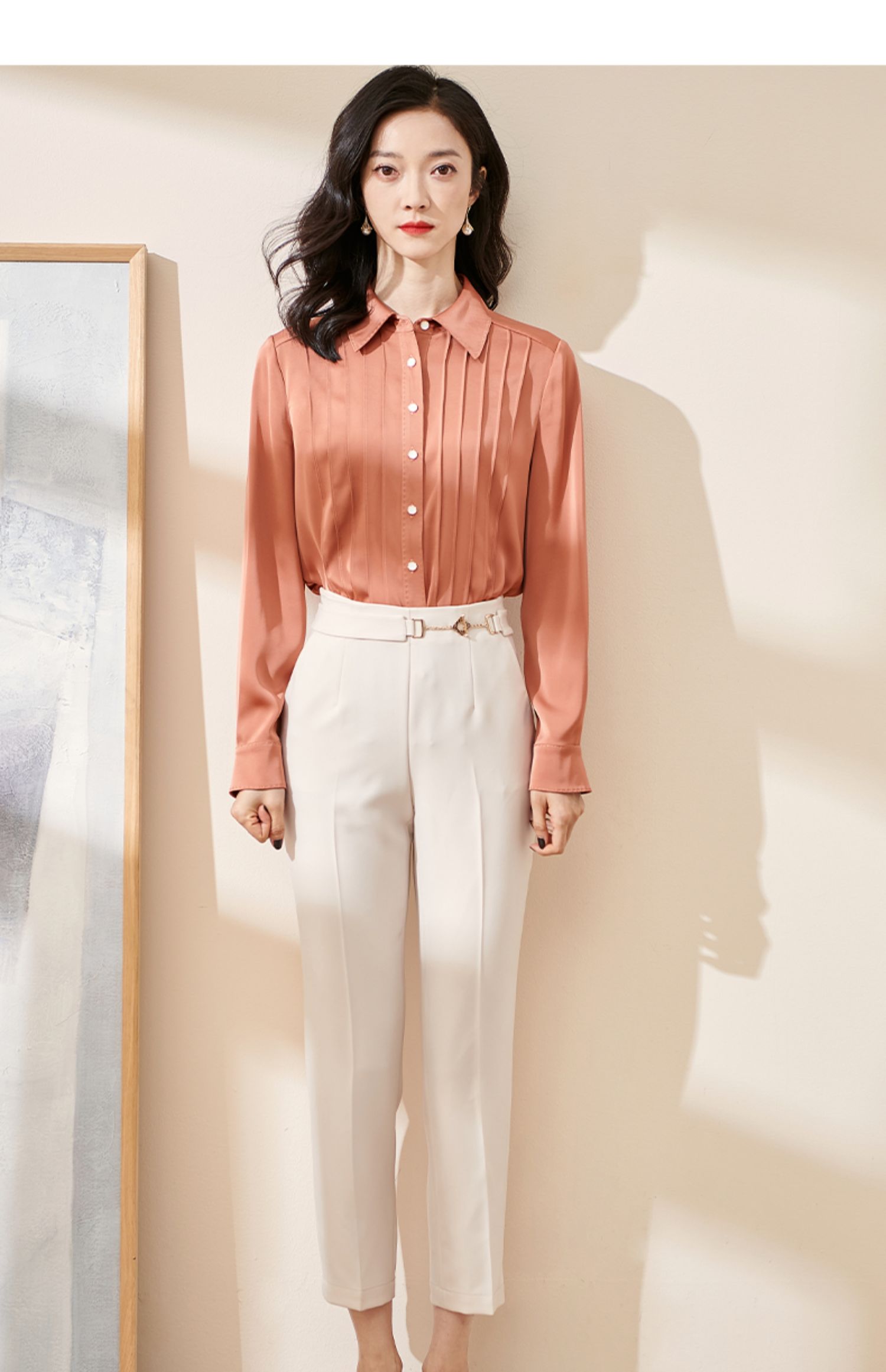 剩XL 米思阳2024秋季新款优雅气质宽松通勤衬衫牙签褶撞色珠边上衣0058