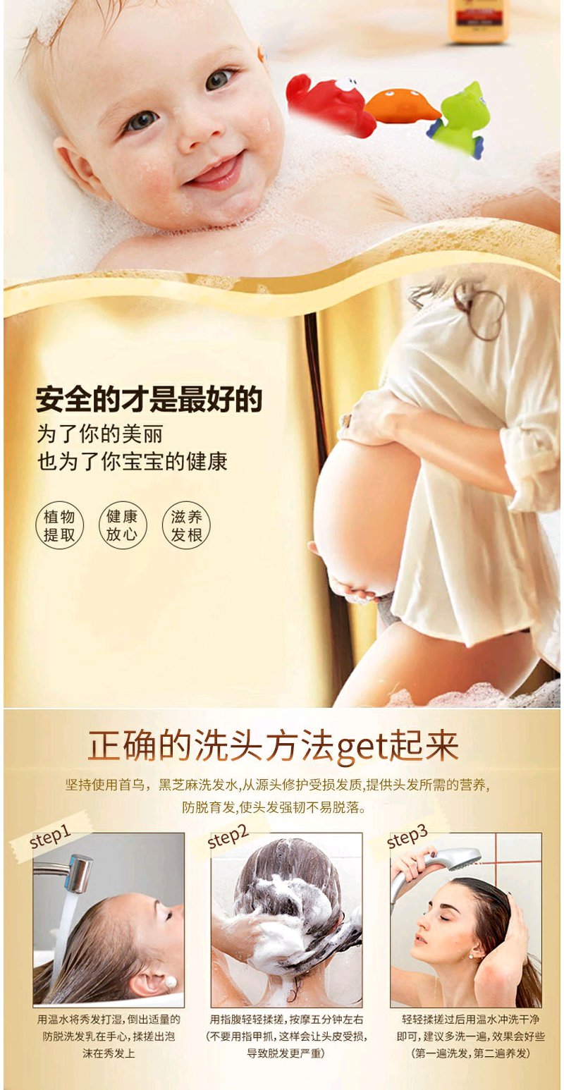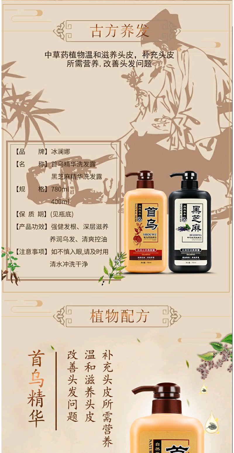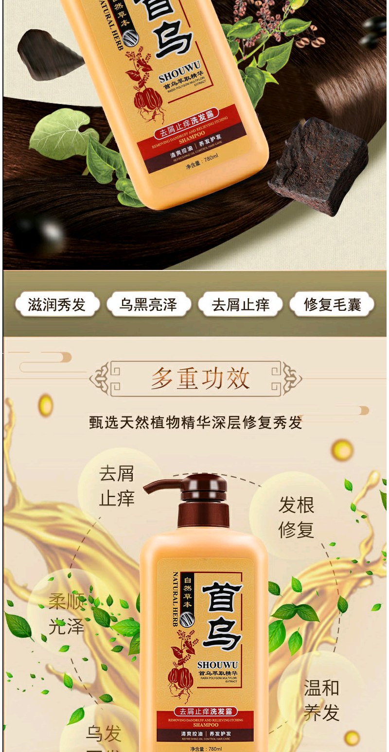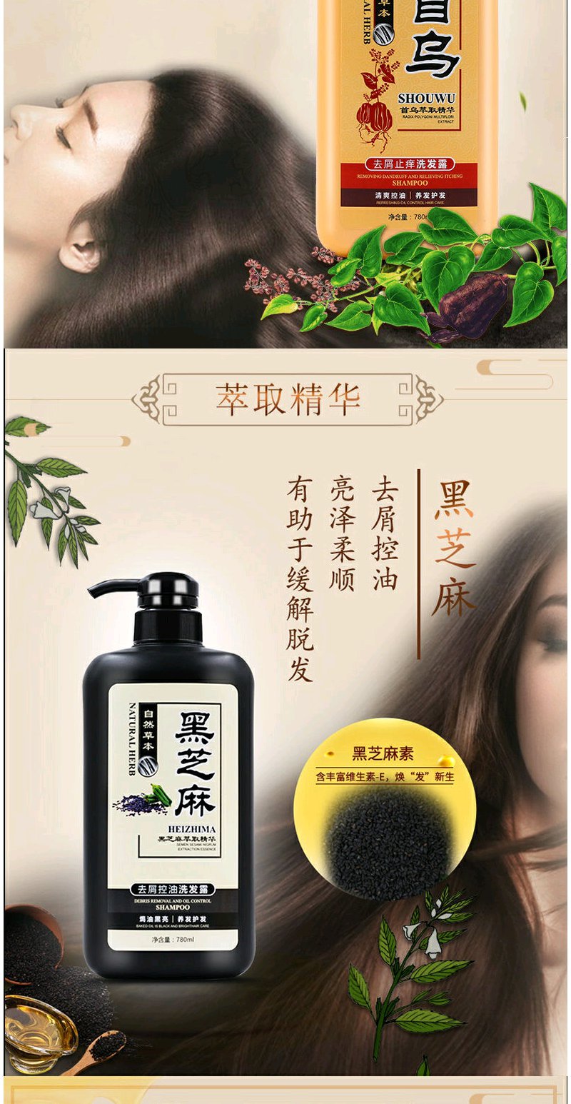 首乌洗发水去屑控油去油密发洗发露 黑芝麻洗发水