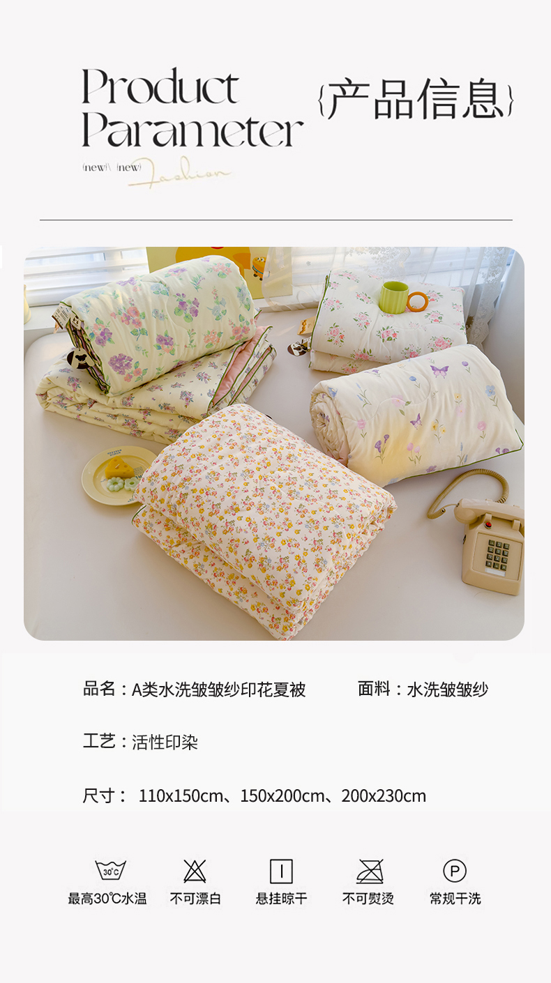 A类泡泡纱夏凉被、舒适体感、皱皱沙亲肤夏被——