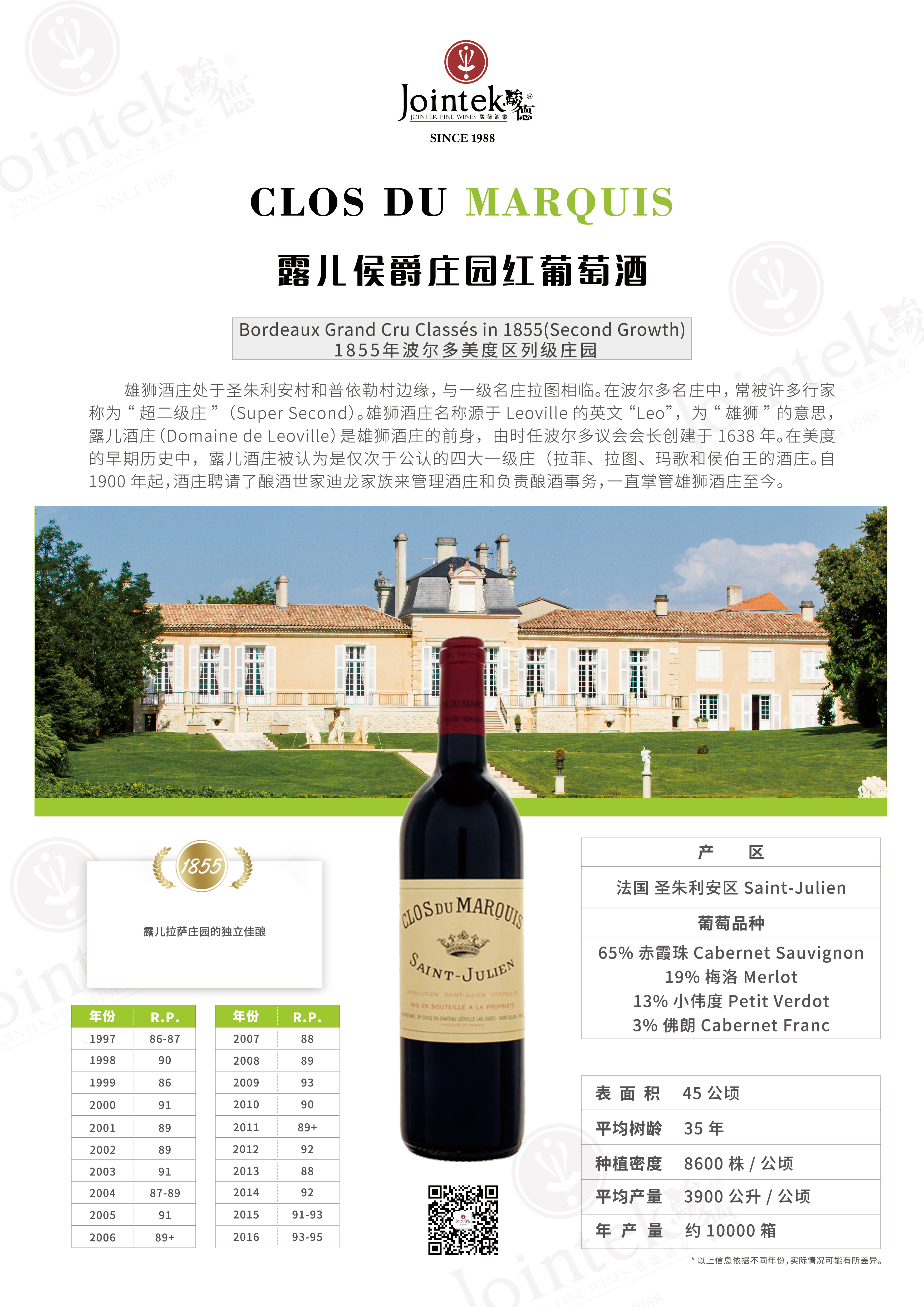 2013 露儿侯爵(侯爵园)庄园红葡萄酒 Clos du Marquis 750ml