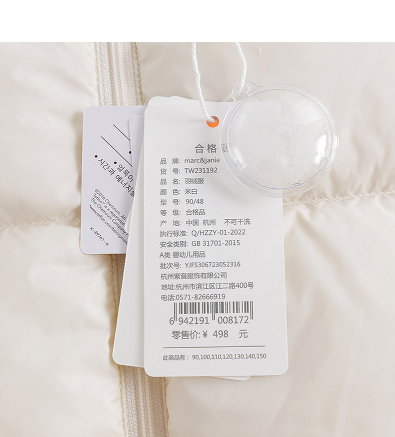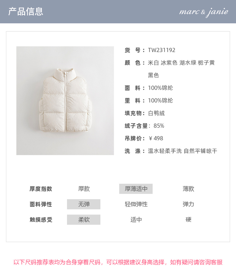 【三防】马克珍妮秋冬新款男女童超轻加厚面包服羽绒服马甲231192