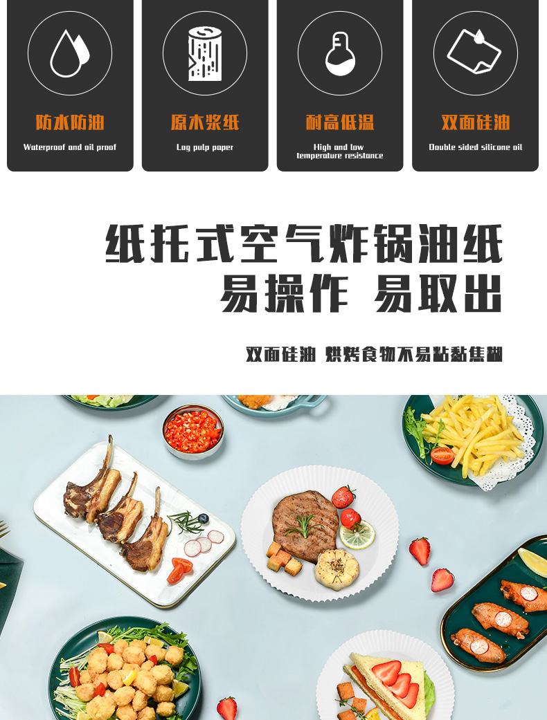 空气炸锅专用油纸 50入 纸托方形和圆形 薯条烧烤家用烘焙垫纸