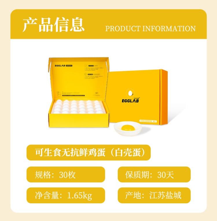艾戈兰博可生食无抗白壳蛋30枚