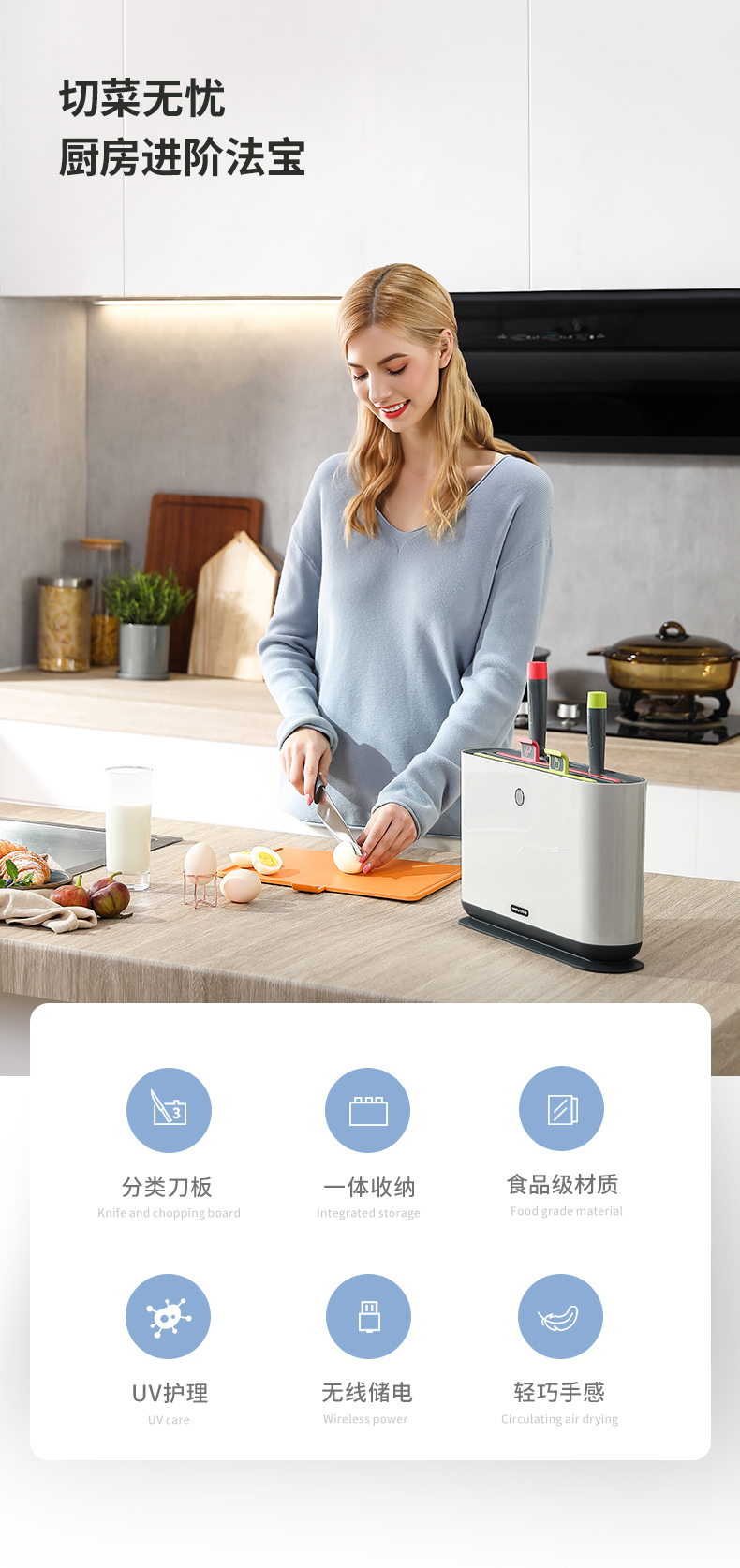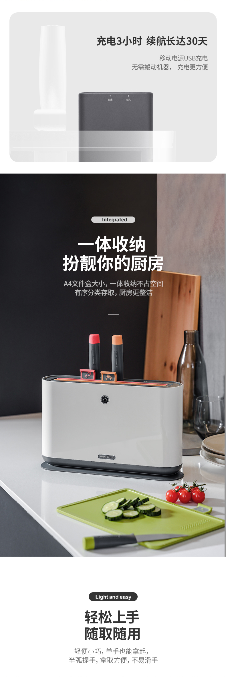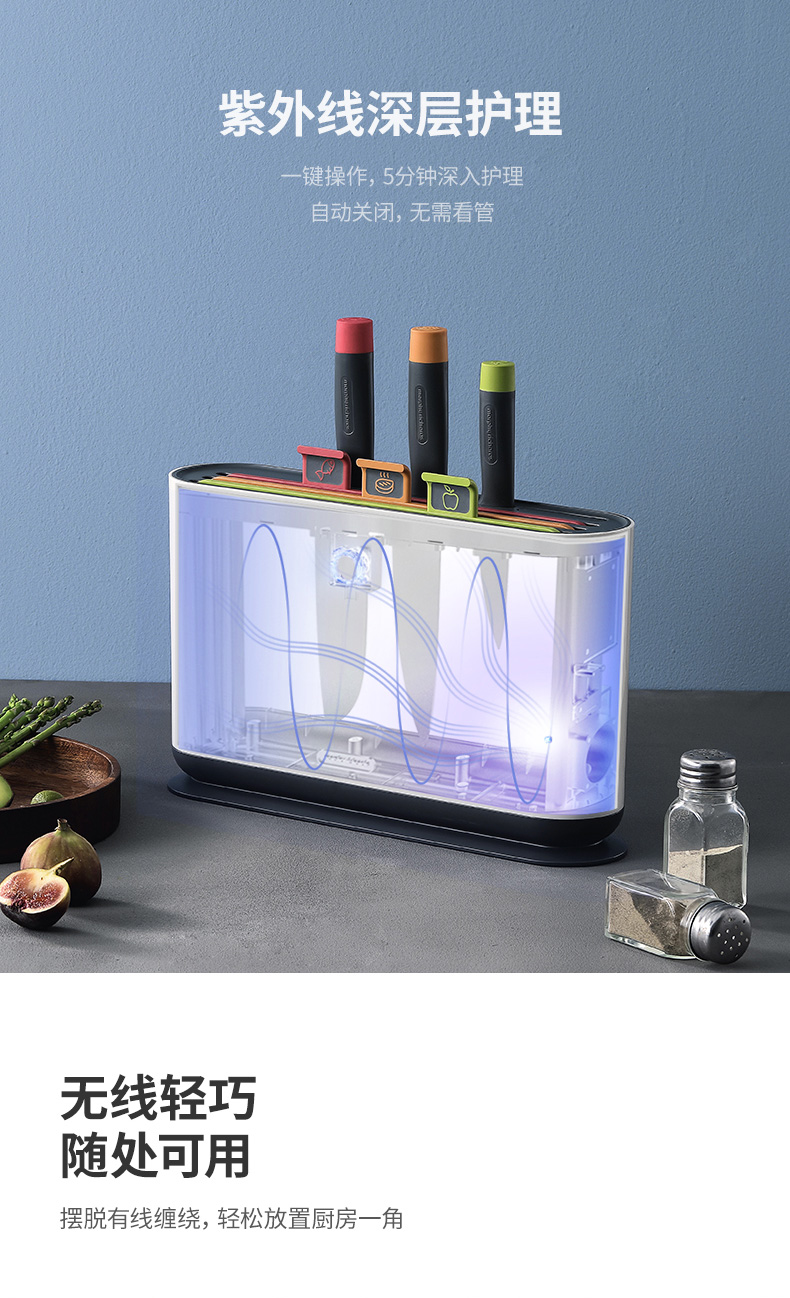 摩飞电器(Morphyrichards)分类刀具砧板消毒刀架家用小型智能紫外线分类厨具套装 MR1000
