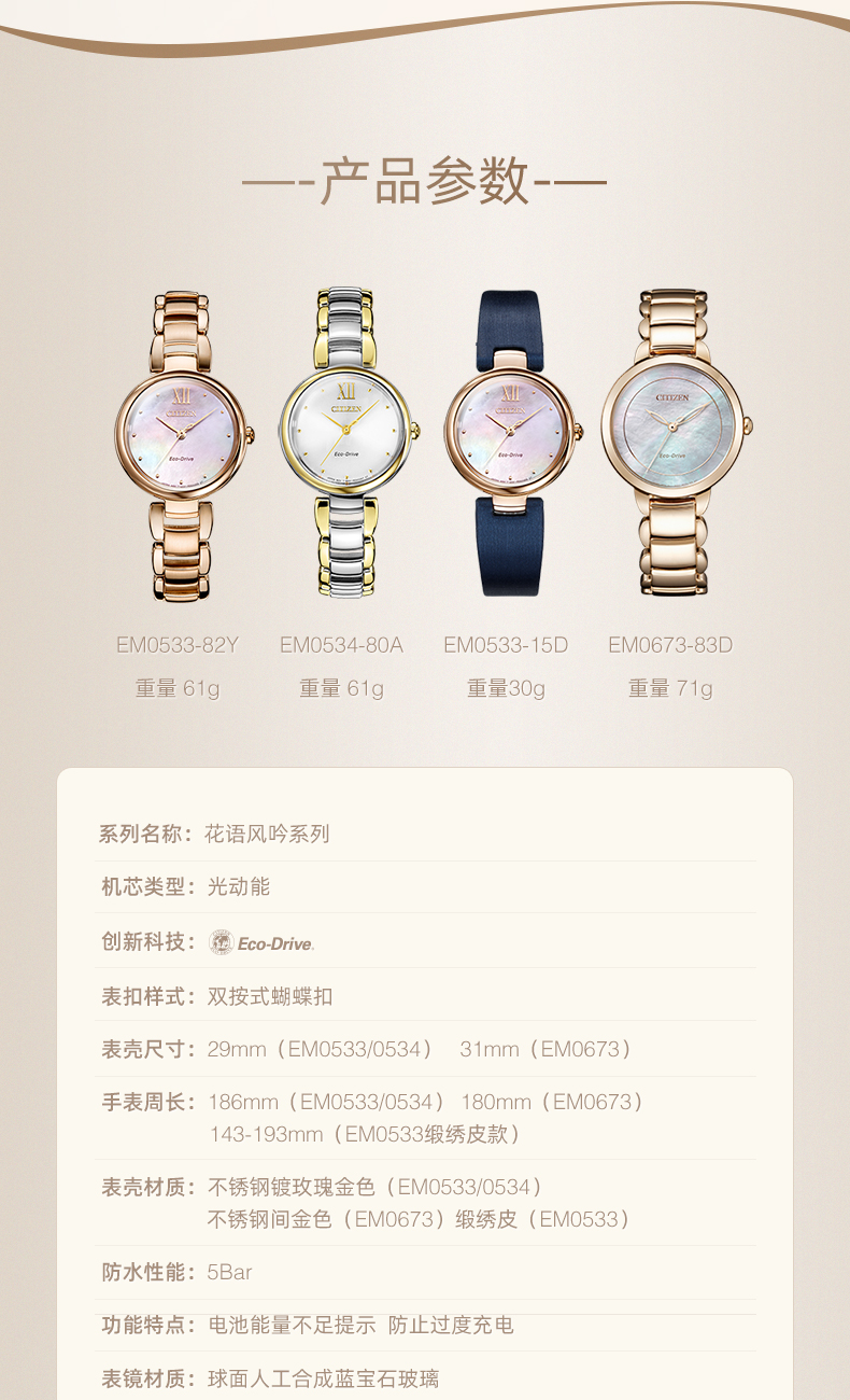 西铁城(CITIZEN)光动能女表钢带时尚款EM0534-80A