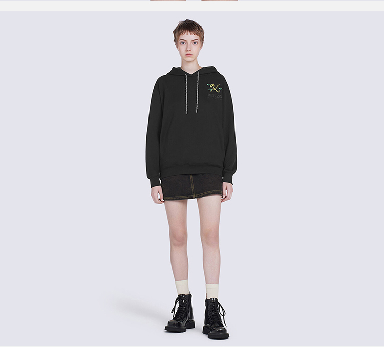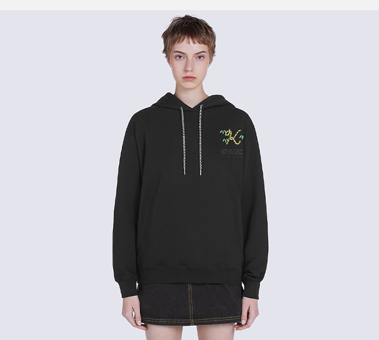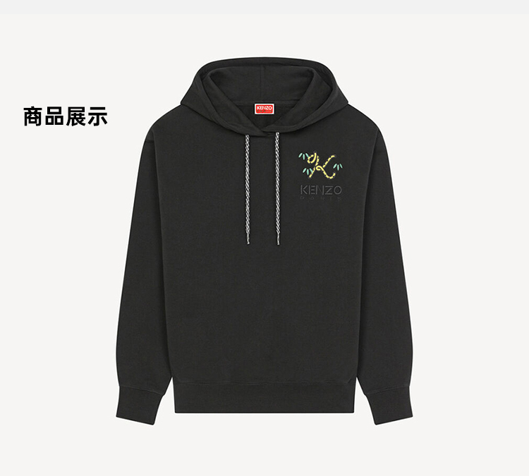 KENZO 高田贤三 女士棉质 TIGER TAIL K 徽标刺绣连帽长袖卫衣 黑色 FC62 SW014 4MF 99J