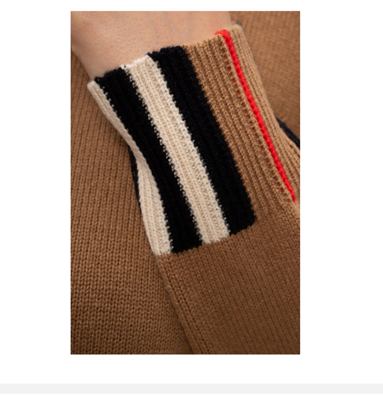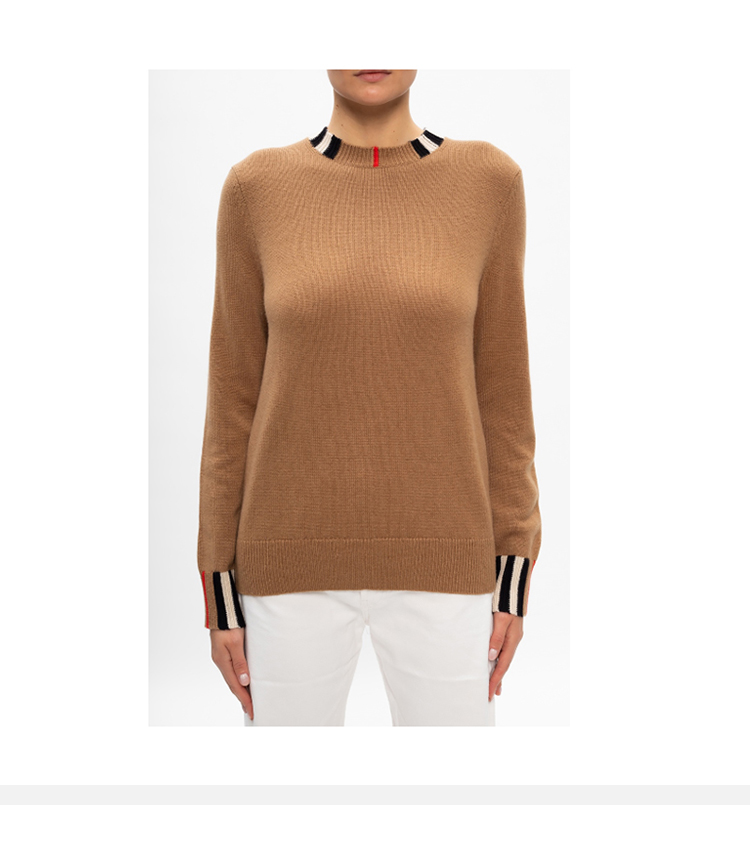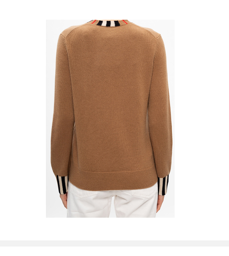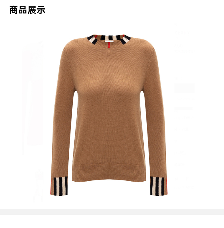 【一】BURBERRY 巴宝莉 女士条纹细节针织羊绒衫 卡其色 8020391 A7026