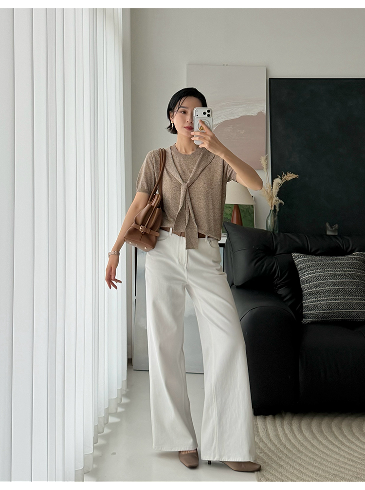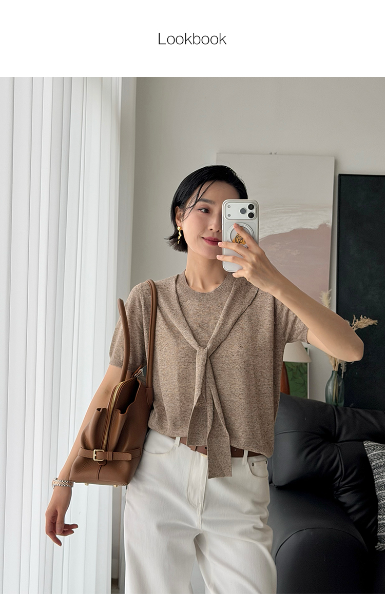 「工厂团购上新」 亚麻假两件披肩款圆领针织T恤上衣60605