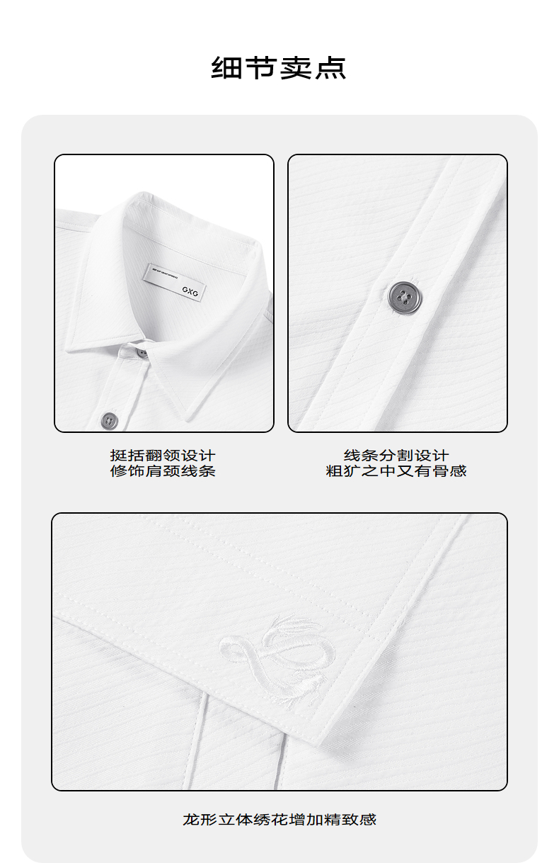 GXG男装 肌理感翻领衬衫多色可选休闲长袖外套春季热卖衬衫外套 G24X033012