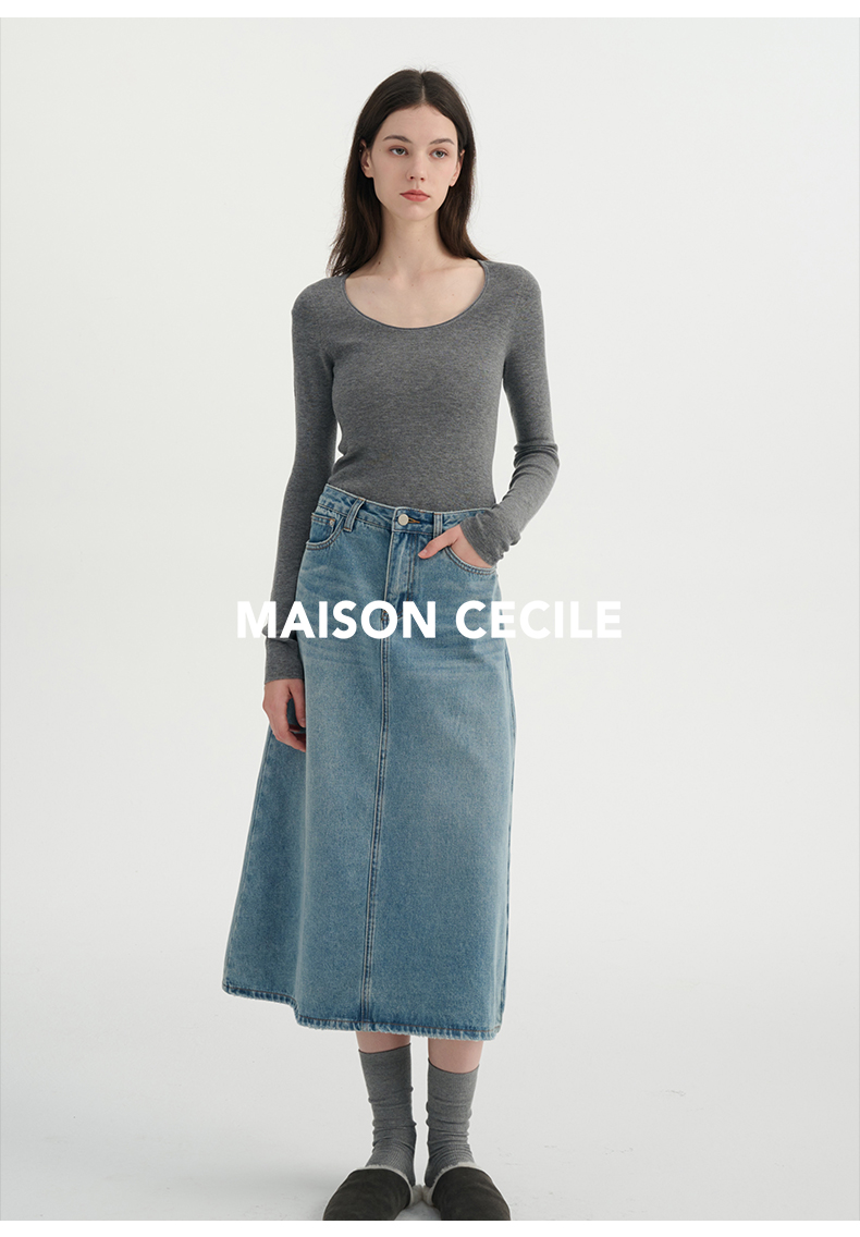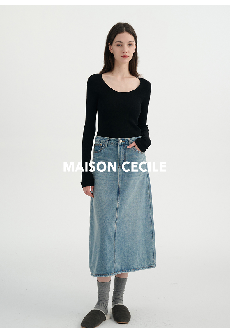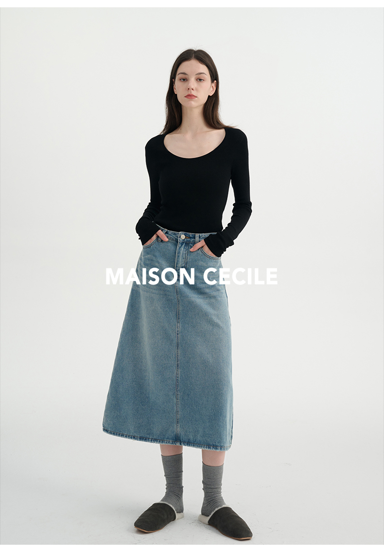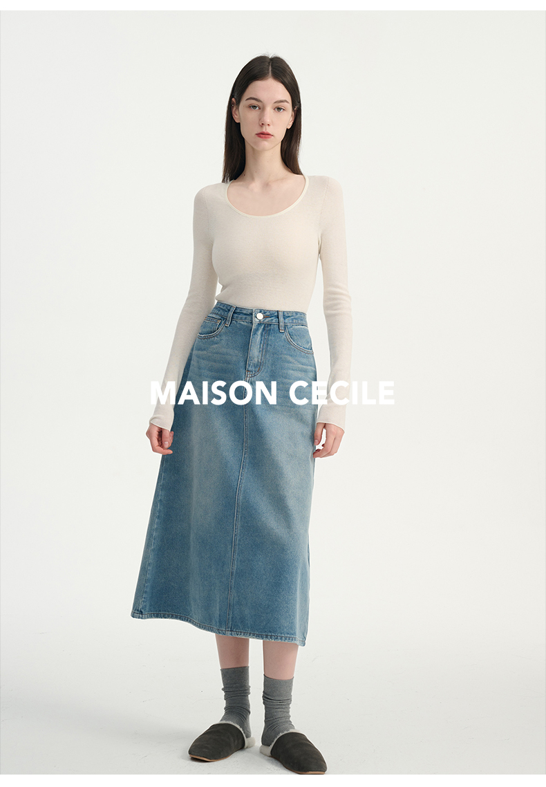 MAISON CECILE三色真丝羊毛椭圆领修身万能内搭打底衫