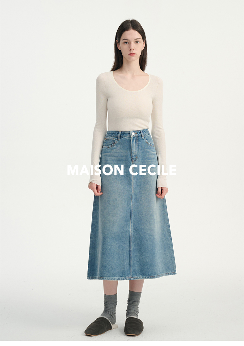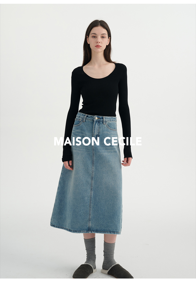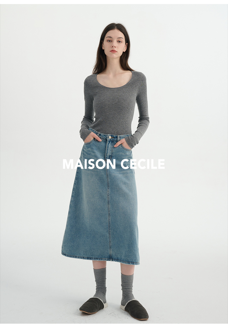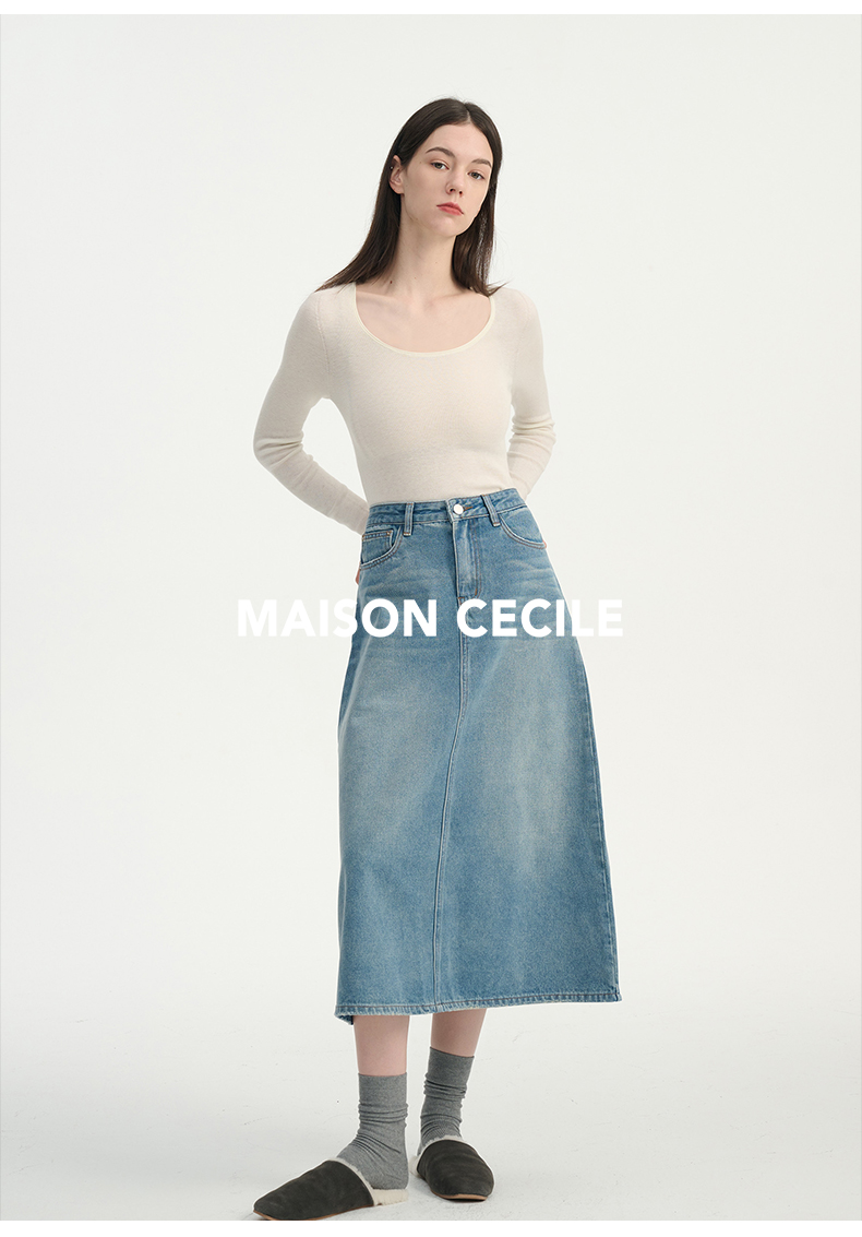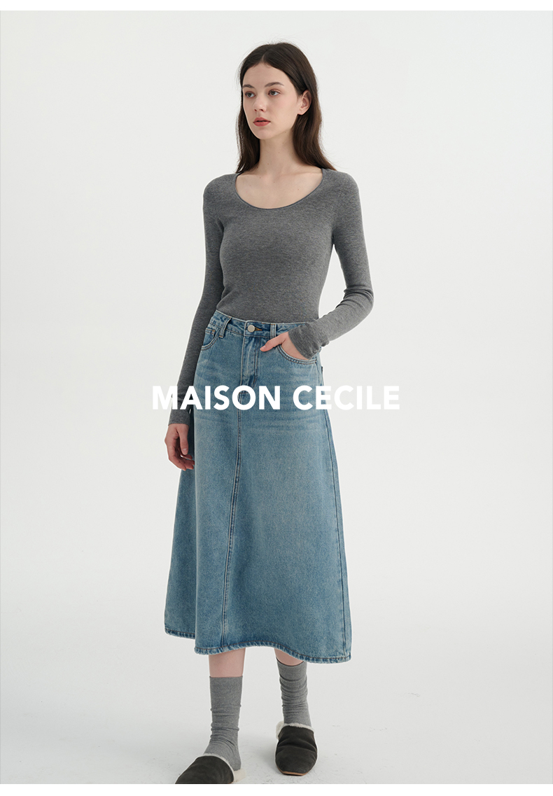 MAISON CECILE三色真丝羊毛椭圆领修身万能内搭打底衫