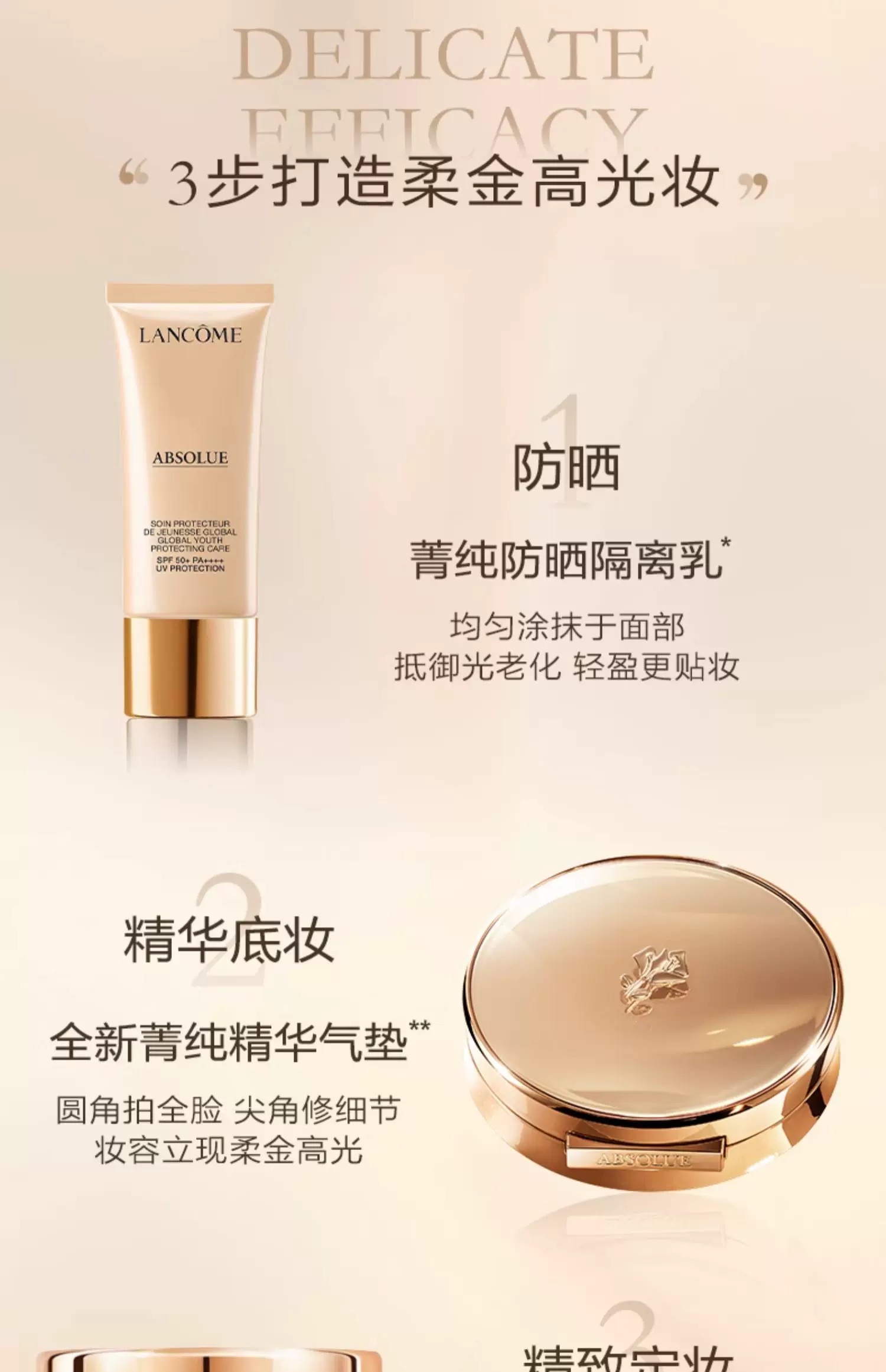 Lancome/兰蔻 兰蔻菁纯精华气垫粉底液新版圆盒 持妆柔光遮瑕干皮油皮底妆 滋养BB霜