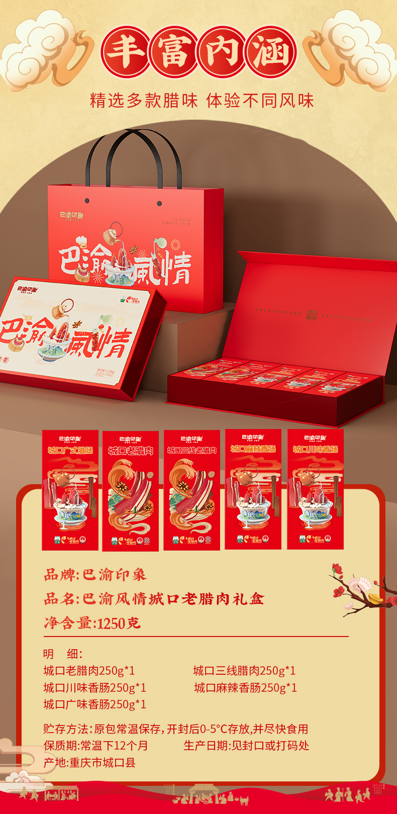 【城口老腊肉】巴渝印象巴渝风情礼盒 1.25kg 地标产品 非遗工艺 农家土猪